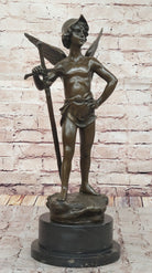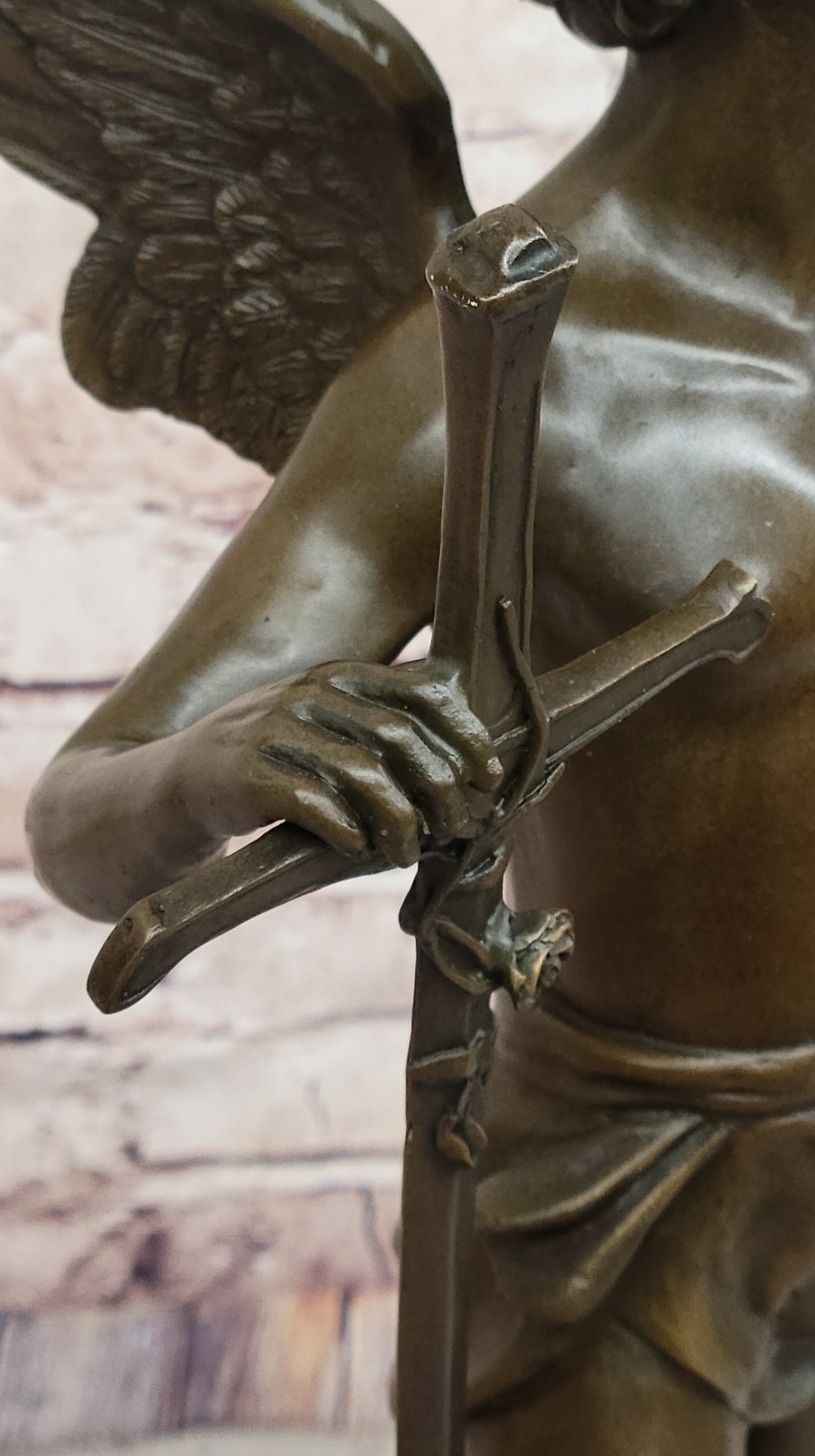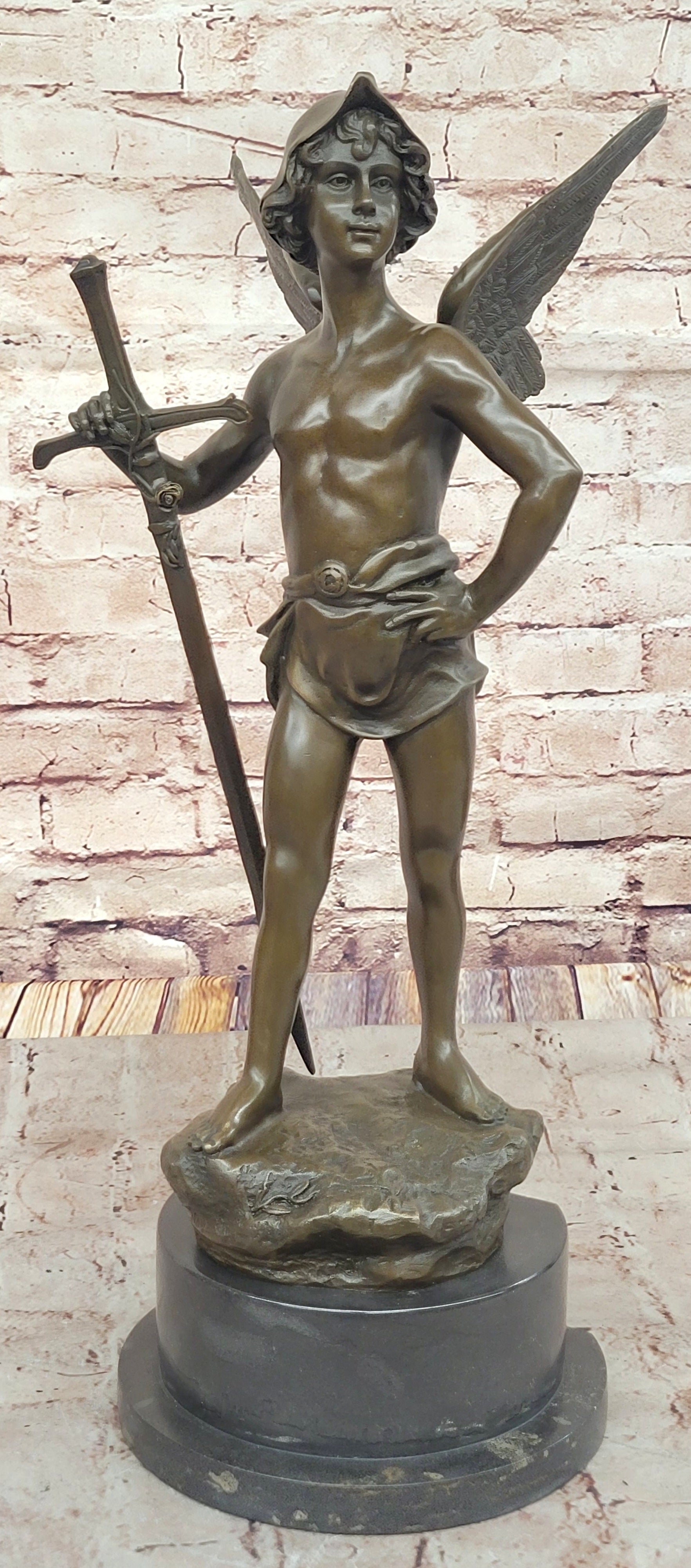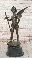 Young Saint Michael Archangel w/ Sword Bronze Statue Sculpture Figure 21" x 11"