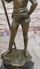 Crafted using the age-old lost-wax method, the sculpture showcases exceptional artistry and attention to detail. Its rich patina finish enhances its timeless appeal, while the depiction of Michael serves as a beacon of light and protection against darkness. This piece is not only an artistic treasure but also a spiritual emblem, offering a sense of peace and divine guardianship to any space it graces.Bronze Dimensions with Marble Base: Height 21" X Width 11"