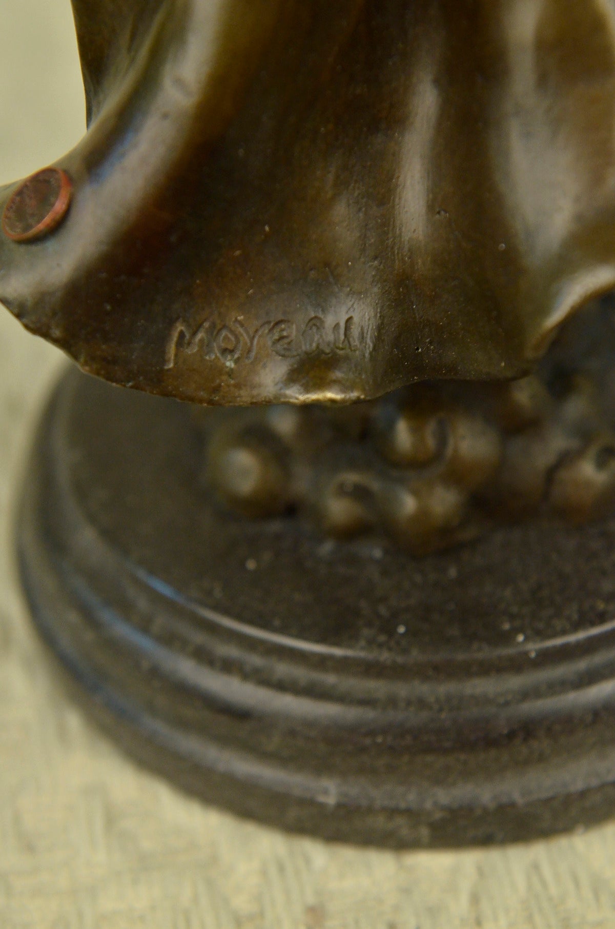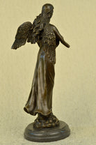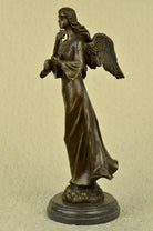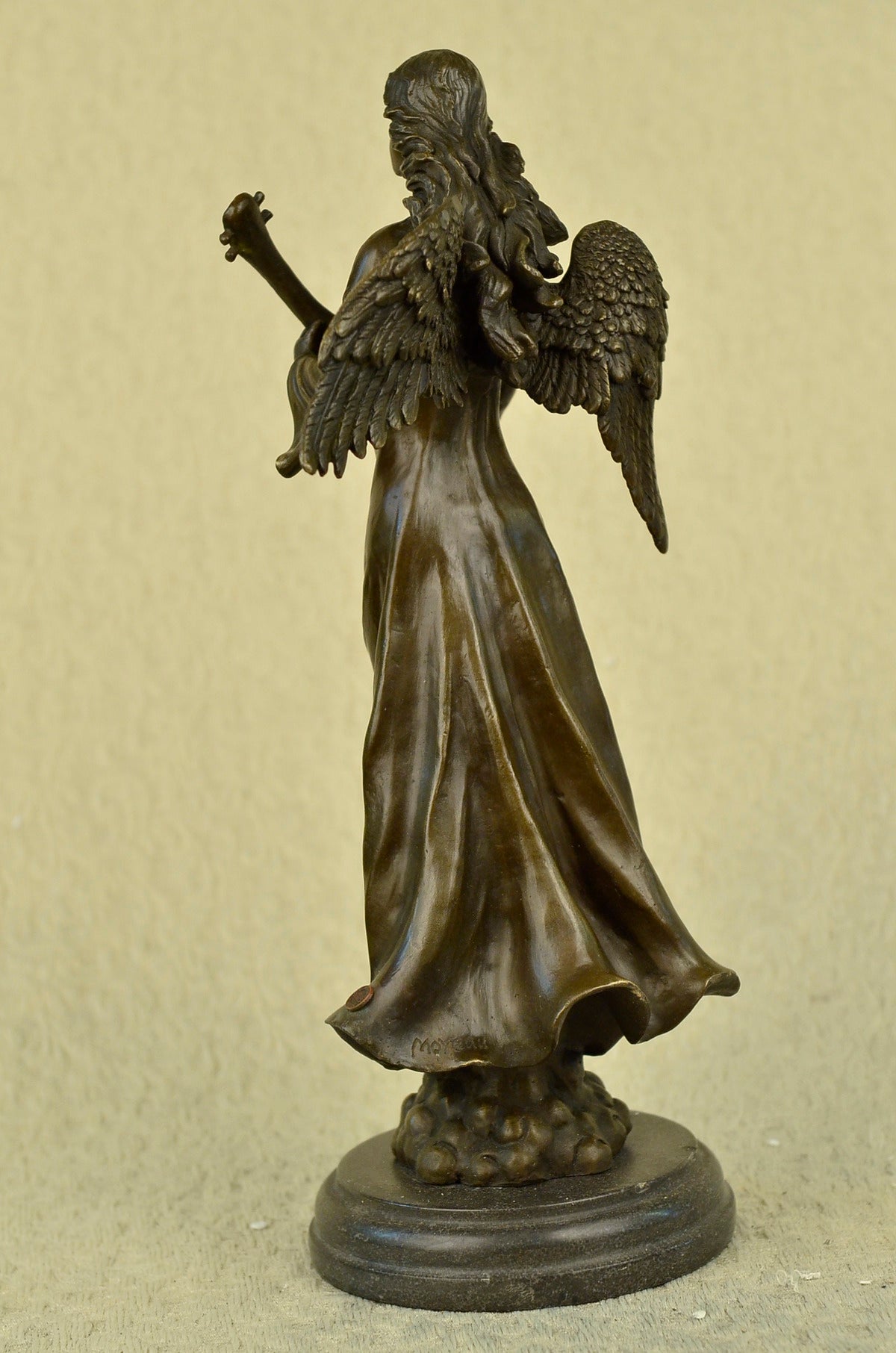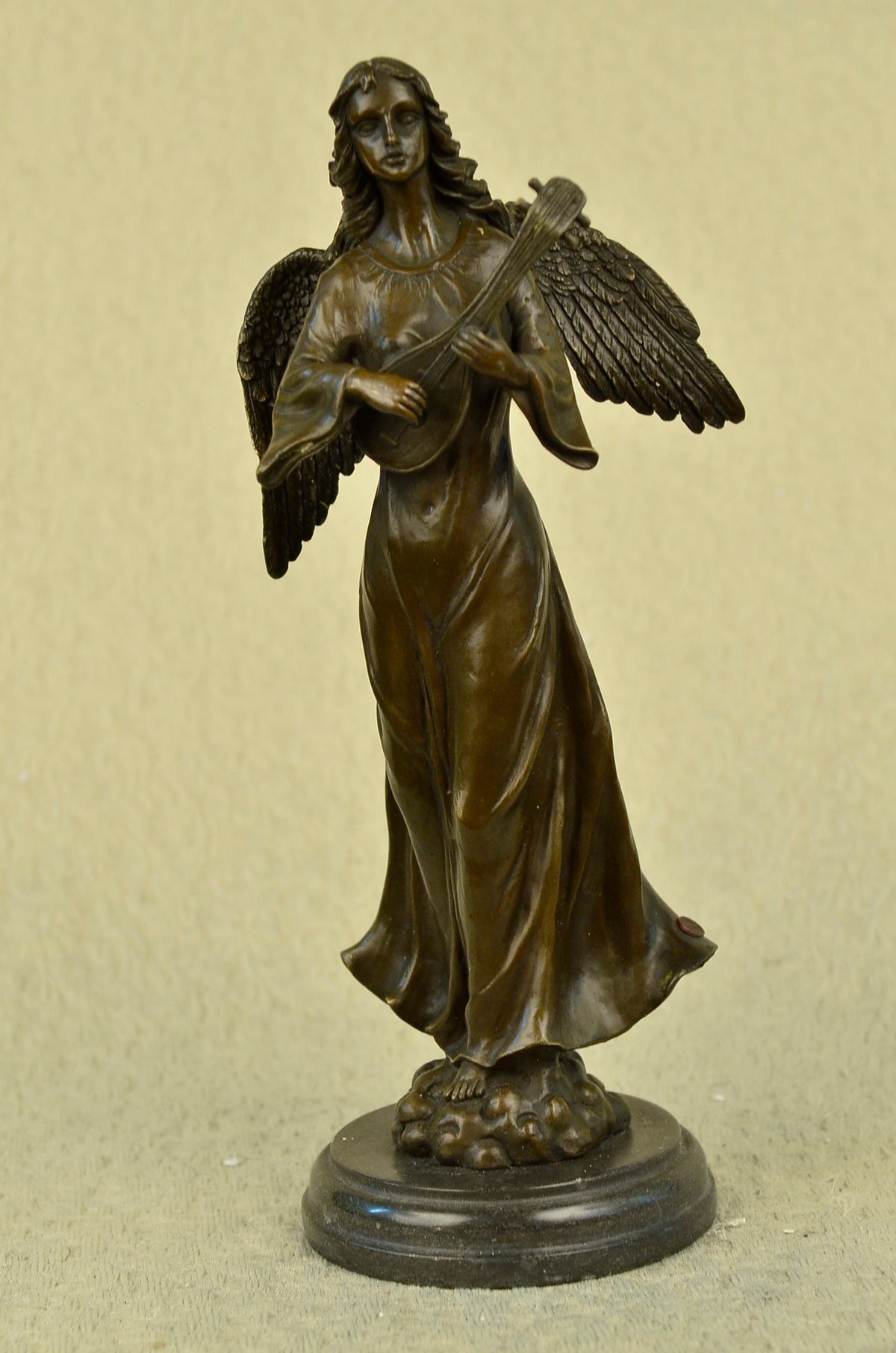 Bronze Sculpture Divine Angel Playing Lute Music Marble Base Figurine by Moreau
