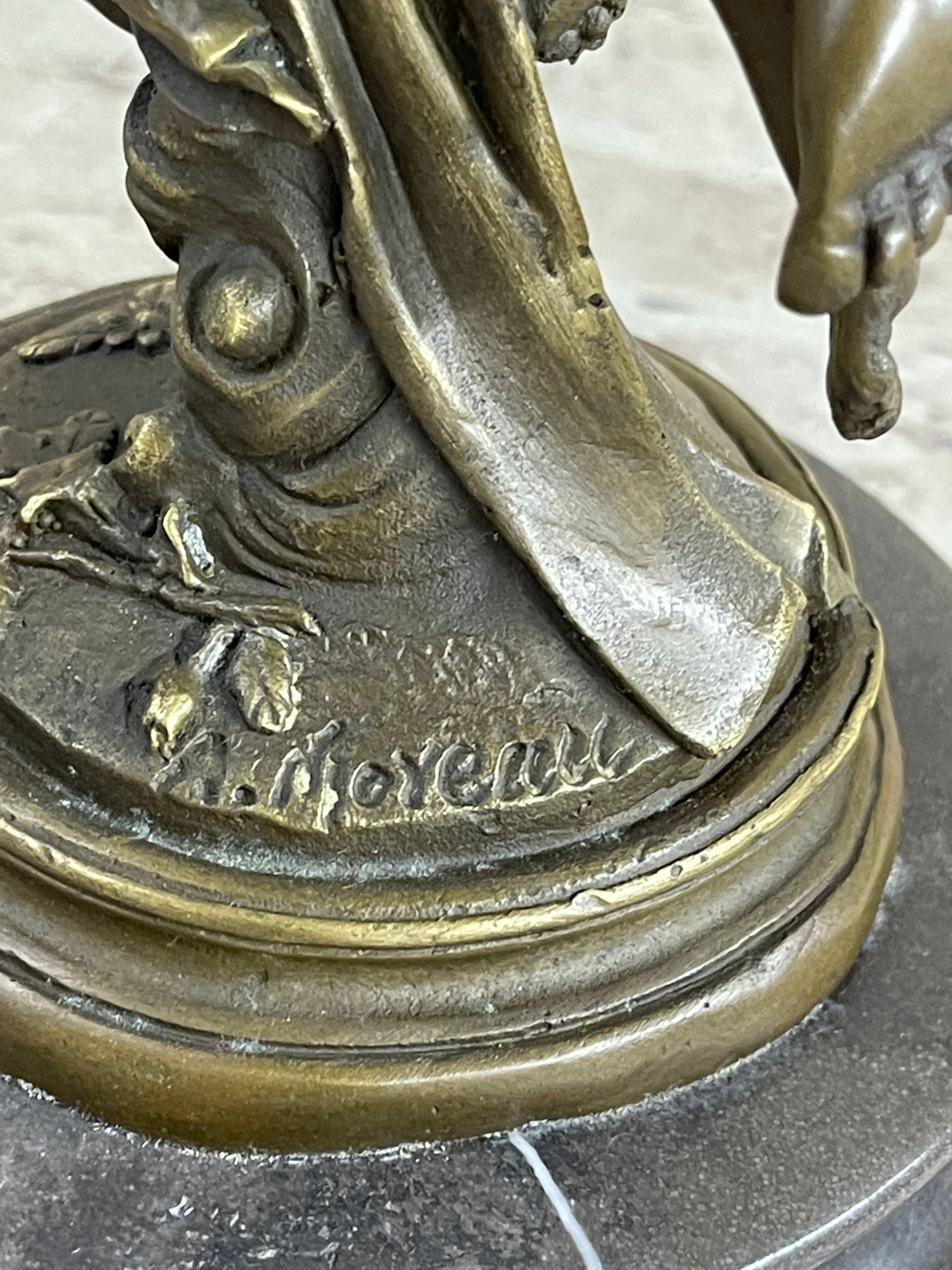 Signed A. Moreau, this sculpture is a true work of art that celebrates the timeless beauty of the human form and the wonder of nature. Display it in your home or office to inspire a sense of awe and admiration for the artistry and creativity that went into its creation.Bronze Dimensions with Marble Base: Height 15" X Width 6"