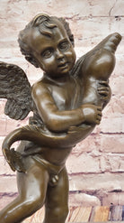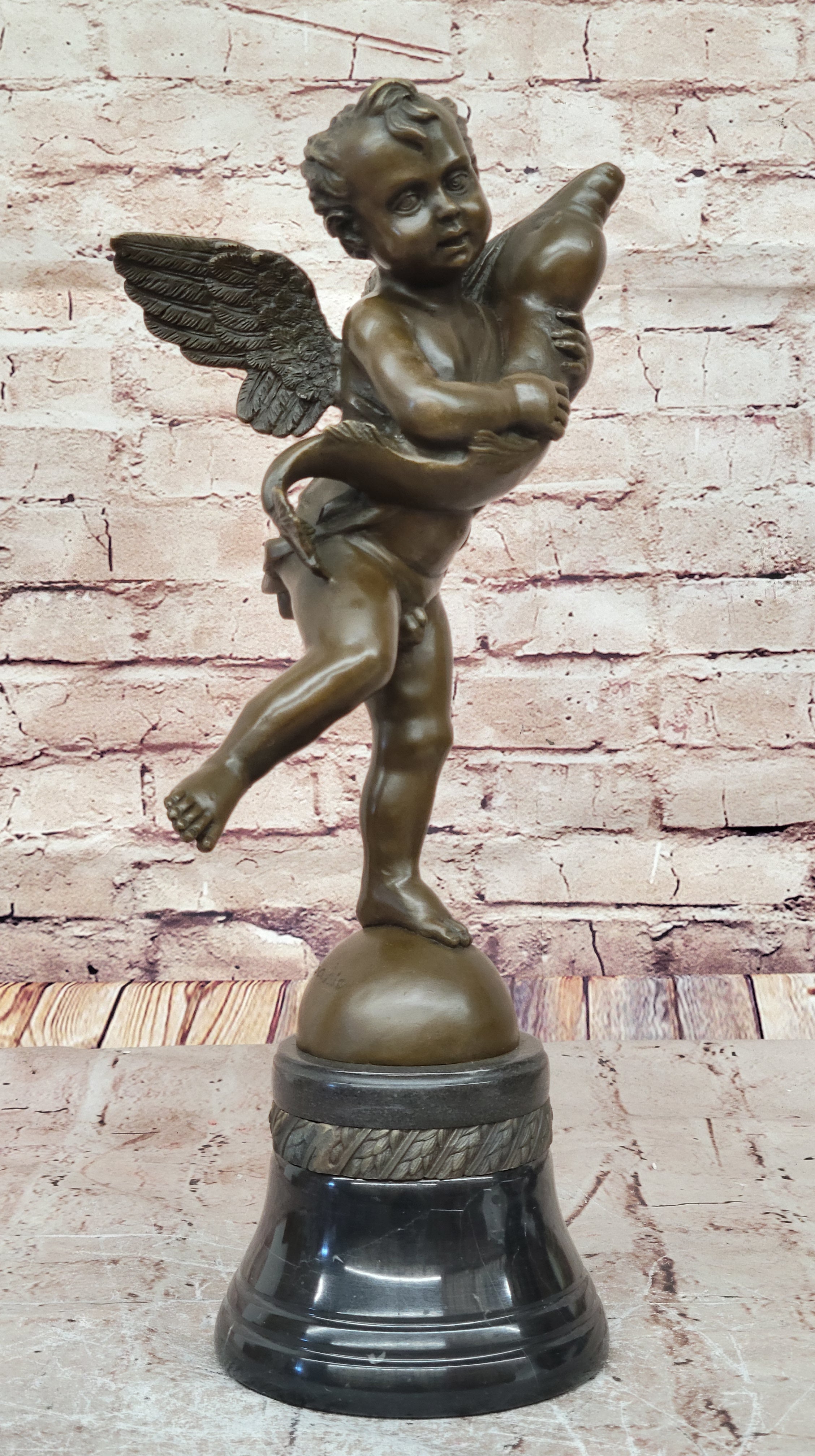 Cherub Angel Putto with a Dolphin Andrea del Verrocchio Bronze Sculpture Figure