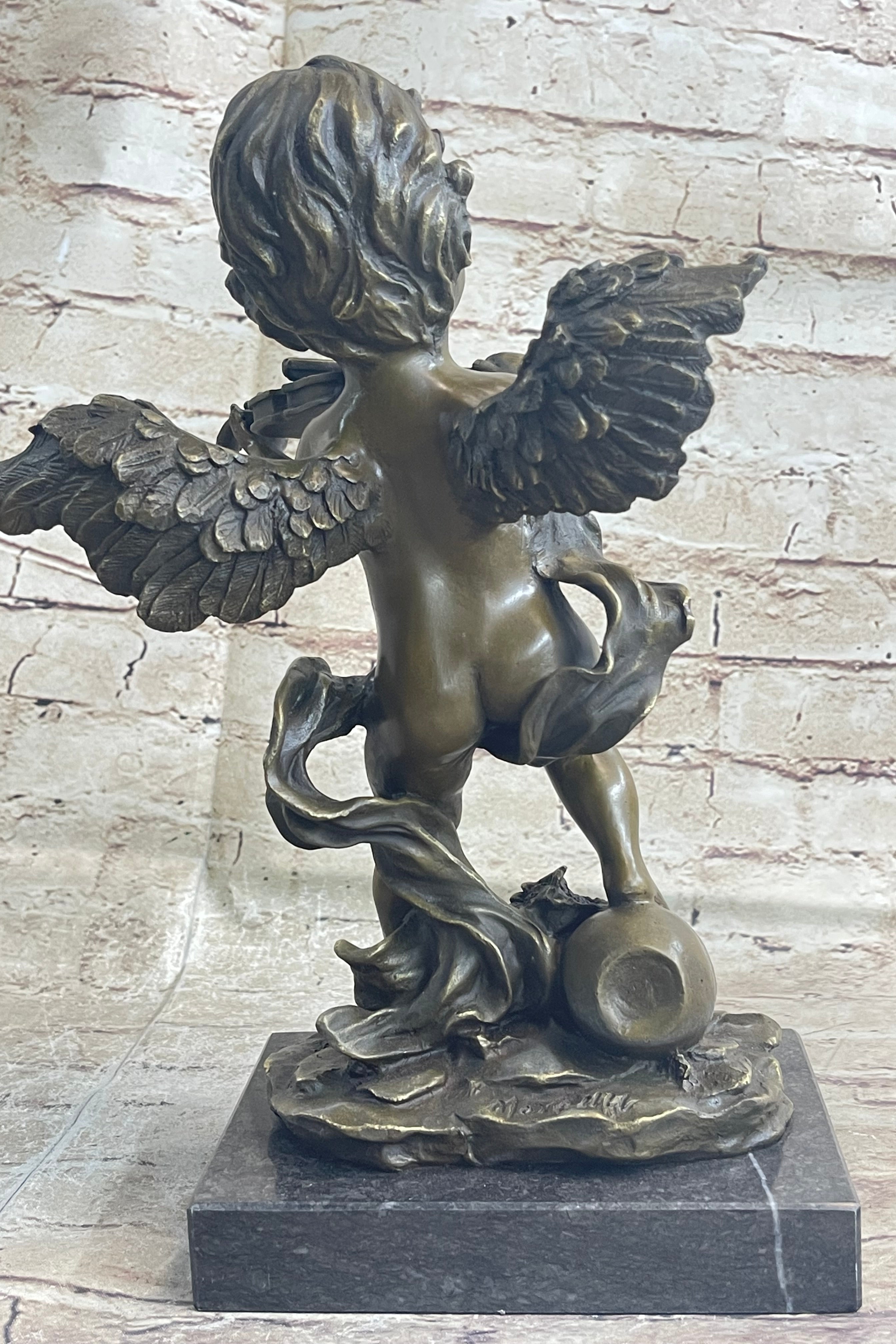 Cherub Child Angel Playing Violin Bronze Metal Statue Sculpture Memorial Decor Marble Base