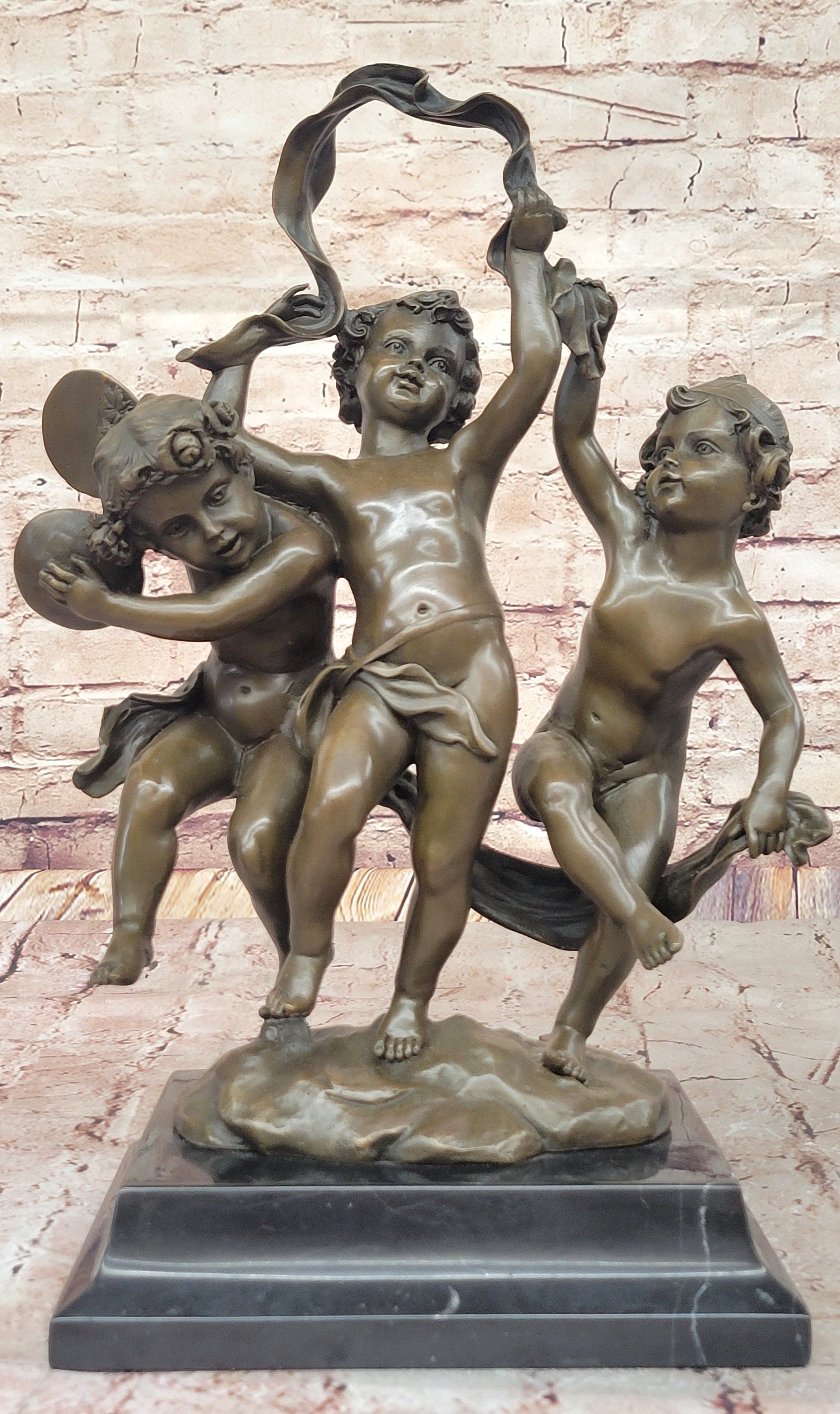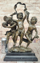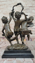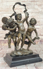 Dancing Cherubs Bronze Sculpture – Delightful Classical Putti on Marble Base