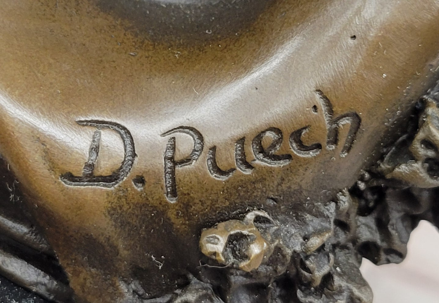 "La Sirene" (The Mermaid) by Denis Puech is a masterfully handcrafted bronze sculpture that embodies classic museum-quality artwork. Denis Puech, known for his artistic prowess, has created a captivating representation of a mermaid using the intricate lost wax method. This technique allows for meticulous detailing and precision in capturing the essence of the mythical creature.