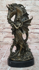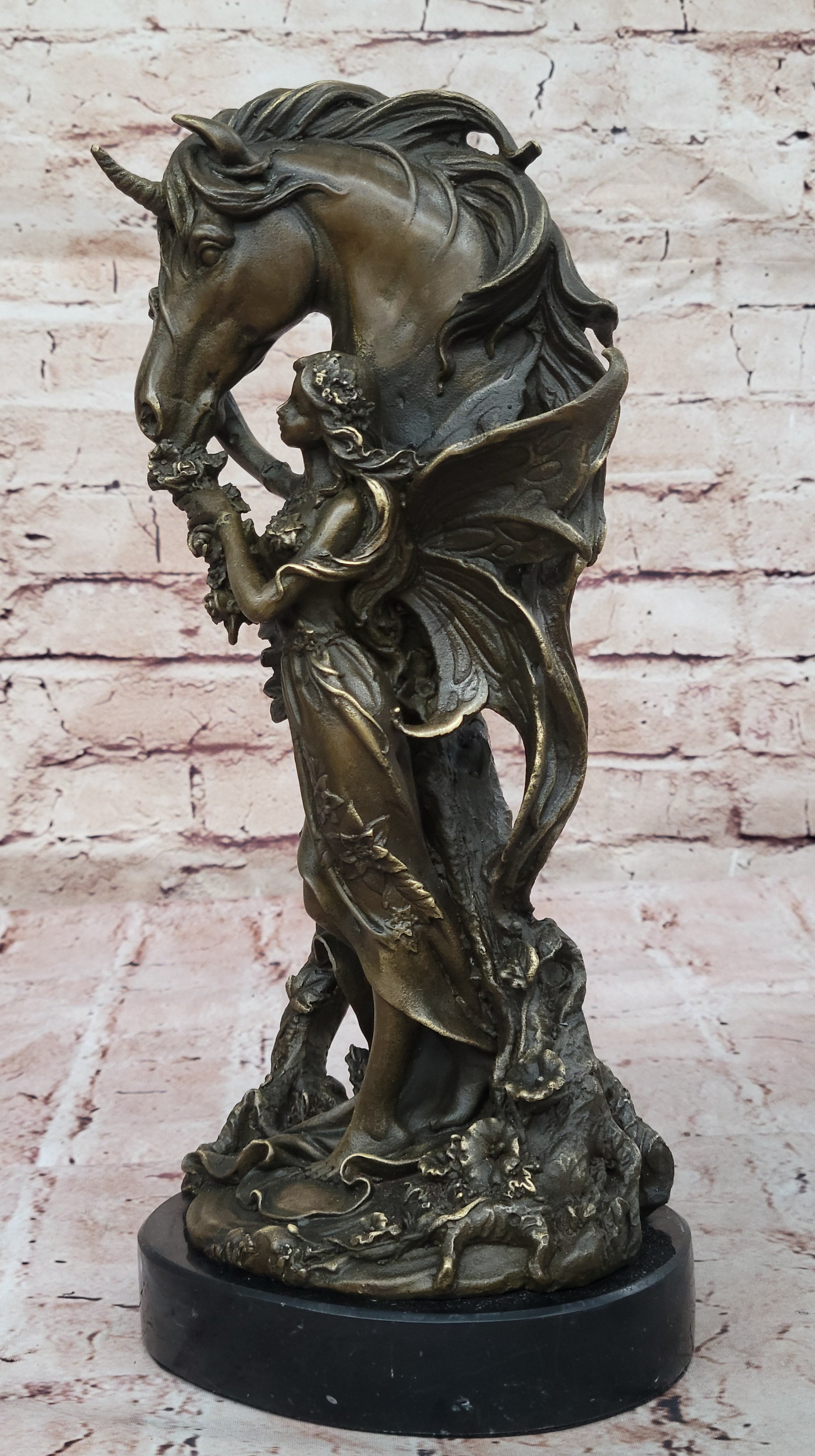 Fantasy Winged Fairy with Mythical Unicorn Horse Sculpture Signed Original Patoue
