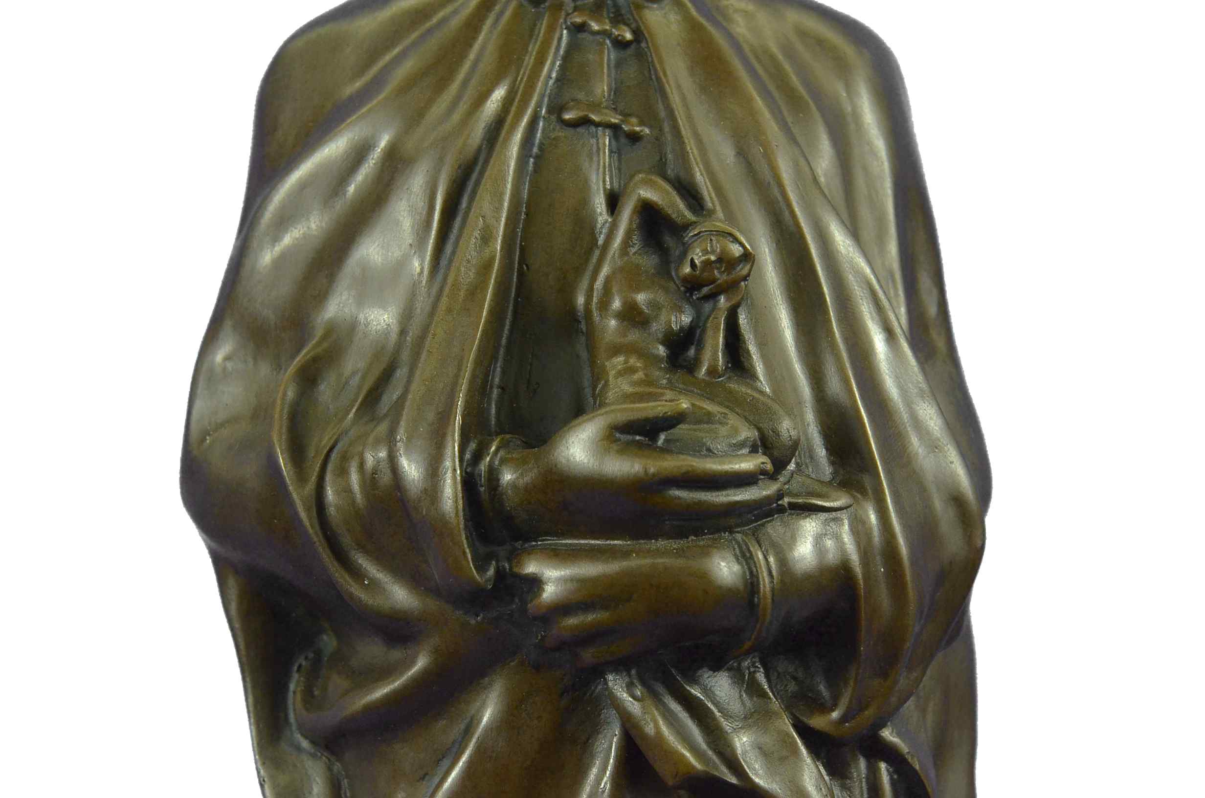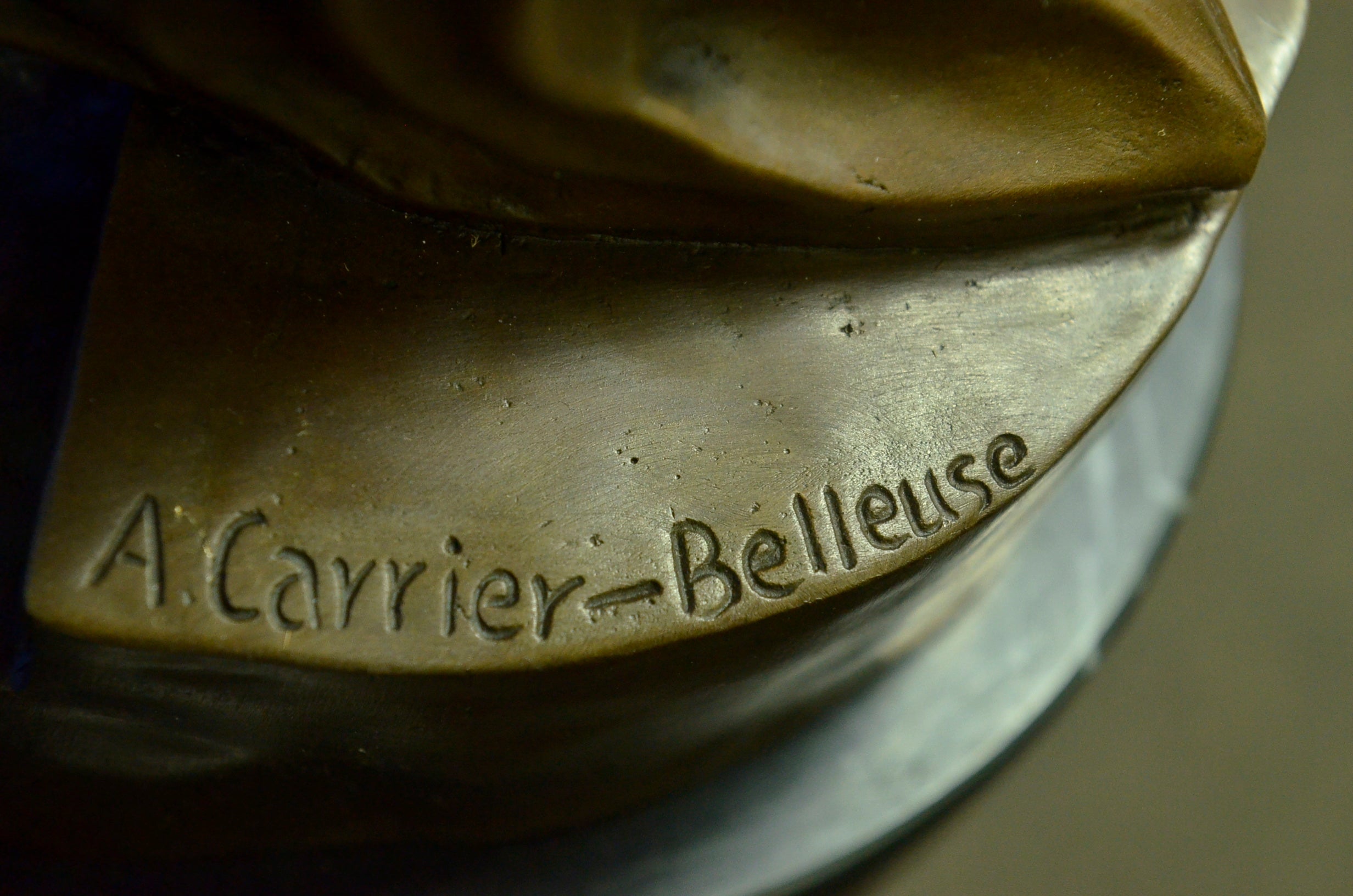 Michelangelo di Lodovico Buonarroti Simoni (6 March 1475 – 18 February 1564), commonly known as Michelangelo, was an Italian Renaissance painter, sculptor, architect, poet, and engineer. Despite making few forays beyond the arts, his versatility in the disciplines he took up was of such a high order that he is often considered a contender for the title of the archetypal Renaissance man, along with his rival and fellow Italian Leonardo da Vinci. Michelangelo's output in every field during his long life was prodigious; when the sheer volume of correspondence, sketches, and reminiscences that survive is also taken into account, he is the best-documented artist of the 16th century. Two of his best-known works, the Pietà and David, were sculpted before he turned thirty. Despite his low opinion of painting, Michelangelo also created two of the most influential works in fresco in the history of Western art: the scenes from Genesis on the ceiling and The Last Judgment on the altar wall of the Sistine Chapel in Rome. As an architect, Michelangelo pioneered the Mannerist style at the Laurentian Library. At 74 he succeeded Antonio da Sangallo the Younger as the architect of Saint Peter's Basilica. Michelangelo transformed the plan, the western end being finished to Michelangelo's design, the dome being completed after his death with some modification. In a demonstration of Michelangelo's unique standing, he was the first Western artist whose biography was published while he was alive. Two biographies were published of him during his lifetime; one of them, by Giorgio Vasari, proposed that he was the pinnacle of all artistic achievement since the beginning of the Renaissance, a viewpoint that continued to have currency in art history for centuries. In his lifetime he was also often called Il Divino ("the divine one"). One of the qualities most admired by his contemporaries was his terribilità, a sense of awe-inspiring grandeur, and it was the attempts of subsequent artists to imitate Michelangelo's impassioned and highly personal style that resulted in Mannerism, the next major movement in Western art after the High Renaissance. The sculpture was molded by using the lost-wax casting method and finished with brown patina tarnish allowing intricate work to come through the precious metal. This is an exquisite three-dimensional work of art for anyone who is Carrier Belleuse enthusiast.Bronze Dimensions with Marble Base:Height 23" x Width 7"