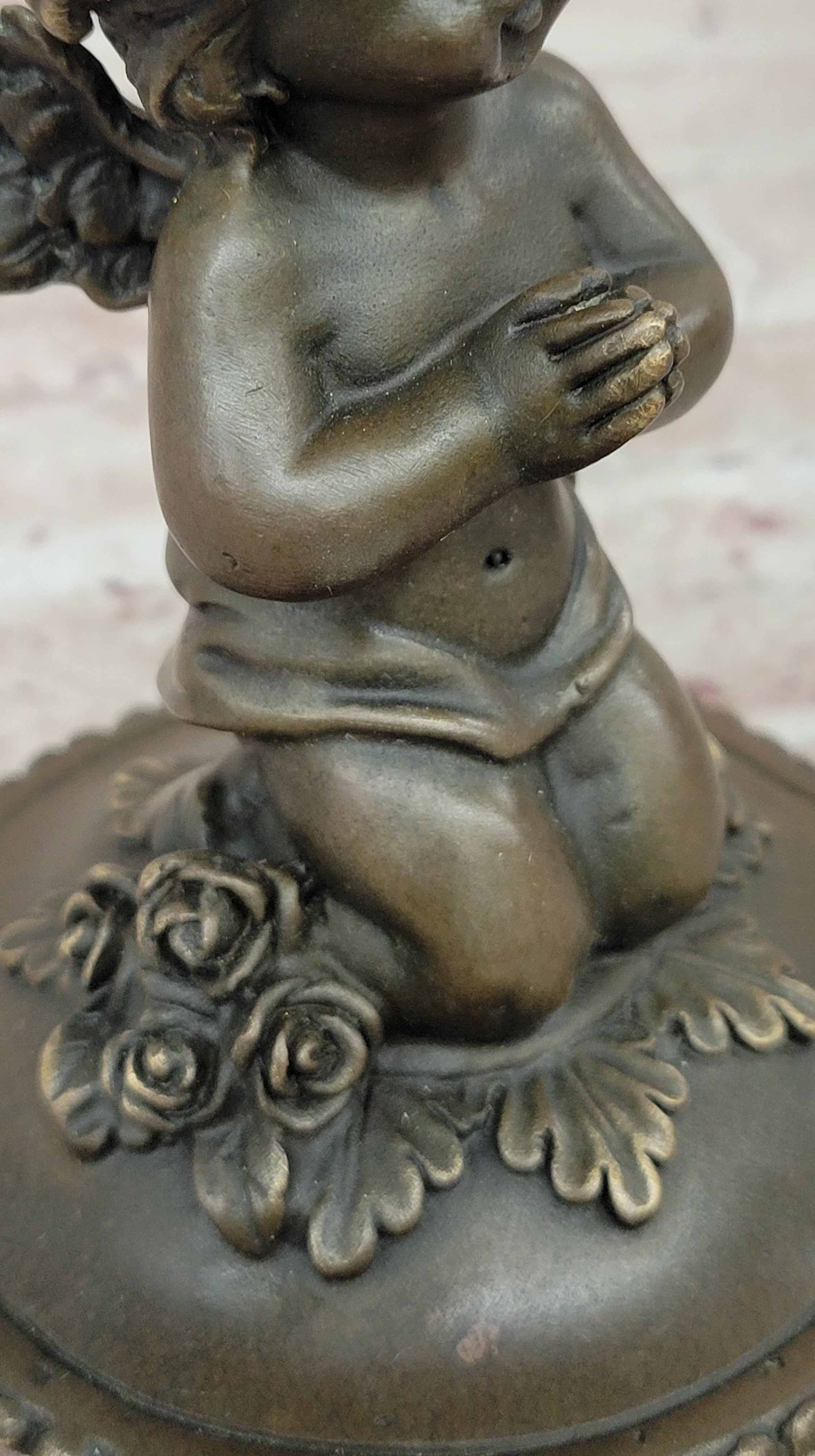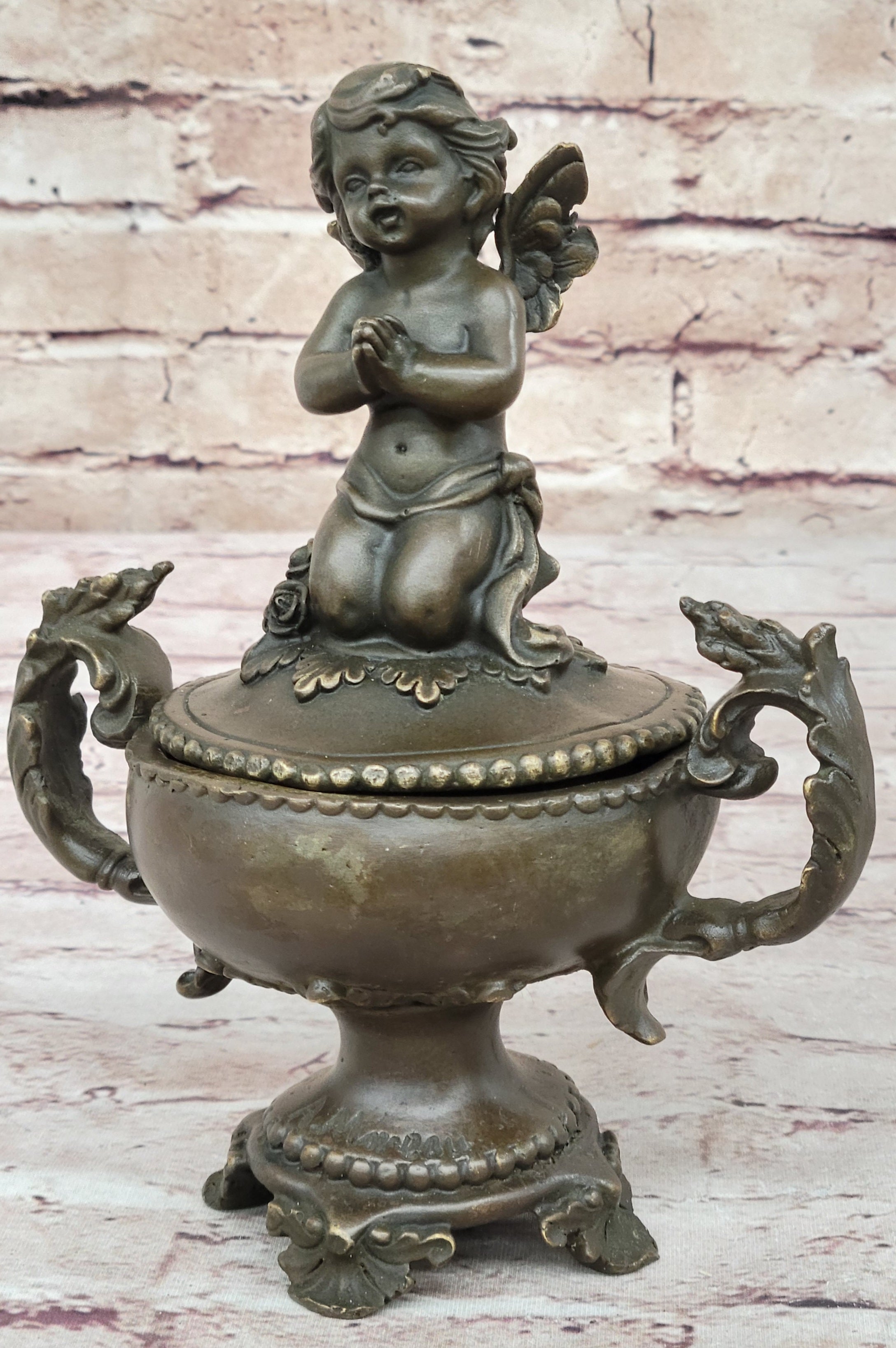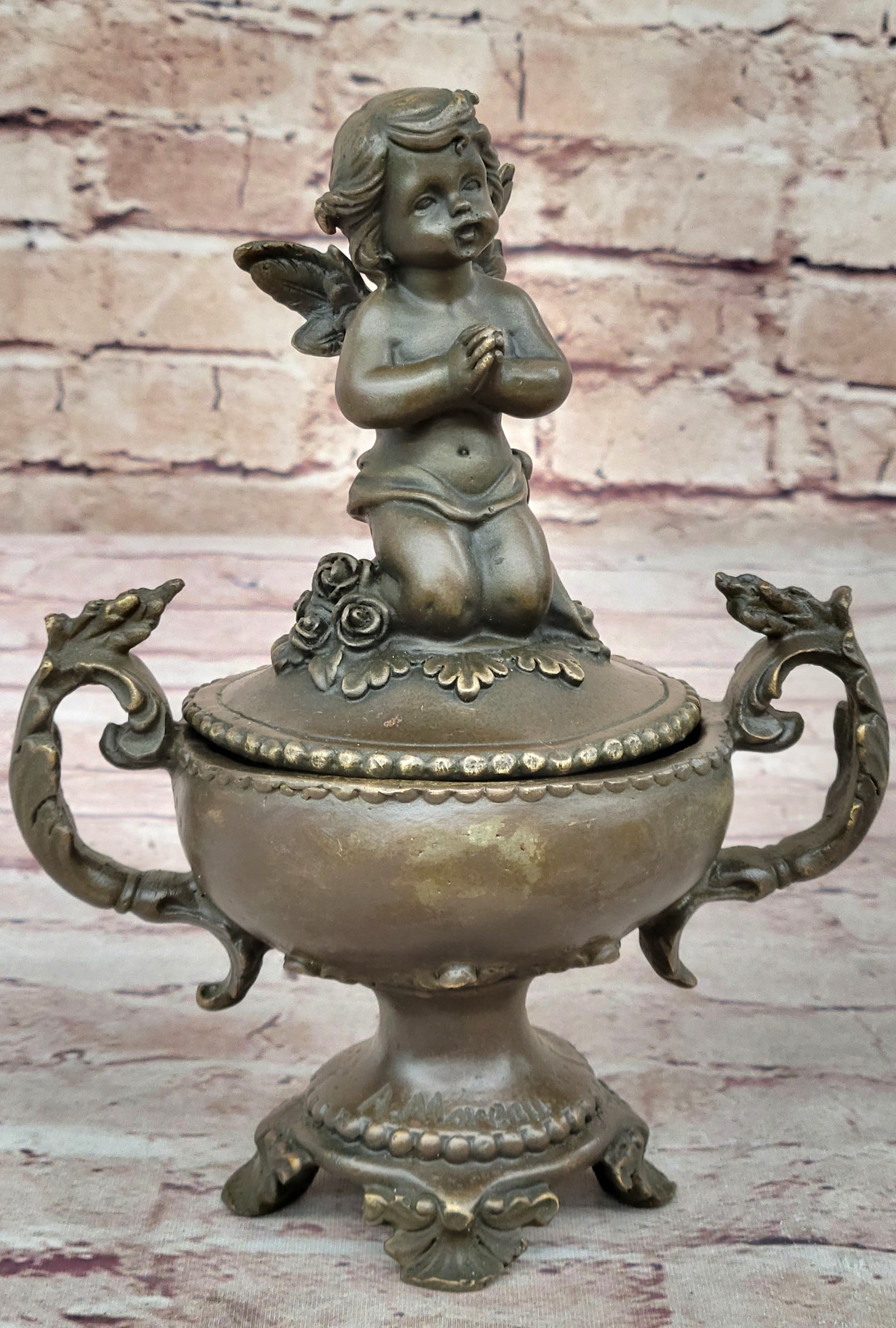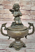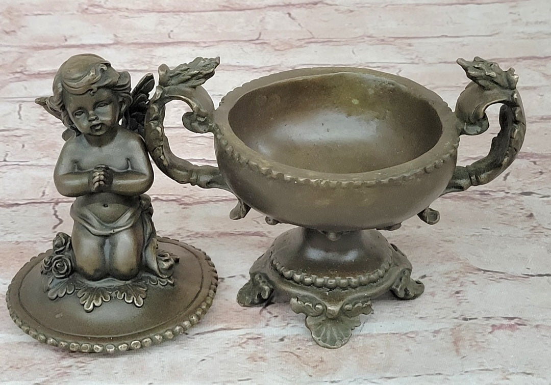 Handcrafted Baby Angel Praying Trinket Jewelry Box Bronze Sculpture Figurine