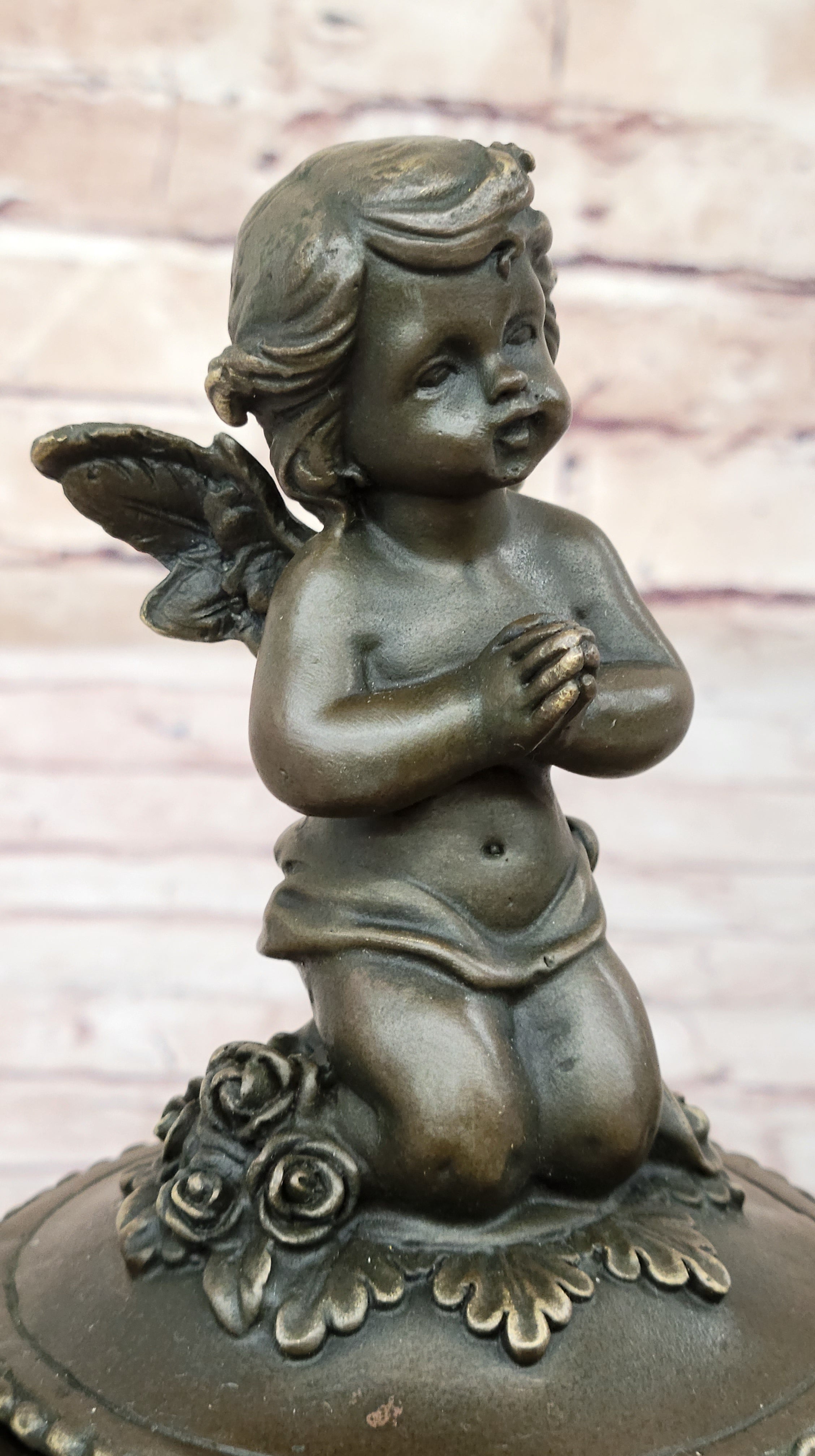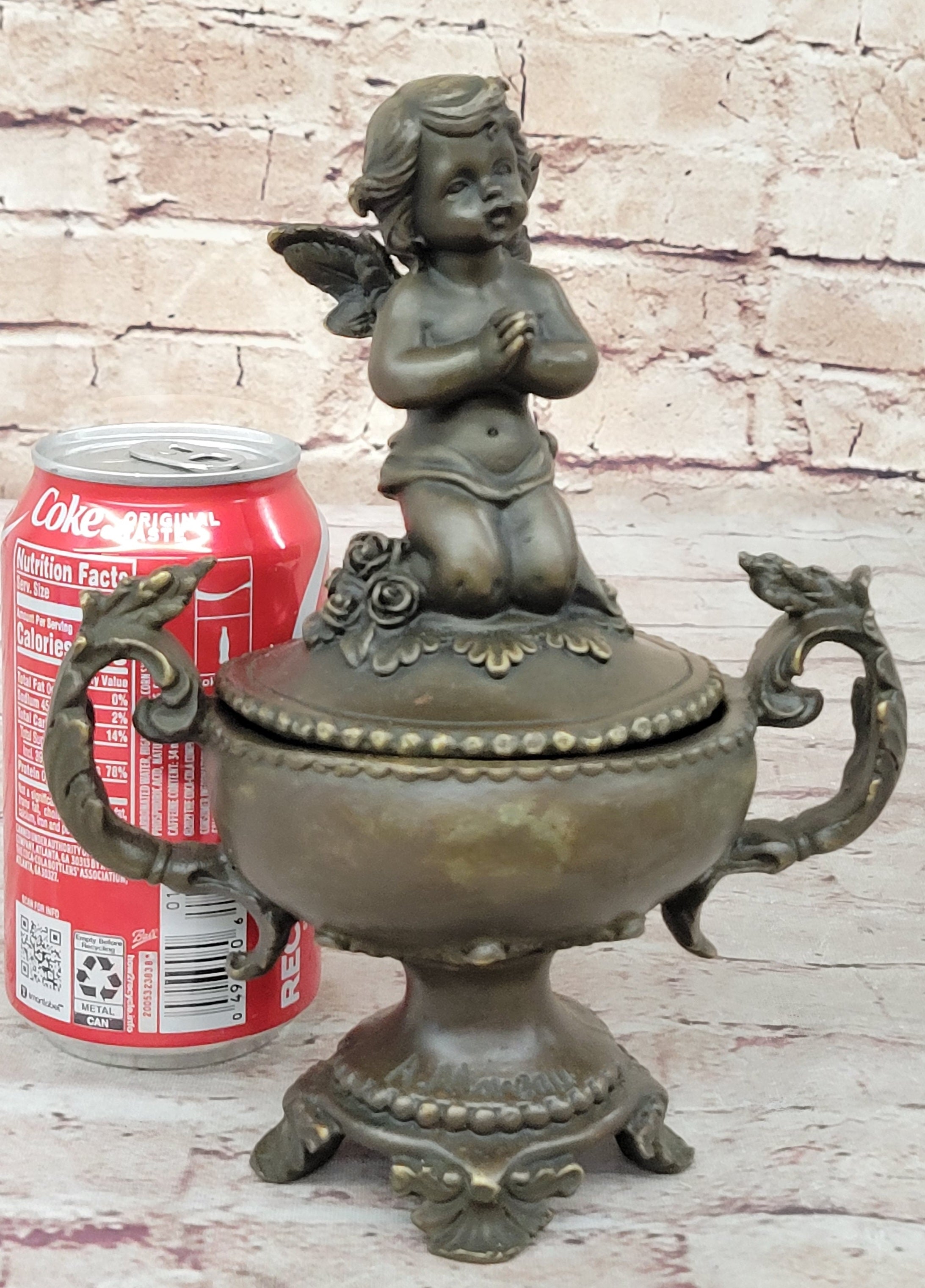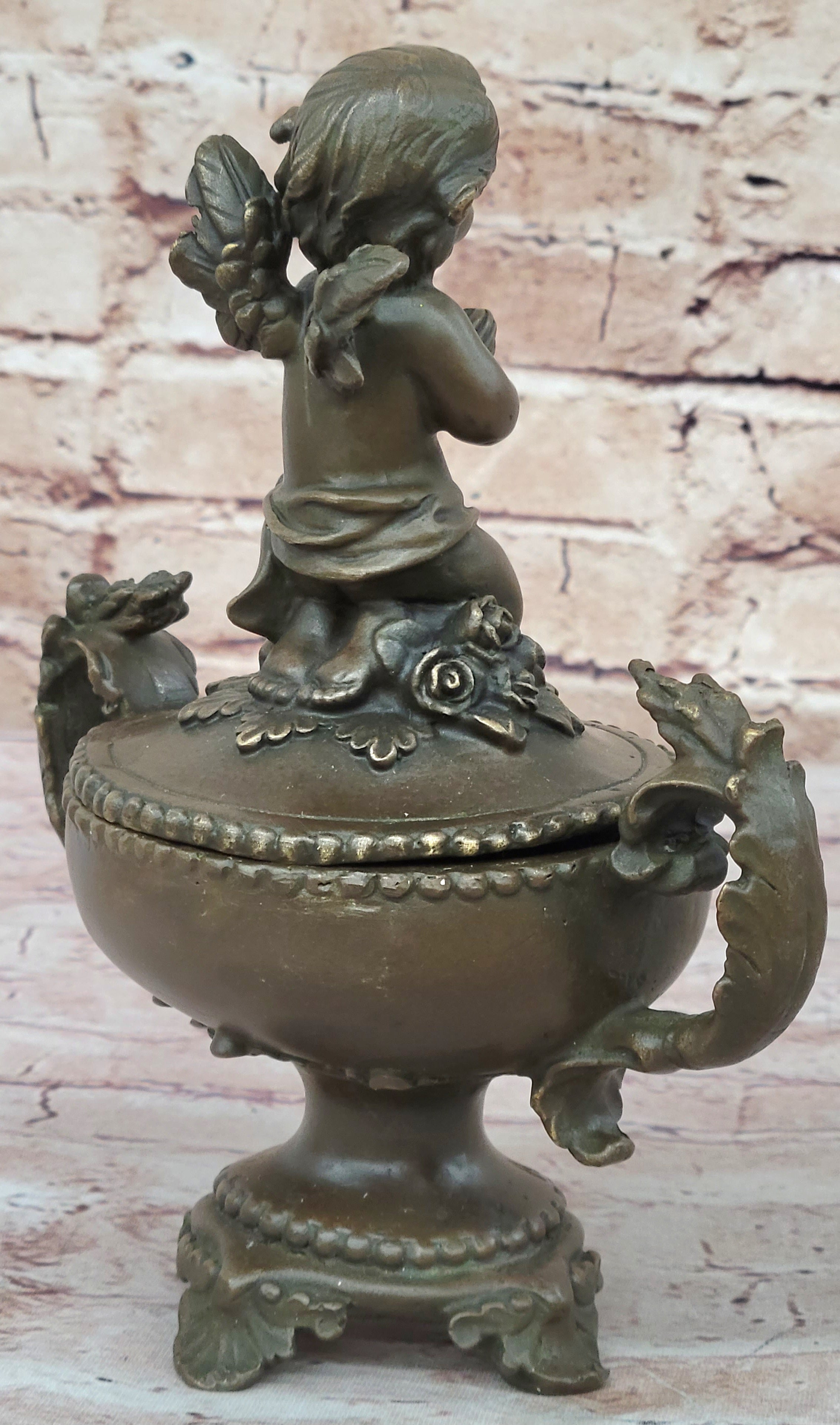 Handcrafted Baby Angel Praying Trinket Jewelry Box Bronze Sculpture Figurine