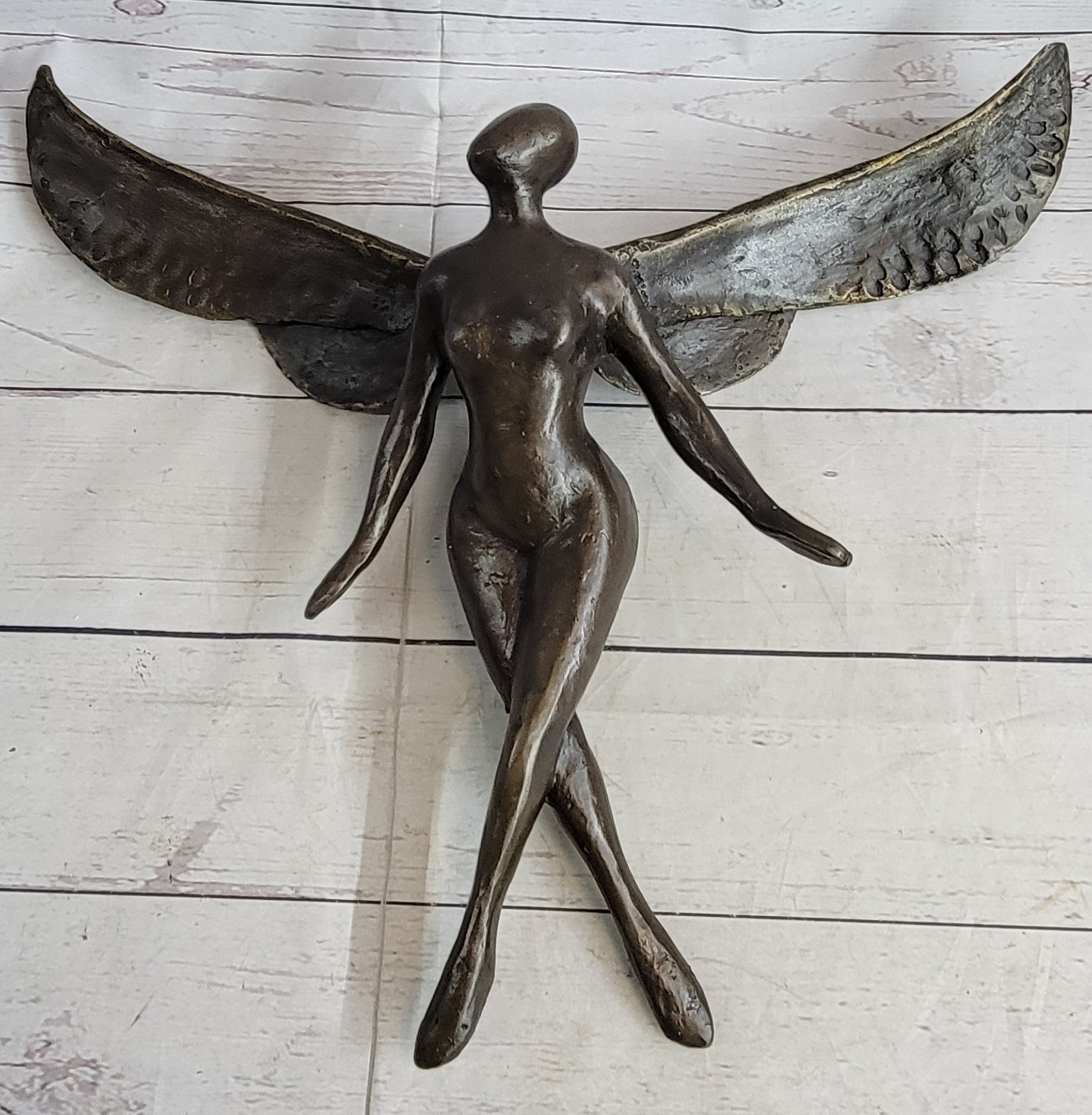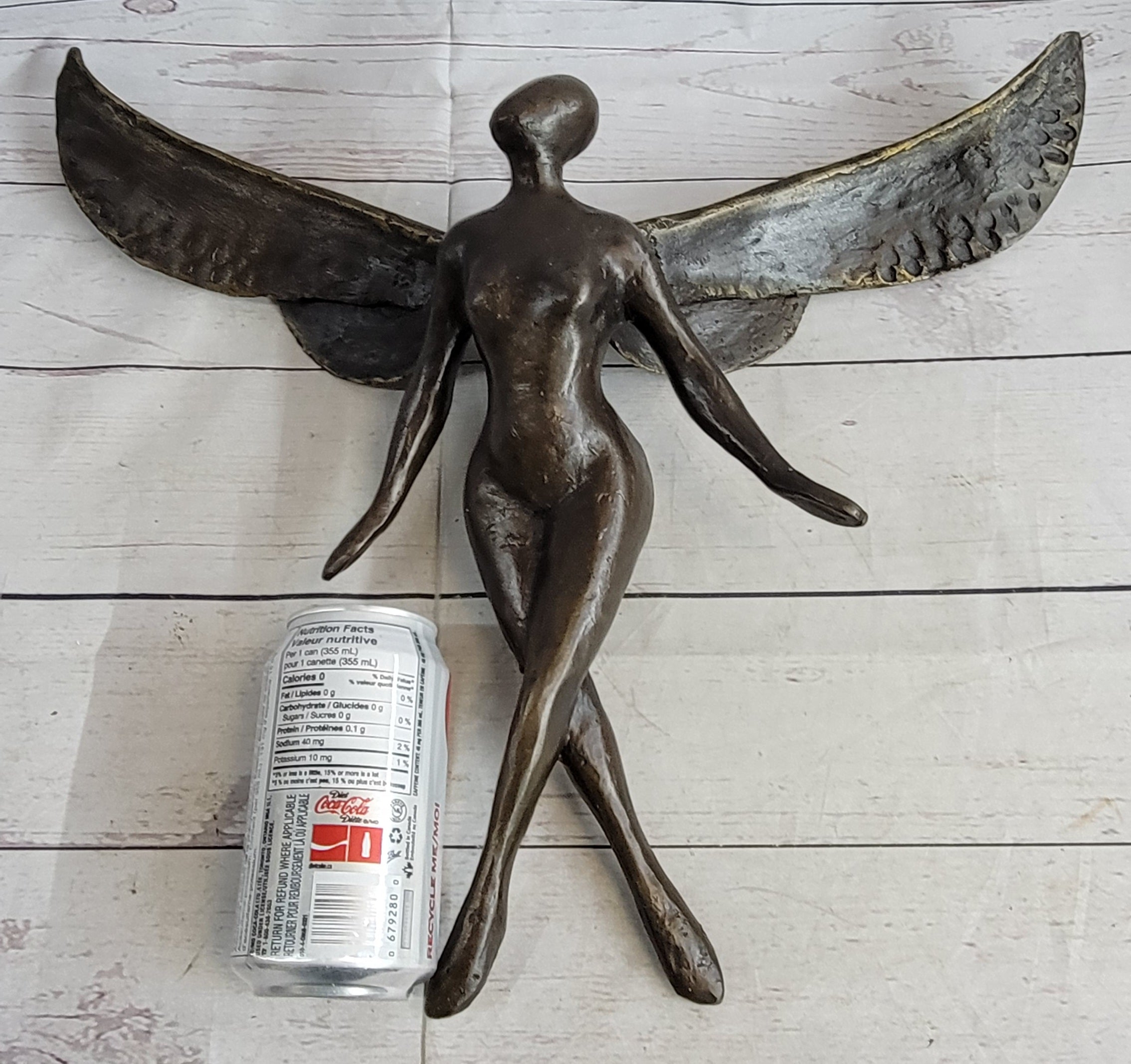 Handcrafted Limited Edition Green Patina Angel Wall mount Bronze Sculpture Statu