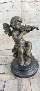 High quality little boy angel playing violin bronze sculpture Hot cast Figurine