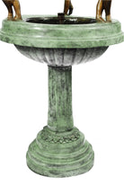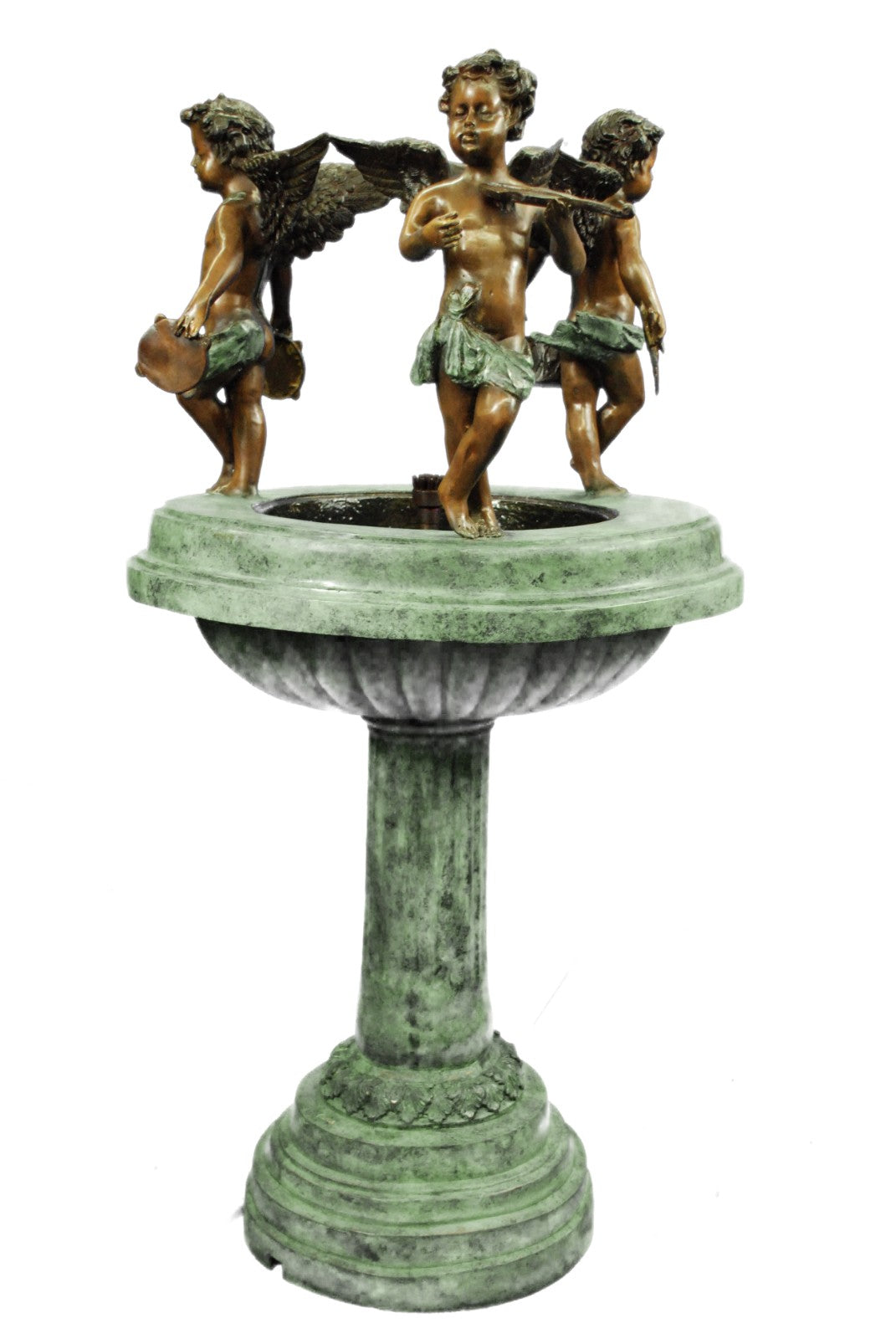 Adorable cherubs make the European Finery design The three Splashing Putti Sculptural Fountain a whimsical addition to your outdoor space. This water fountain doubles as a bird bath is made of durable 100% Real bronze. Its verdigris bronze finish elevates the look. From globe finial to cute cherubs to classic basic, this water feature is incredible.It also feature artist Signature Marius.Bronze Dimensions Base:Height 49" x Width 26"