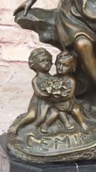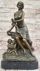 Romantic Bronze Sculpture of Woman with Cherubim Putti Cherubs Children by Milo