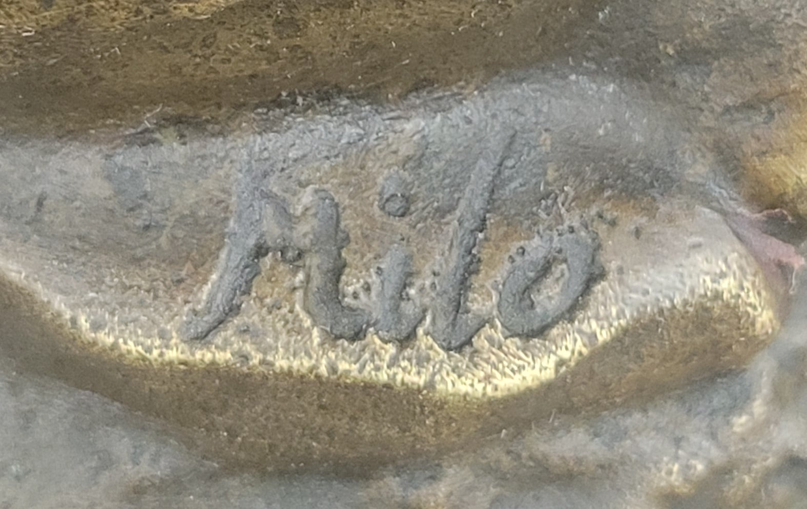 Signed by Milo, known for his mastery of the human form, this hot cast bronze is a remarkable addition for art collectors and admirers of figurative sculptures. It’s a beautiful choice for display in any space that celebrates artistry and craftsmanship, blending classical themes with enduring appeal.Bronze Dimensions with Marble Base: Height 15" x Width 8"