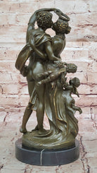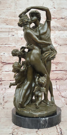 Romantic Lovers and Cherubs Bronze Sculpture on Marble Base by Milo