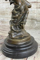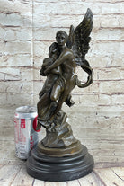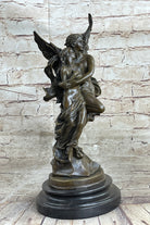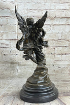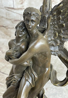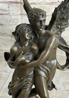 Signed Jean Debut Sculpture of a Romantic Couple Angel Bronze Statue 13" x 6"