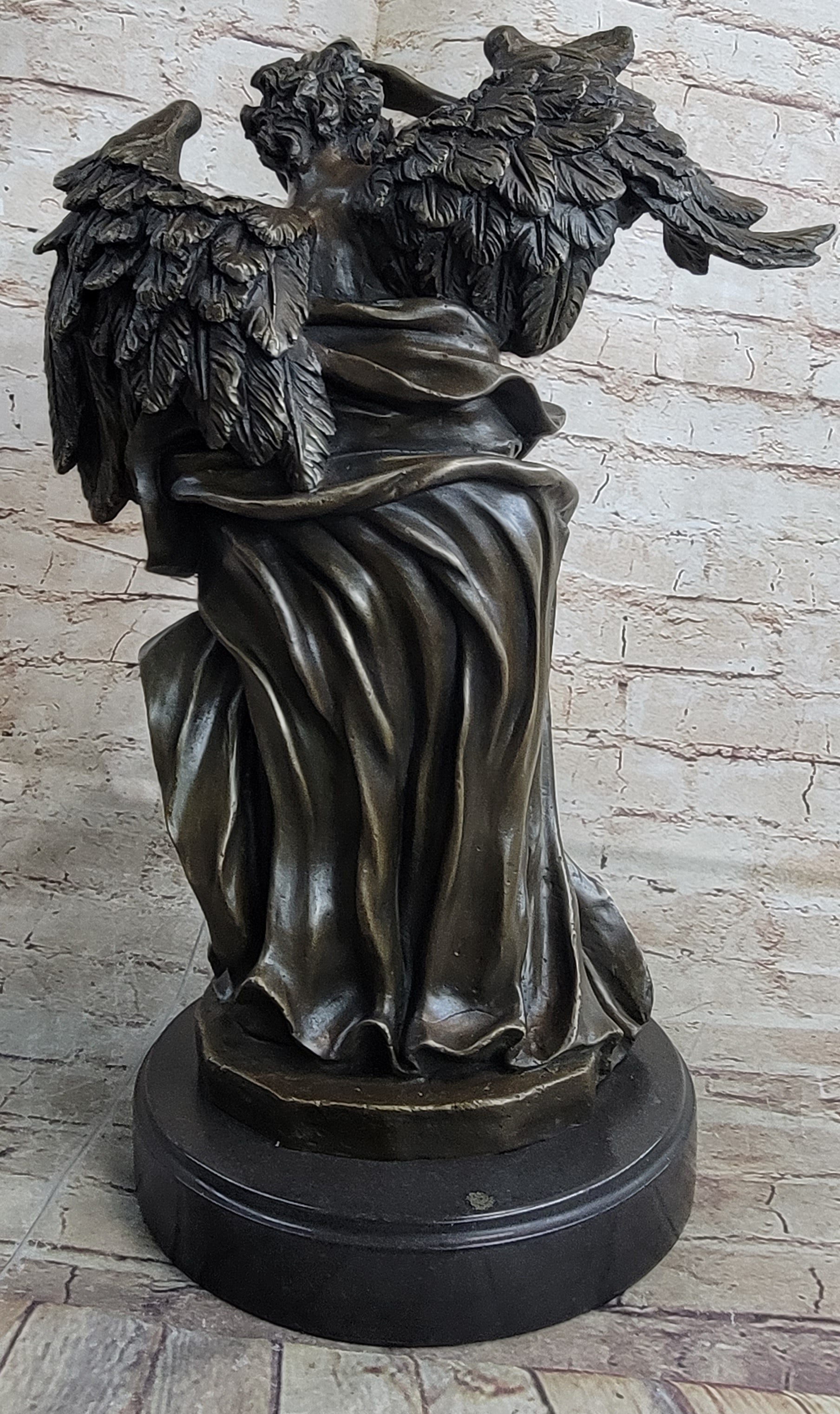 This exquisite piece beautifully blends innocence with nurture, capturing the essence of protective love and gentle care. The delicate interaction between the angel and the baby is rendered with meticulous detail, highlighting the angel’s strength and the baby’s purity. Crafted using the revered lost wax method, the sculpture showcases the skillful artistry and intricate craftsmanship involved in its creation.