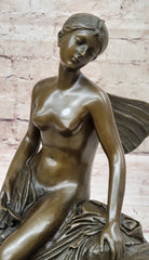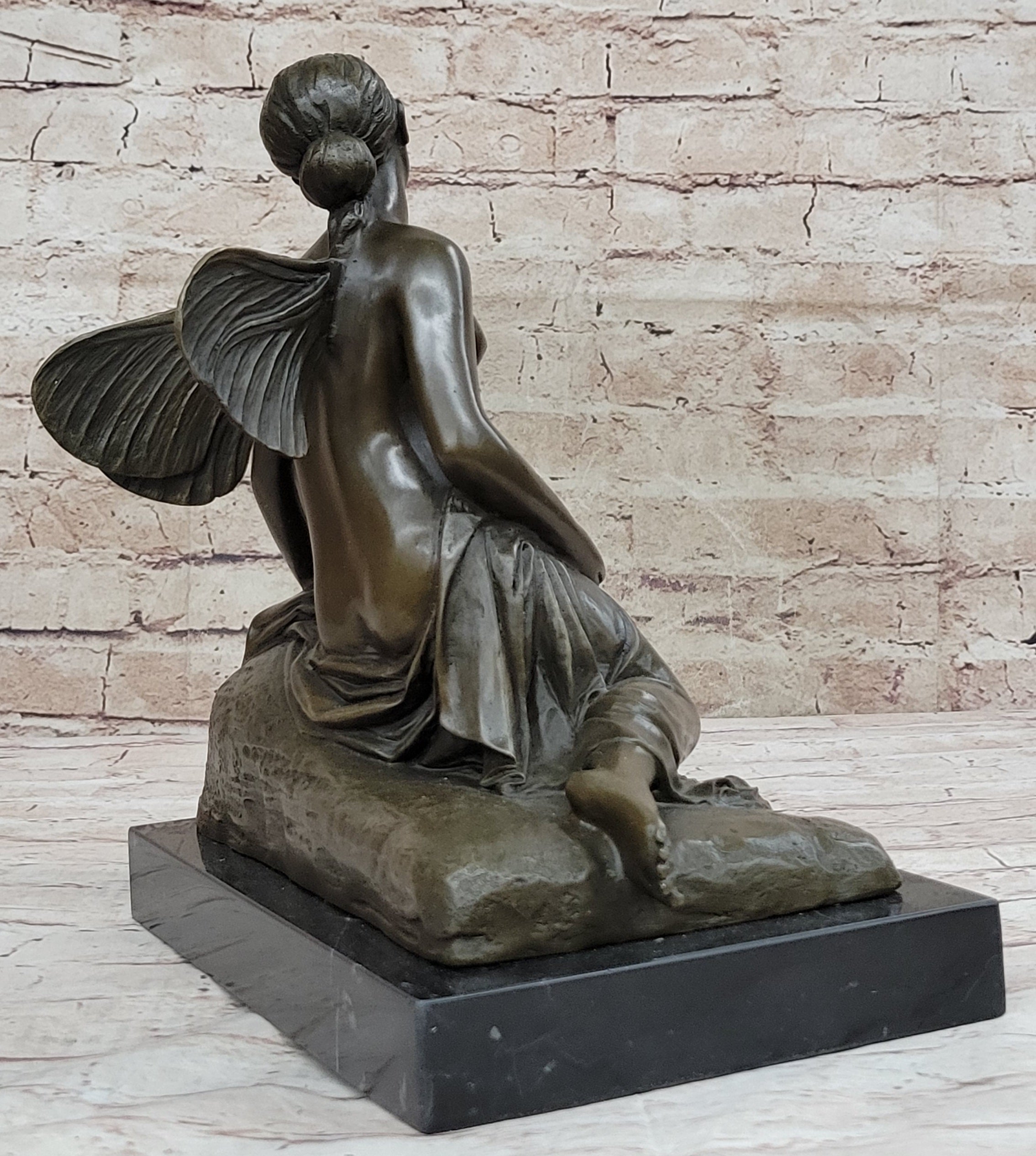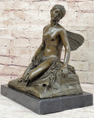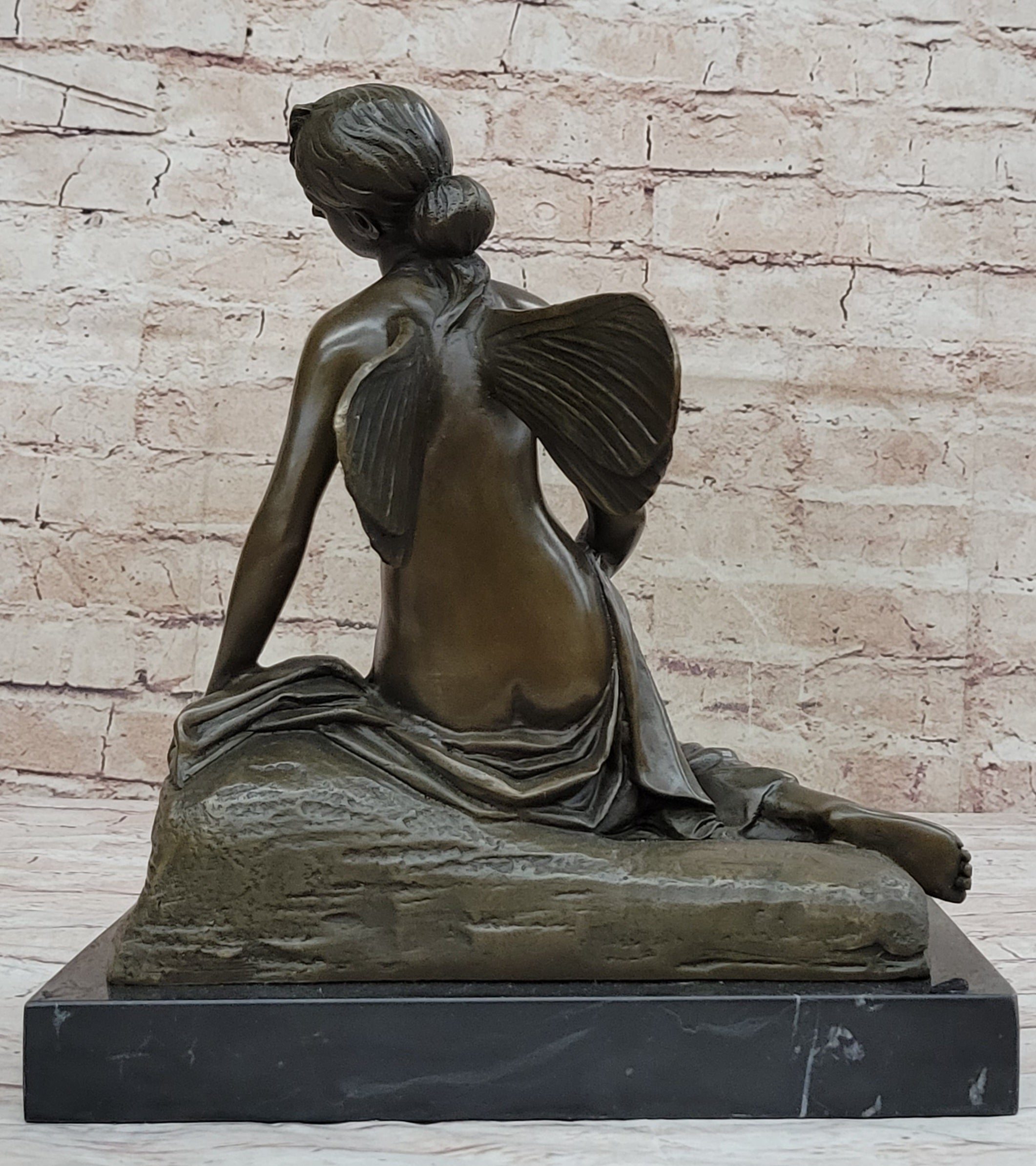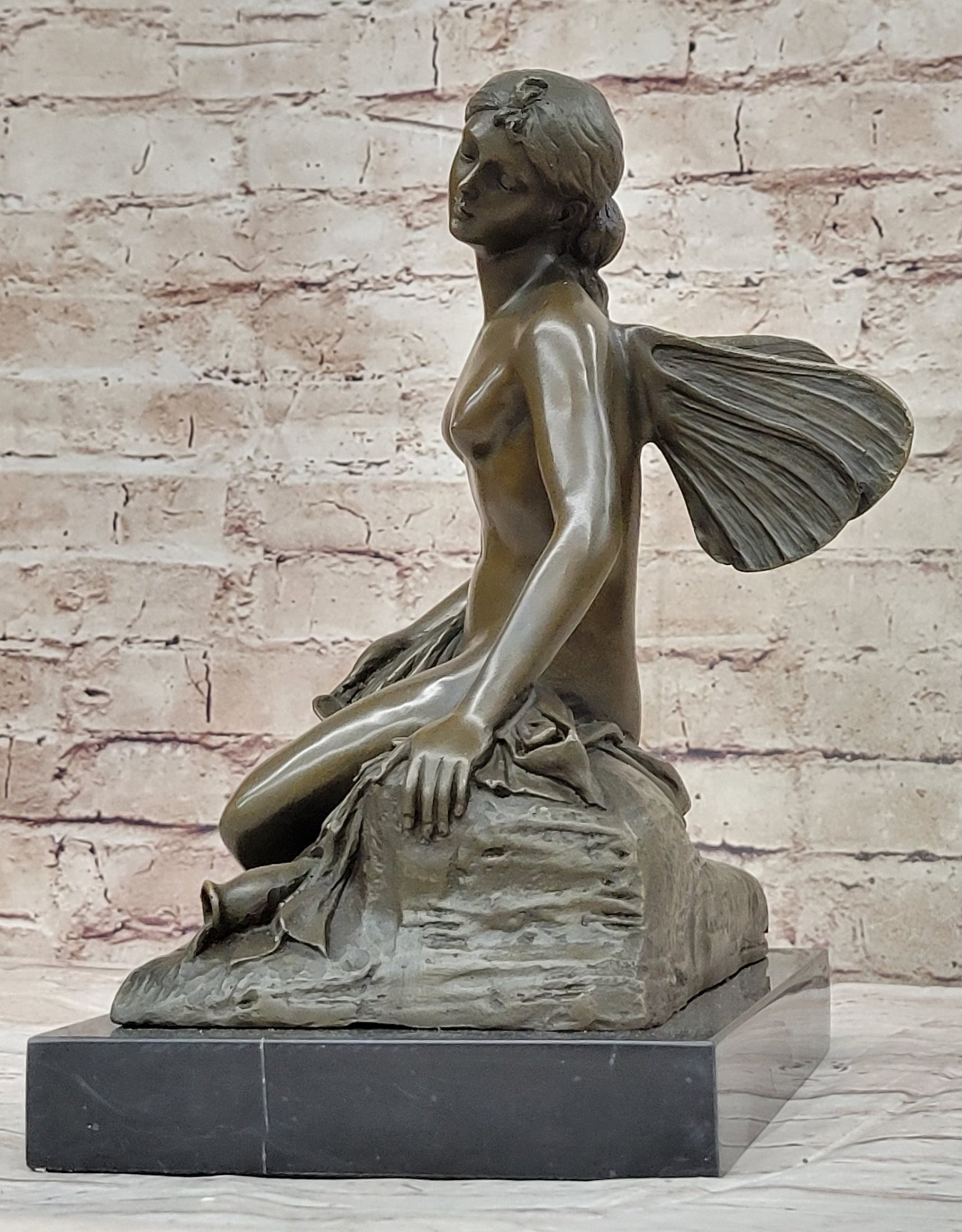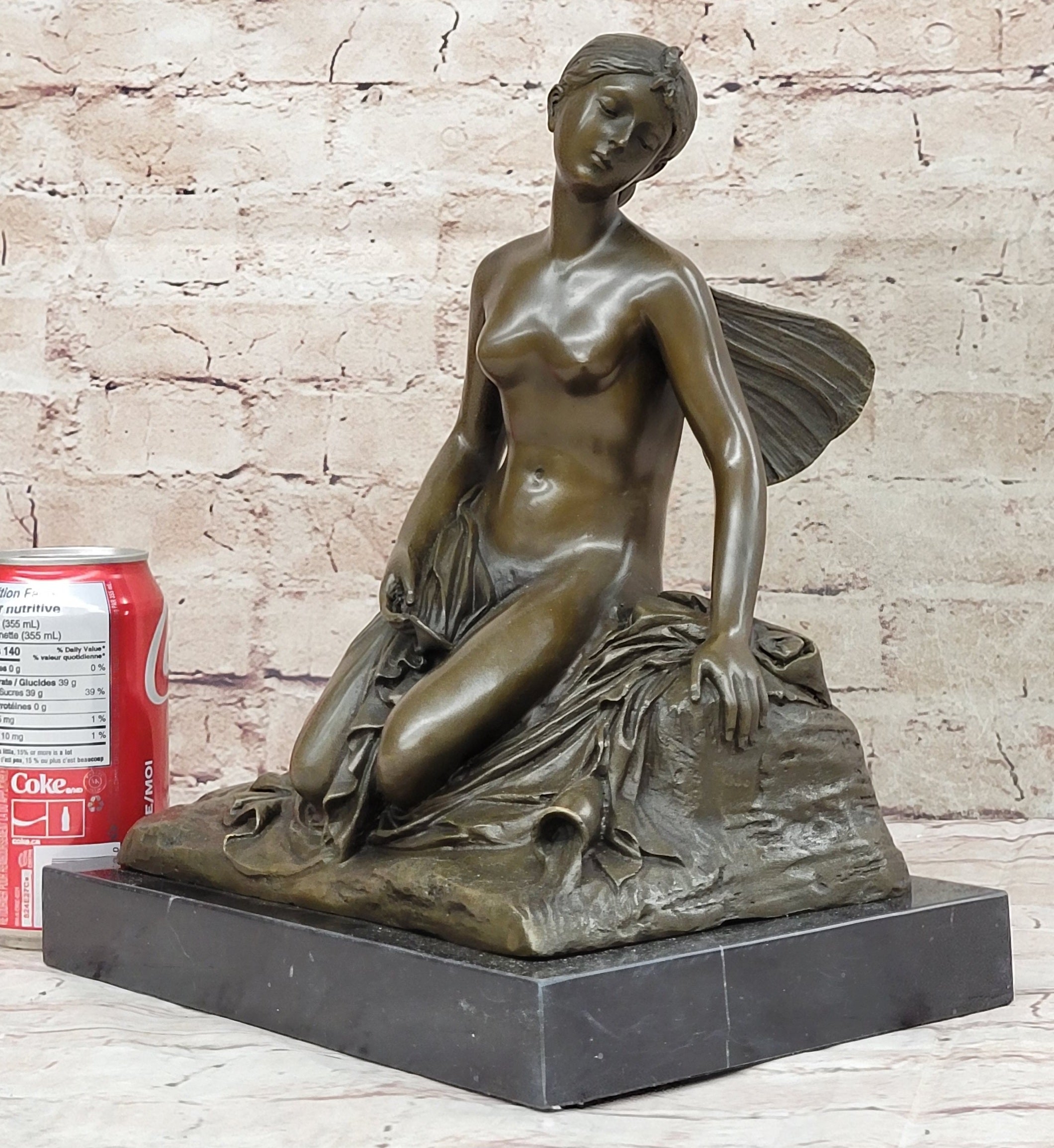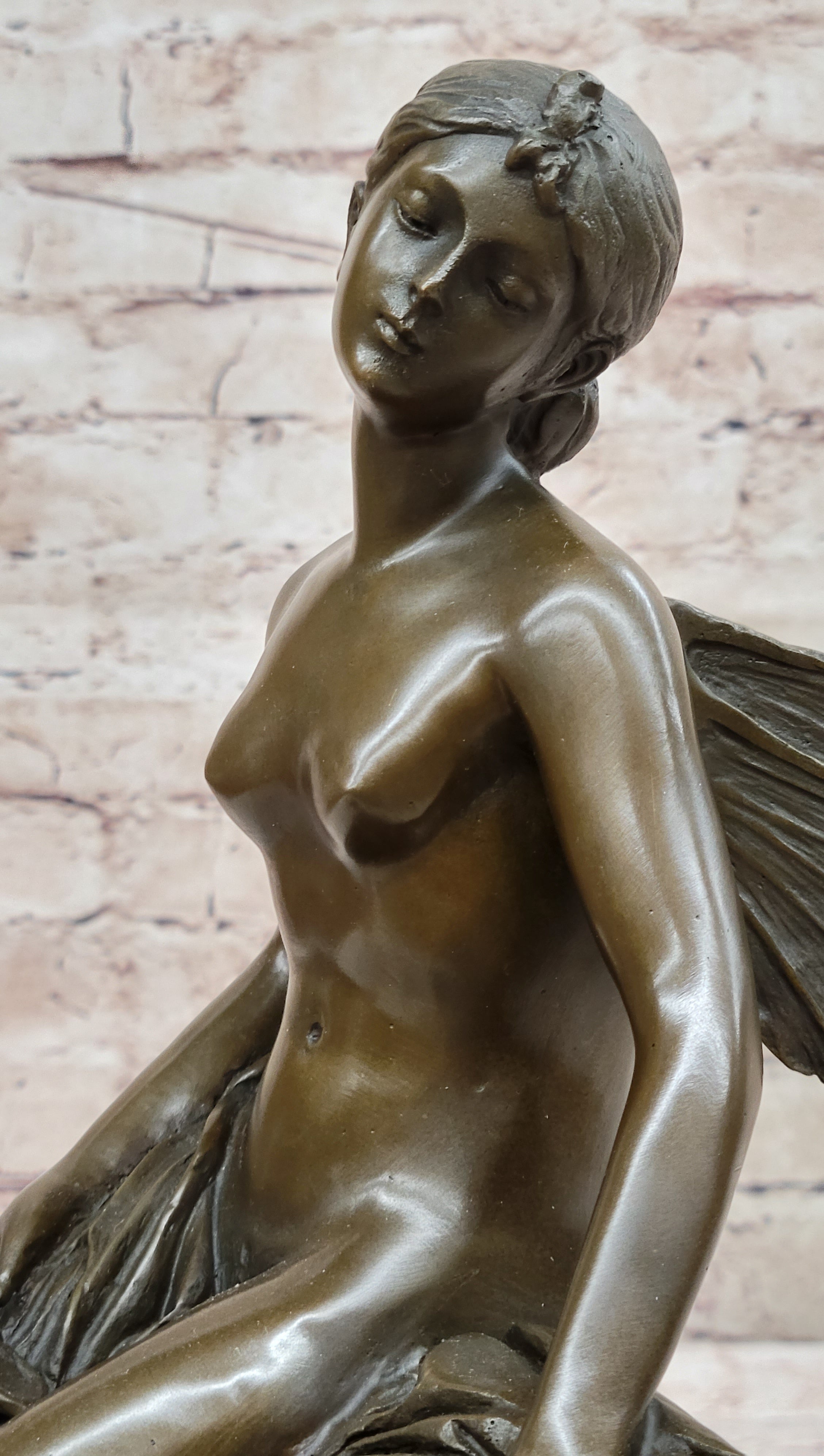 Signed Original Fairy Nude Goddess Bronze Marble Sculpture Statue by M.Nick