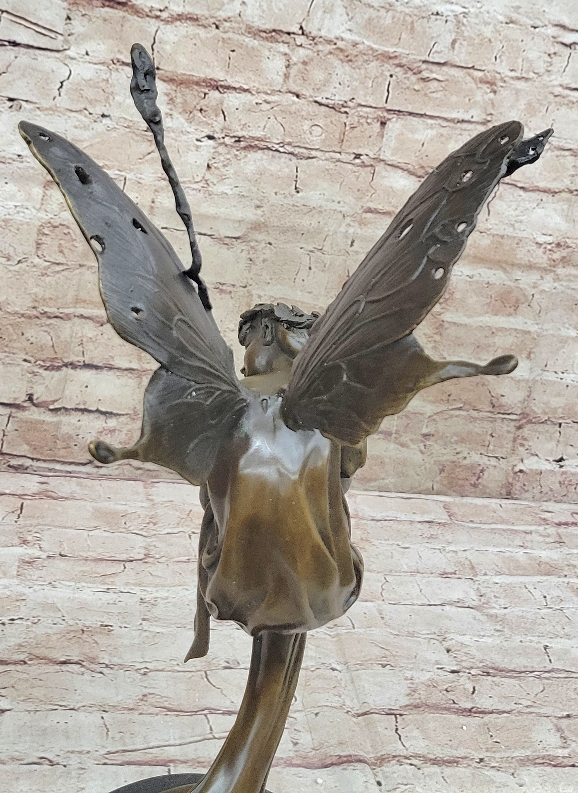 Signed by the esteemed artist Cesaro, this sculpture bears witness to the artist's mastery and vision, showcasing a blend of artistry and craftsmanship that transcends the ordinary. Whether displayed as a symbol of faith and inspiration or admired for its artistic brilliance, this enchanting fairy sculpture is sure to captivate hearts and minds alike, offering a glimpse of the divine in our earthly realm.Bronze Dimensions with Marble Base: Height 16" X Width 7"