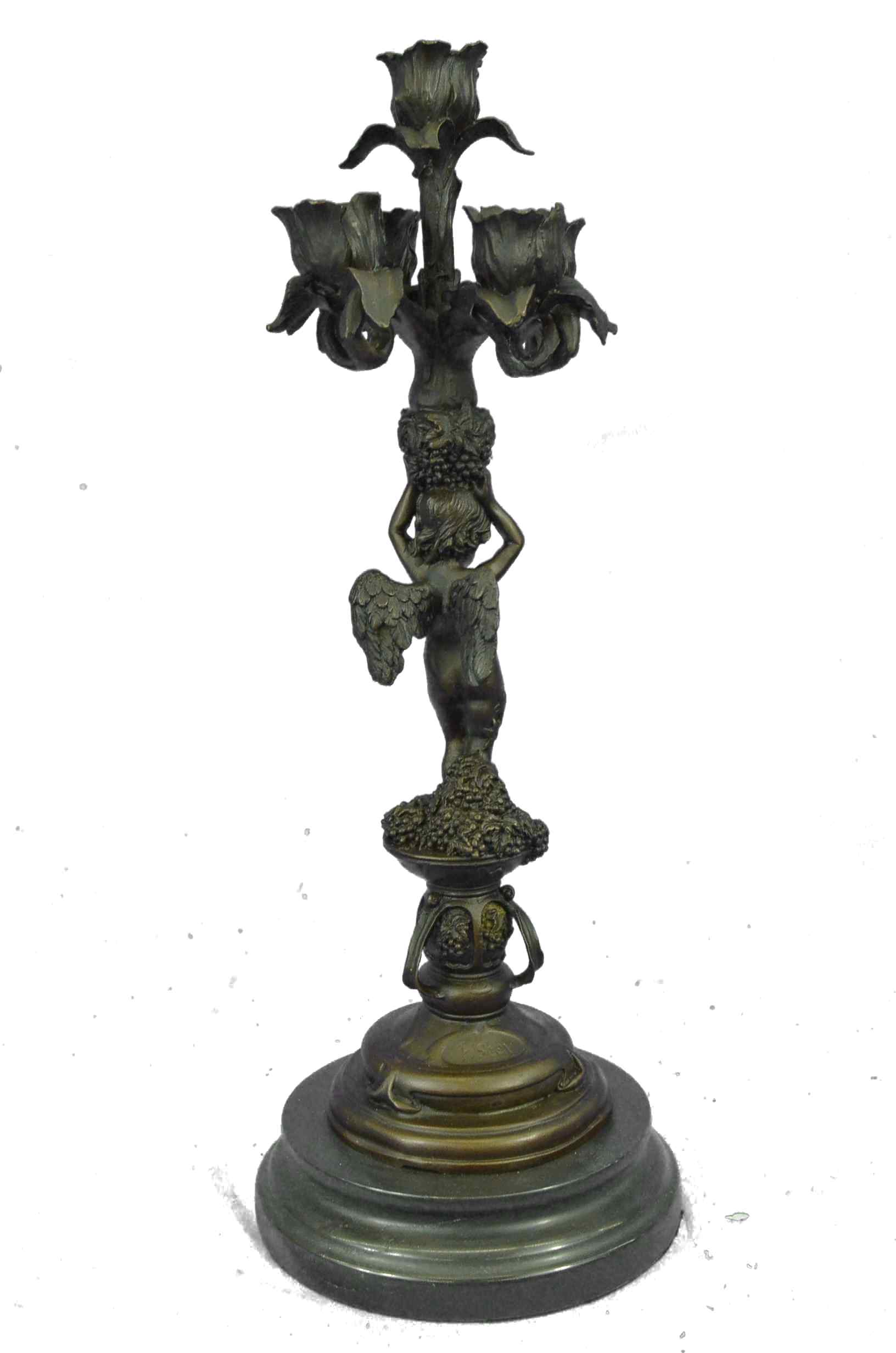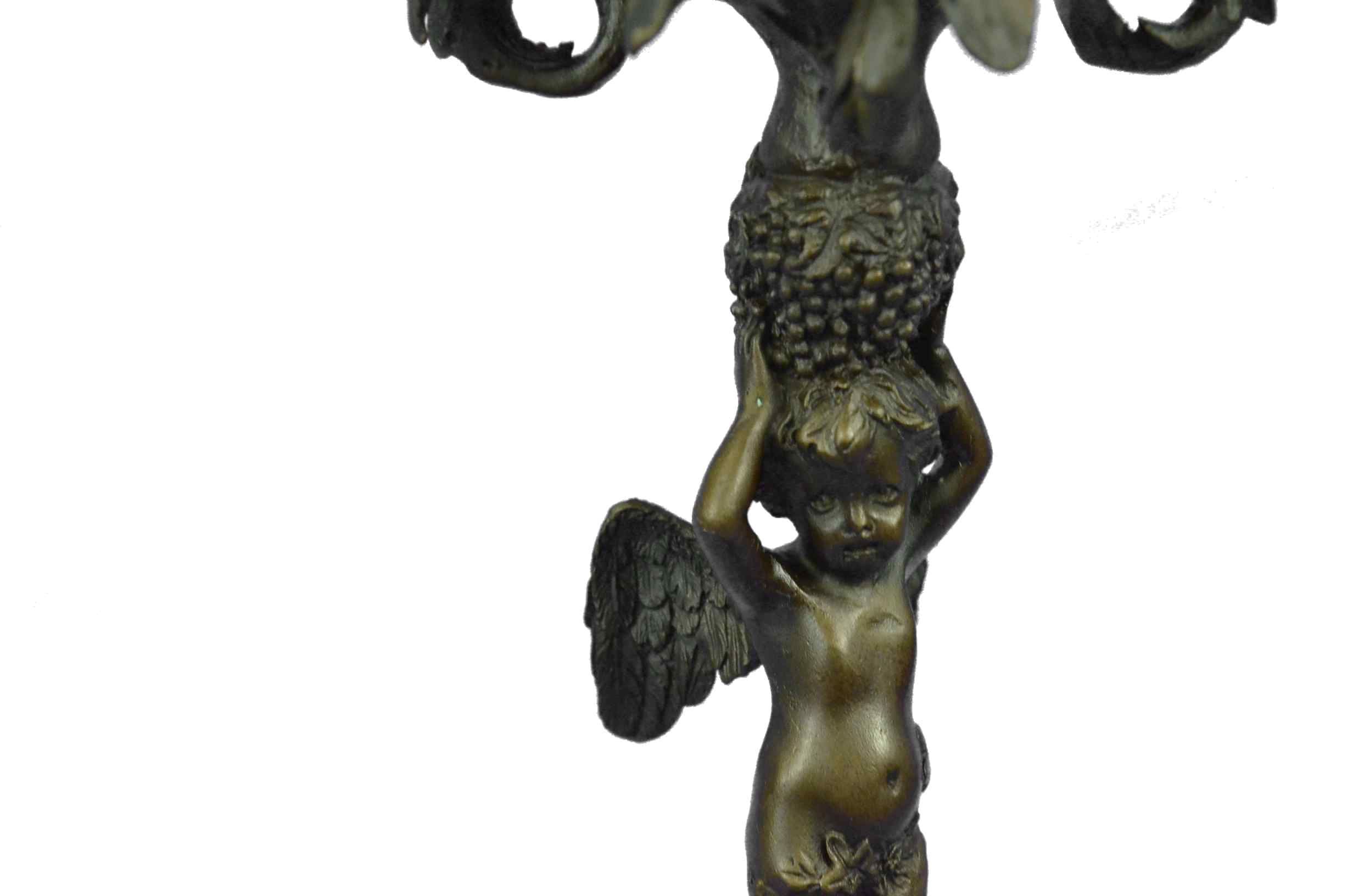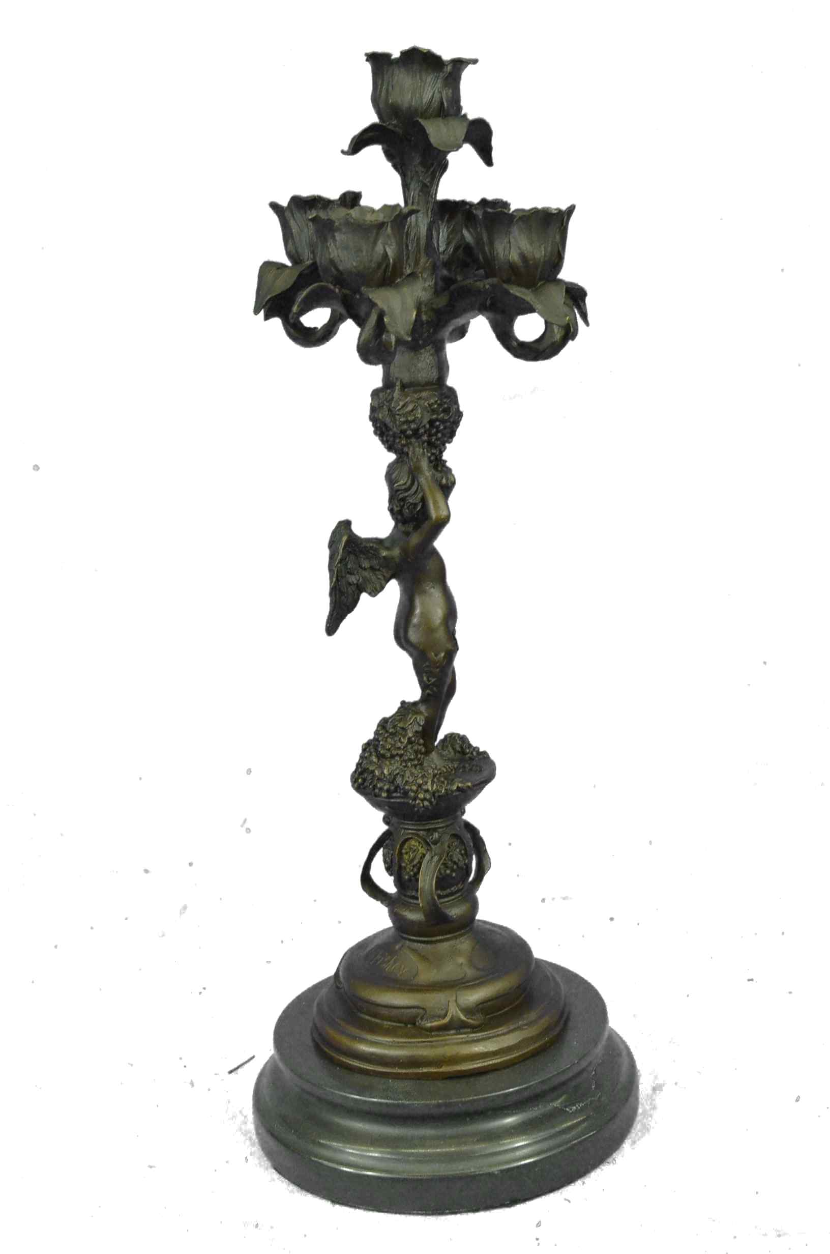 Signed Original Milo Adorable Cherub Angel Candelbra Bronze Sculpture Art Deco