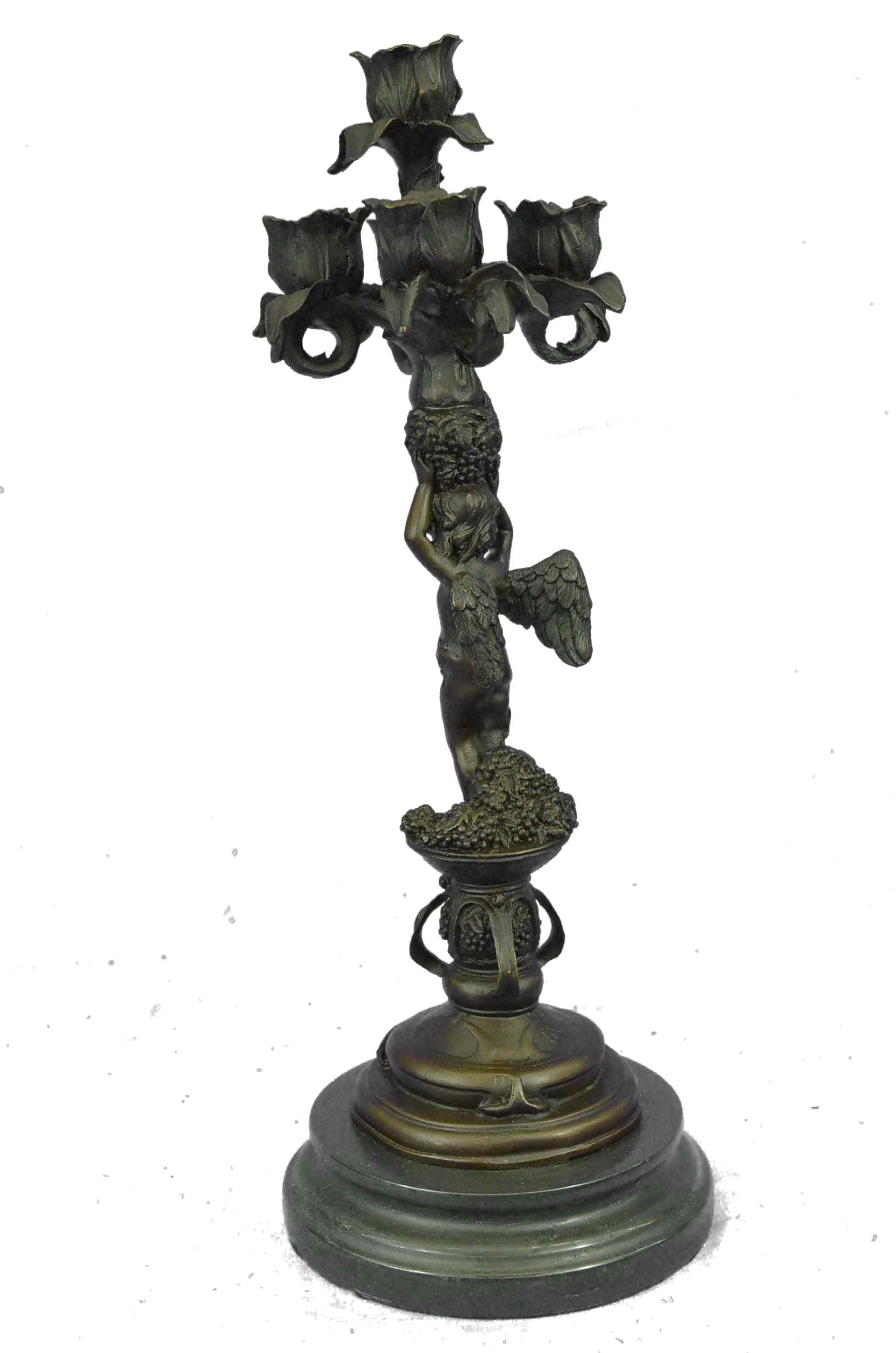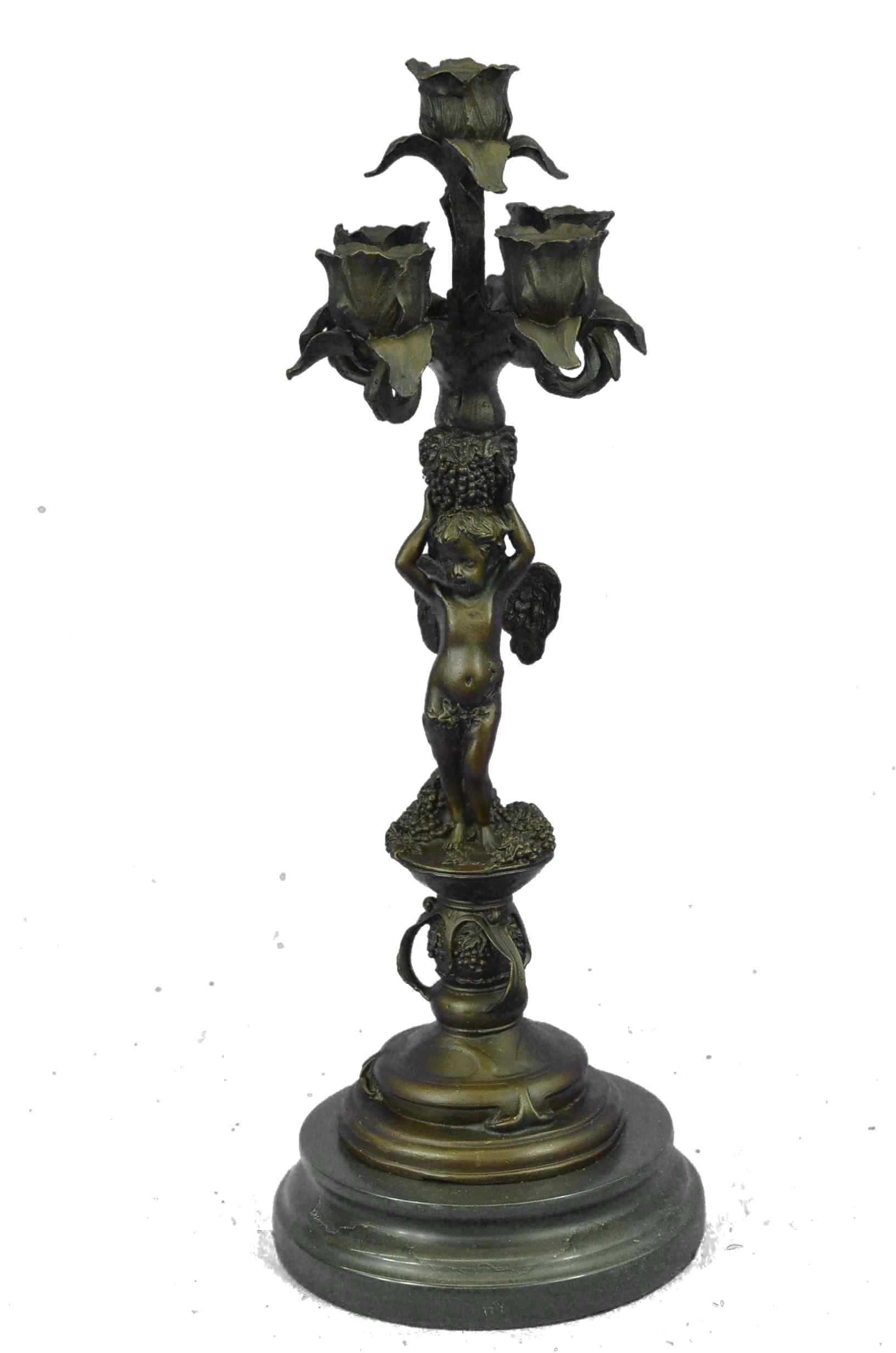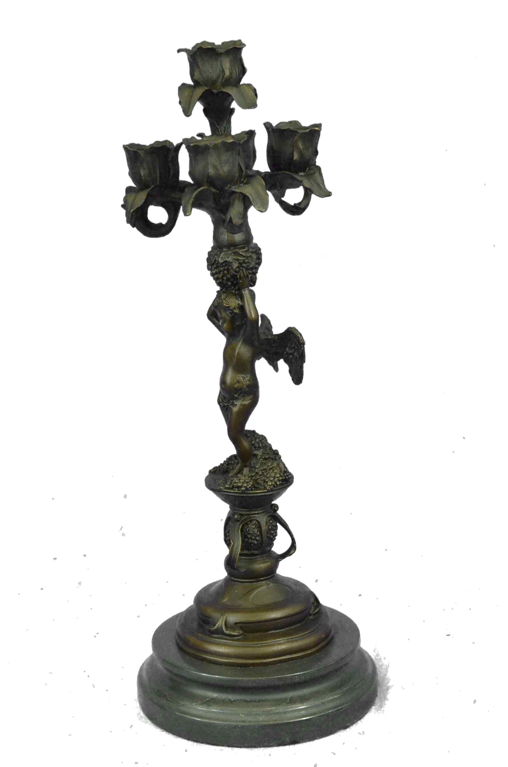 Signed Original Milo Adorable Cherub Angel Candelbra Bronze Sculpture Art Deco