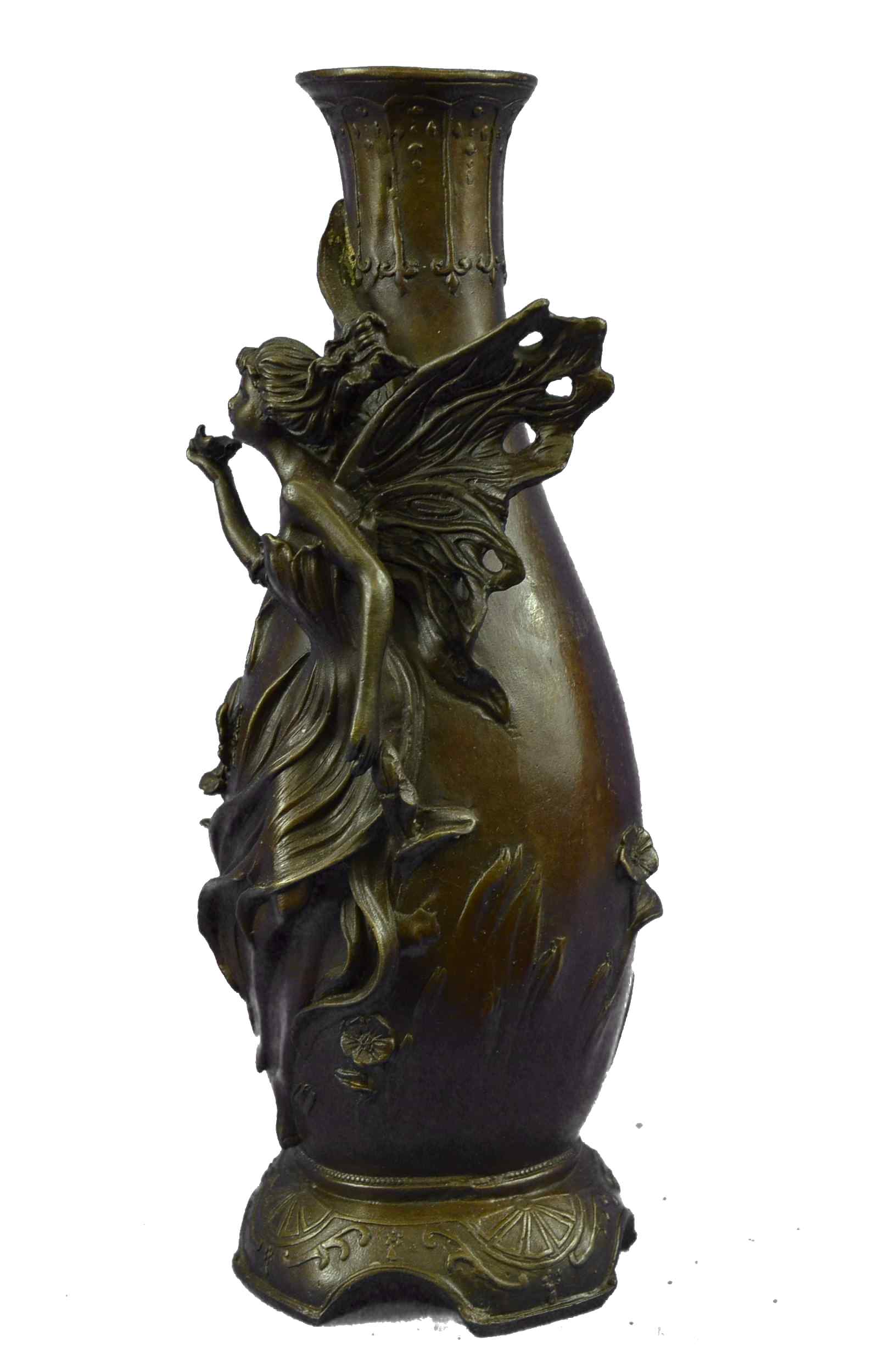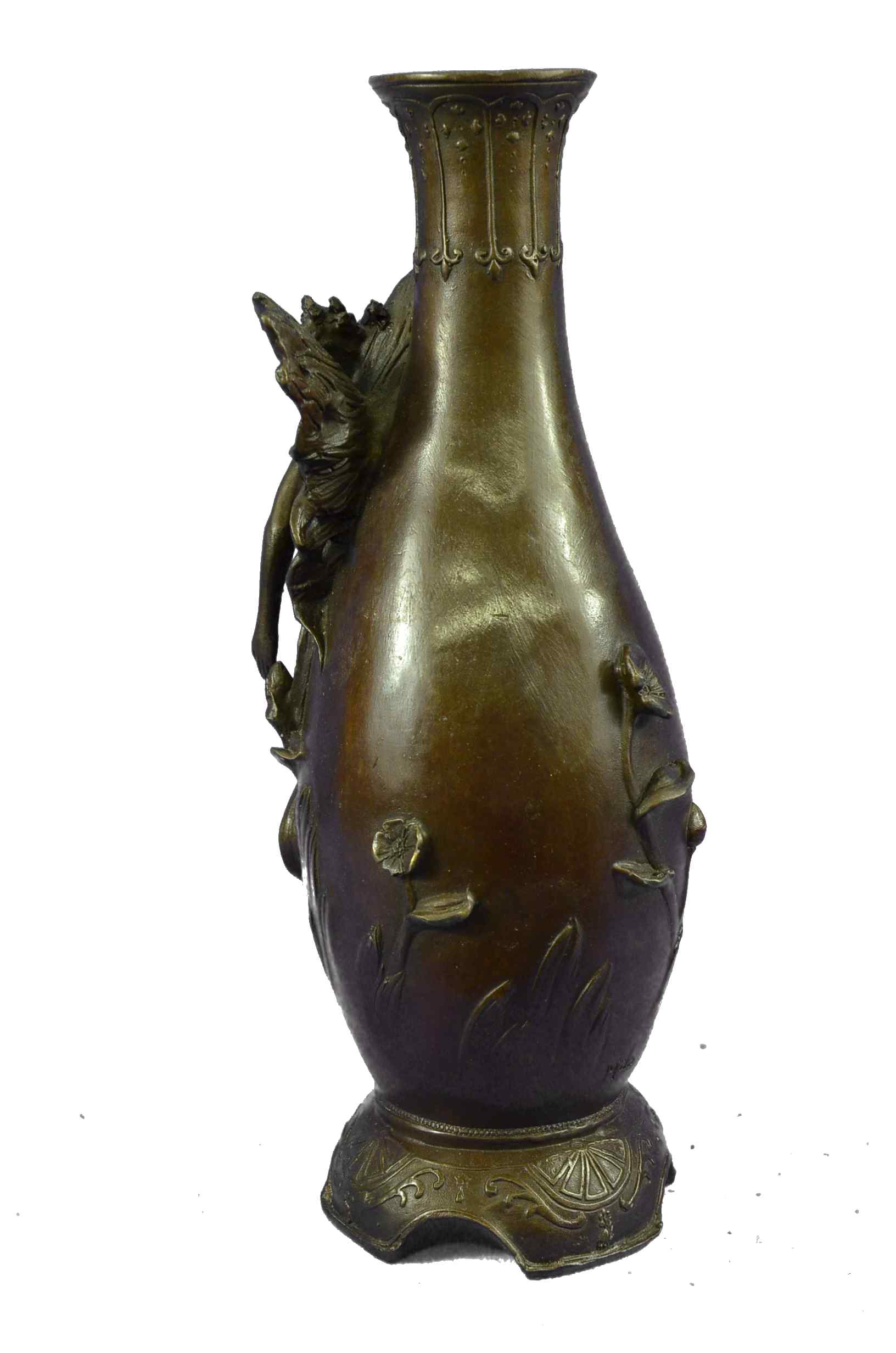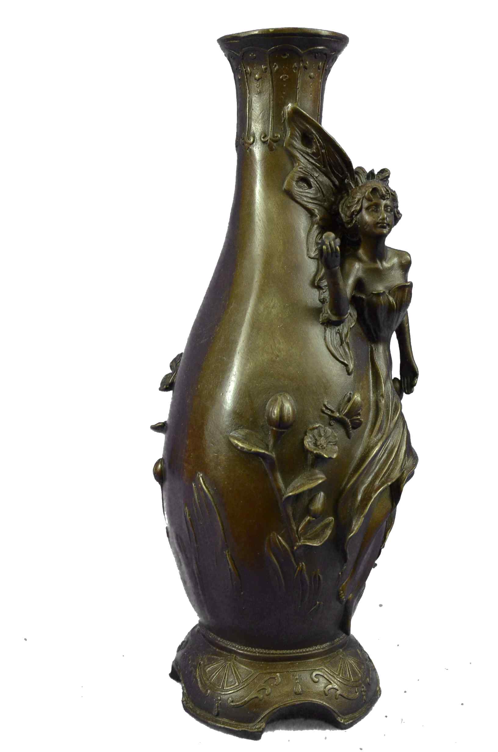 Signed Original Sexy Fairy with Wing Bronze Vase Art Nouveau Sculpture Figurine