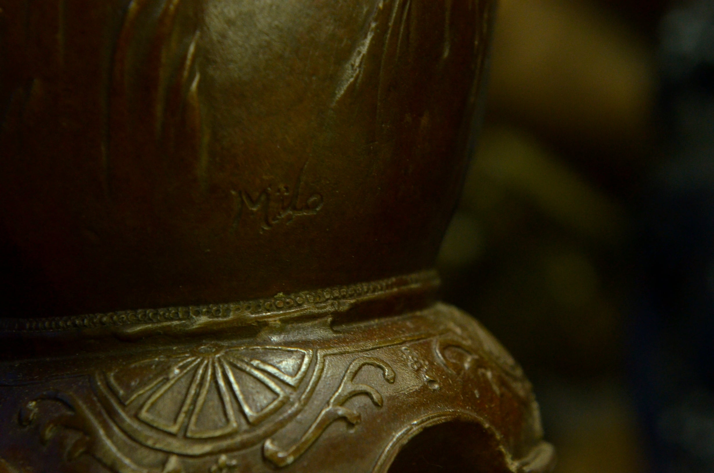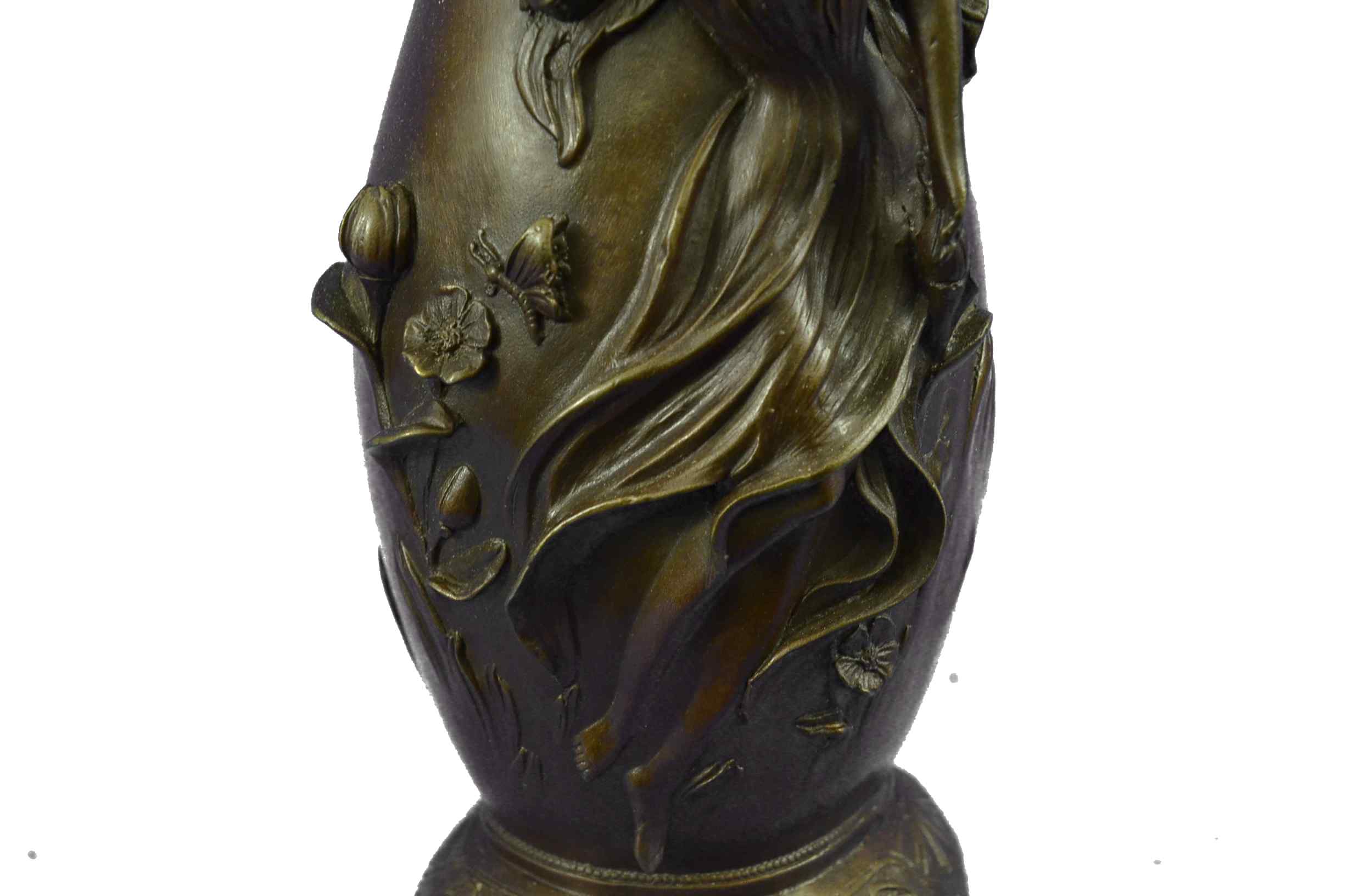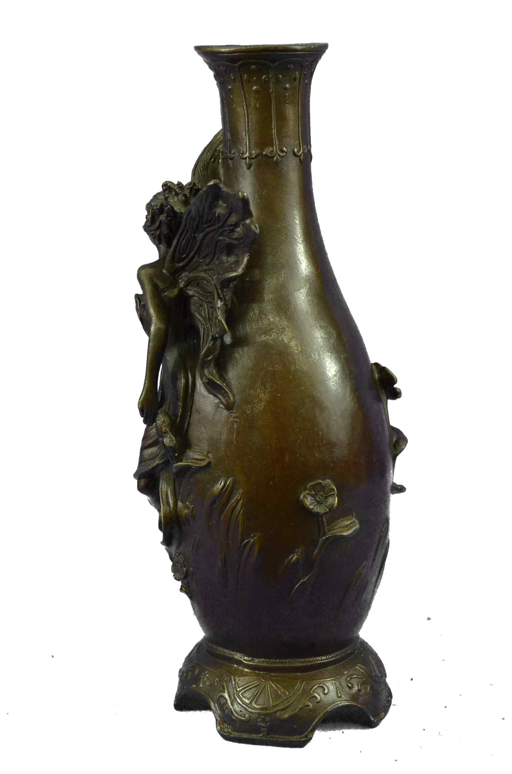 Signed Original Sexy Fairy with Wing Bronze Vase Art Nouveau Sculpture Figurine