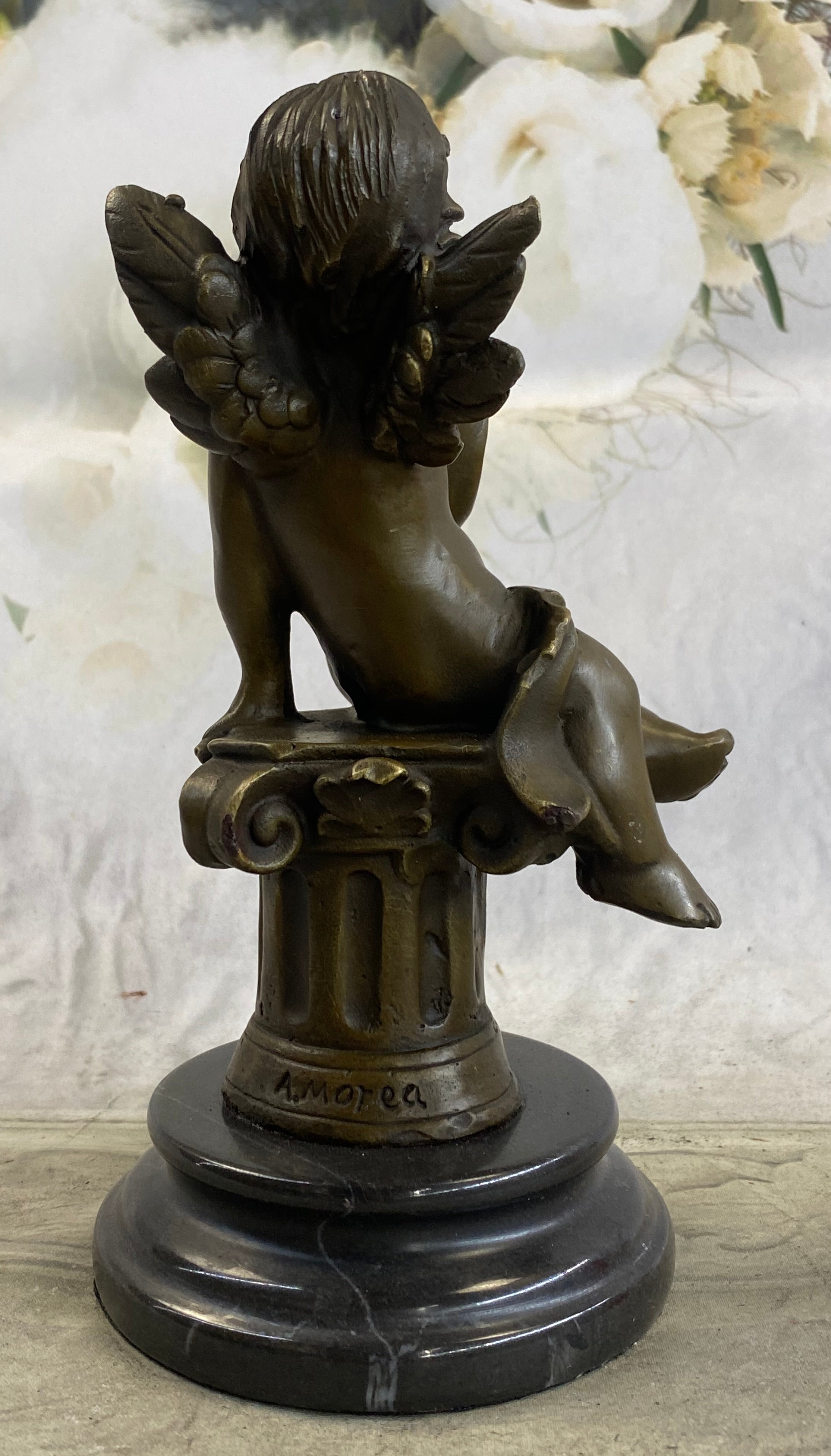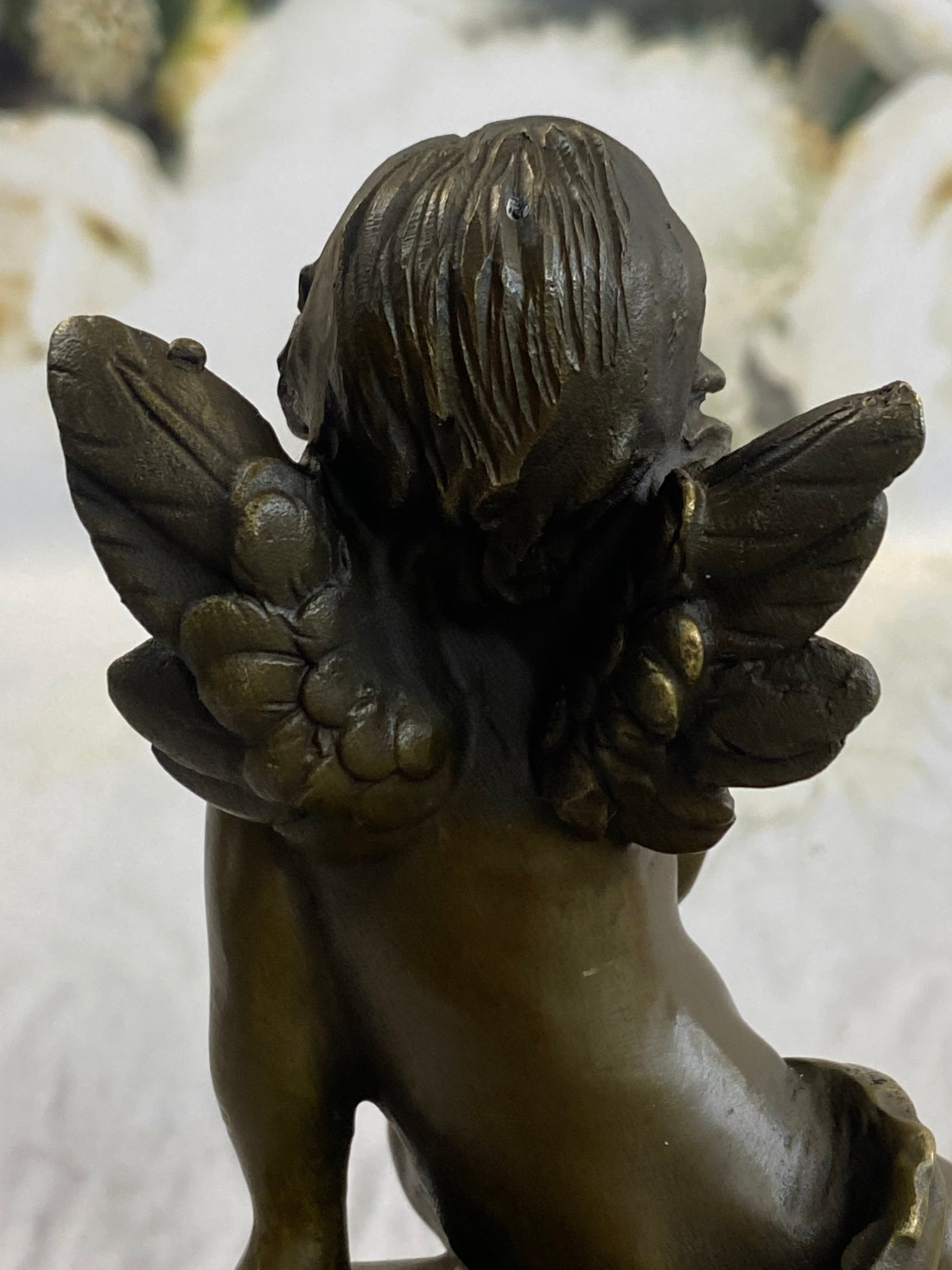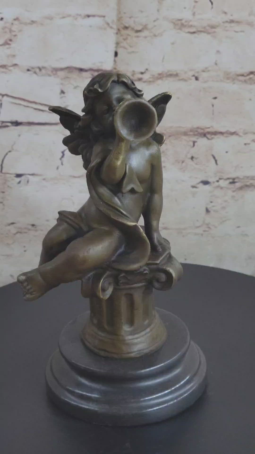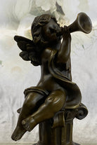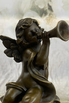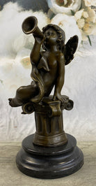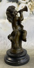 Cherub Boy Playing Trumpet Bugle Bronze Statue Sculpture Figure Moreau 8" x 5"