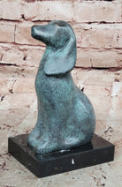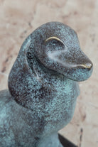 Abstract Bronze Sitting Dog Sculpture with Green Patina on Marble Base