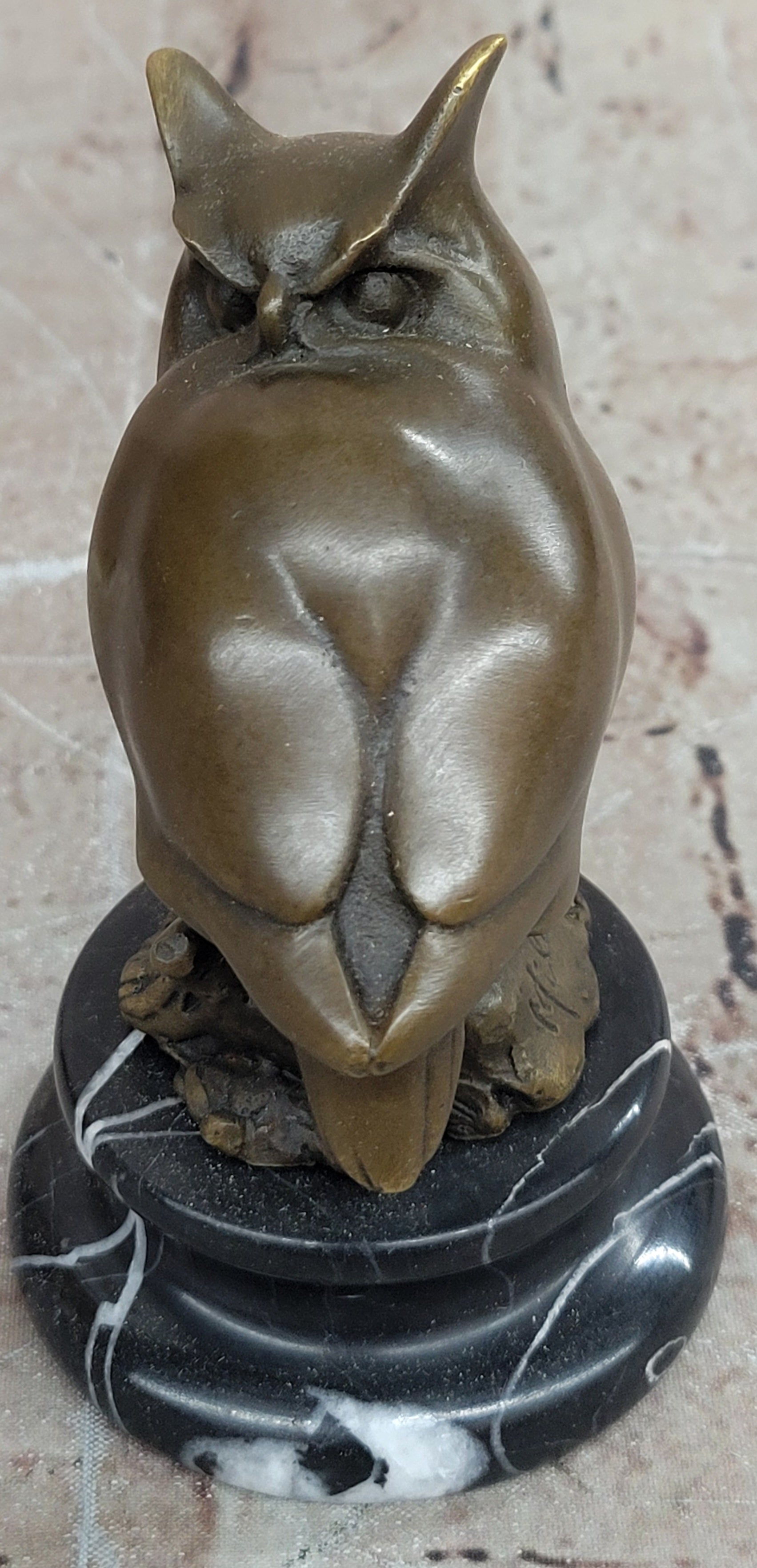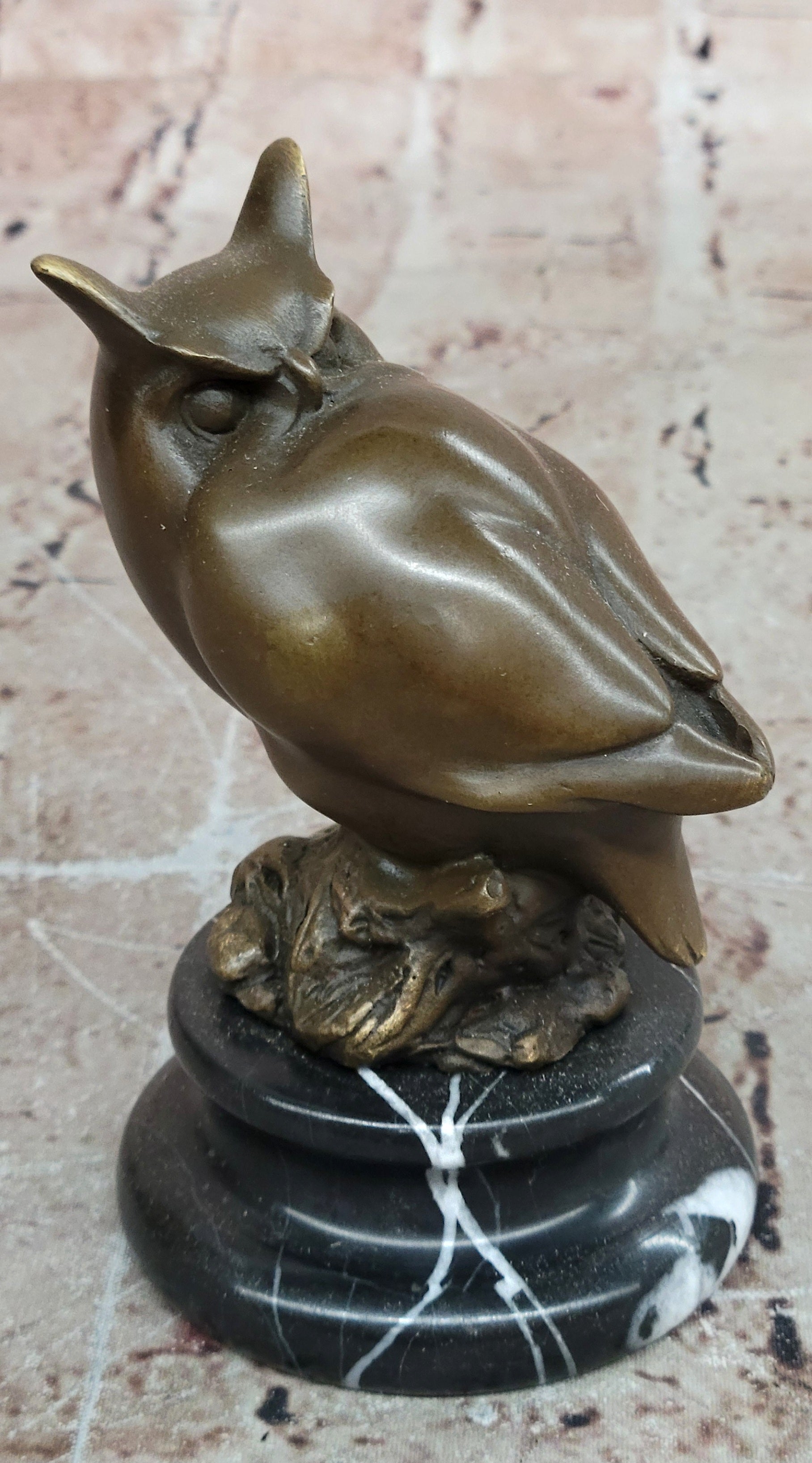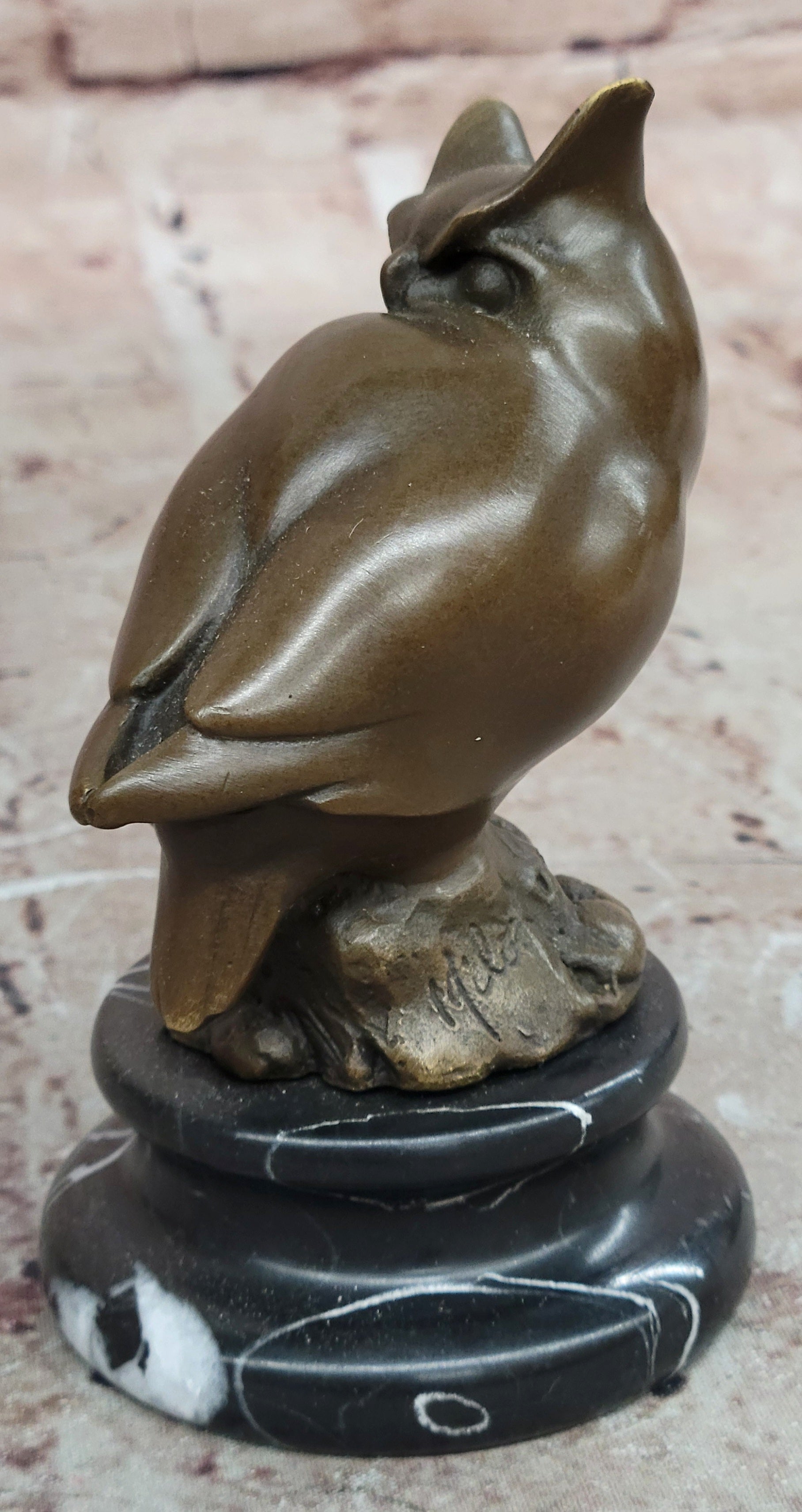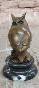 Art Deco Bronze Owl Sculpture – Stylized Bird Statue on Marble Base