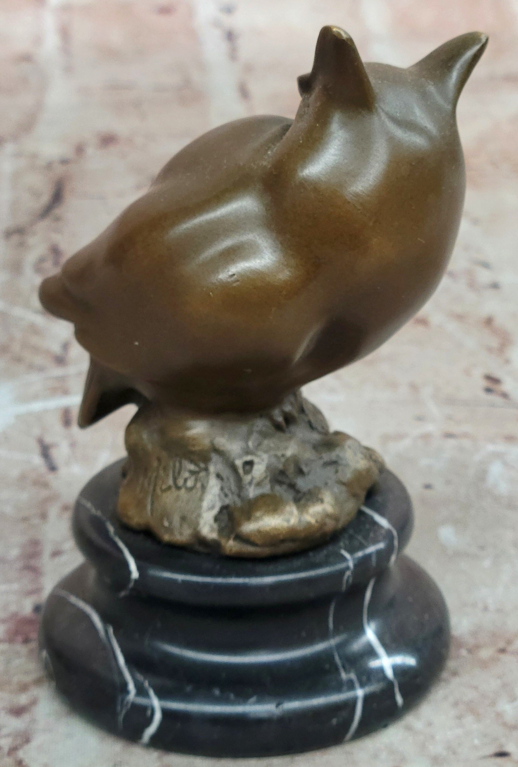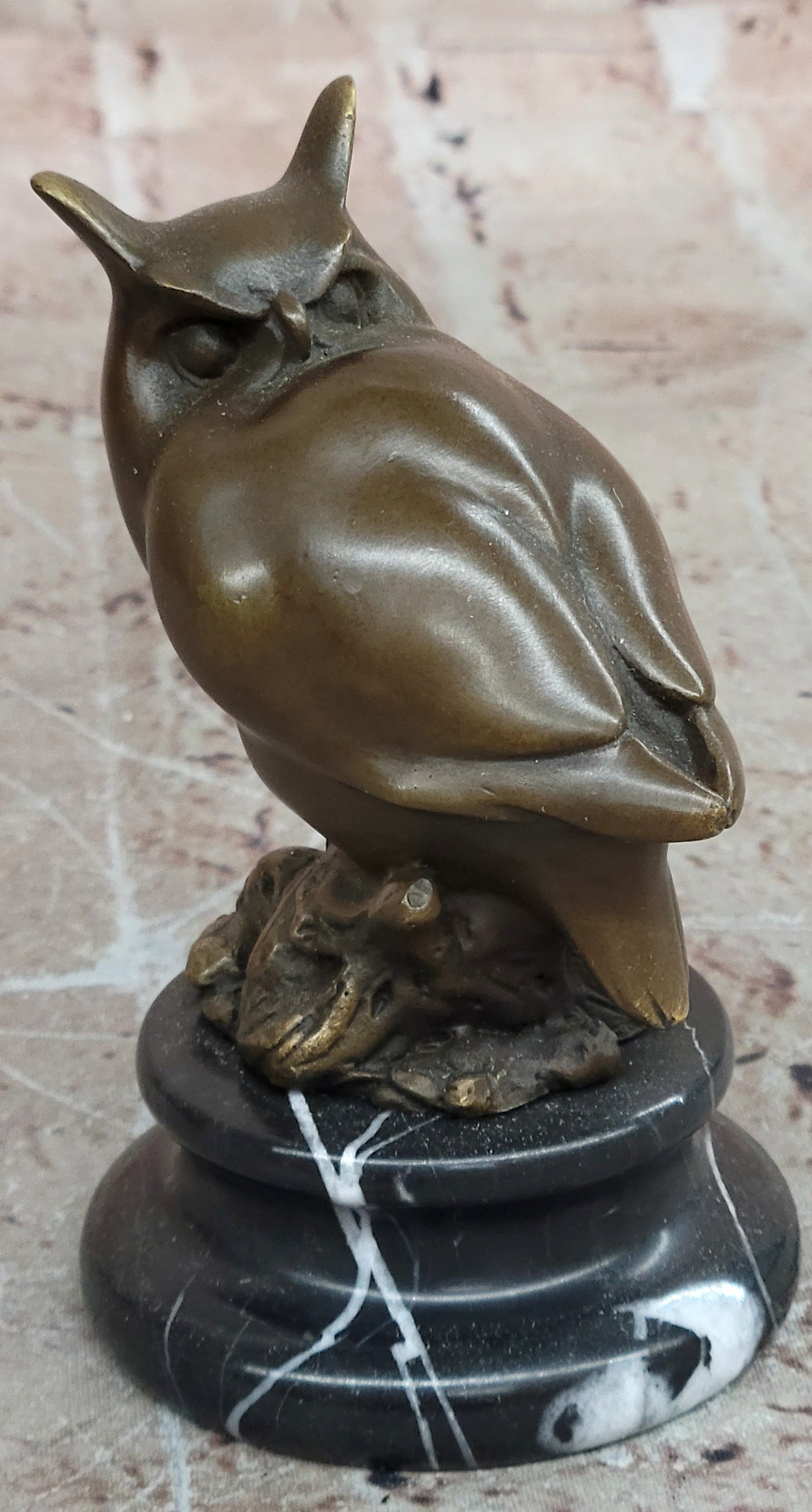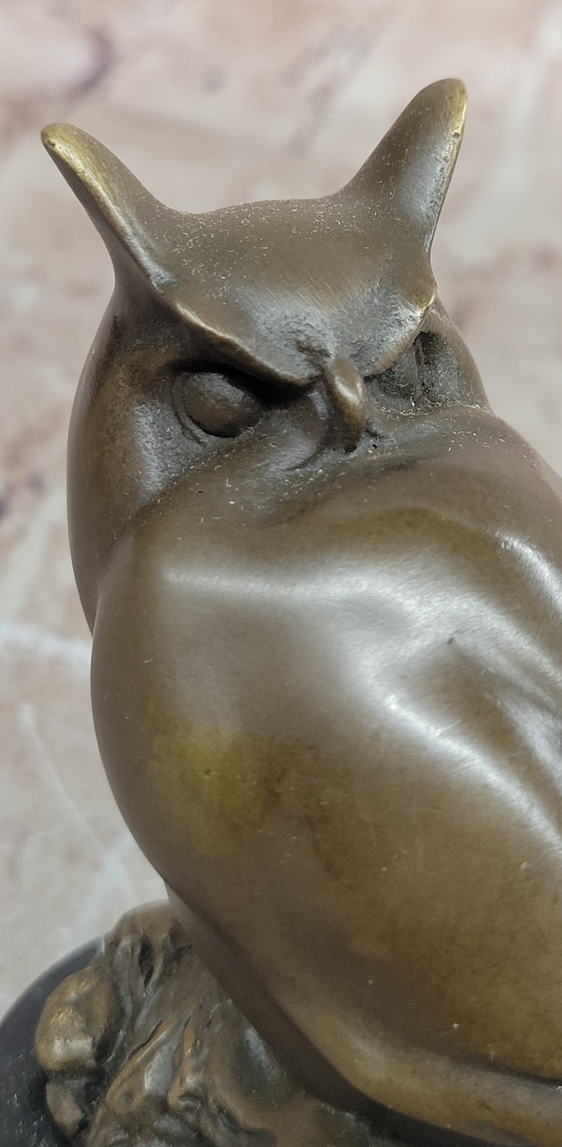 Art Deco Bronze Owl Sculpture – Stylized Bird Statue on Marble Base