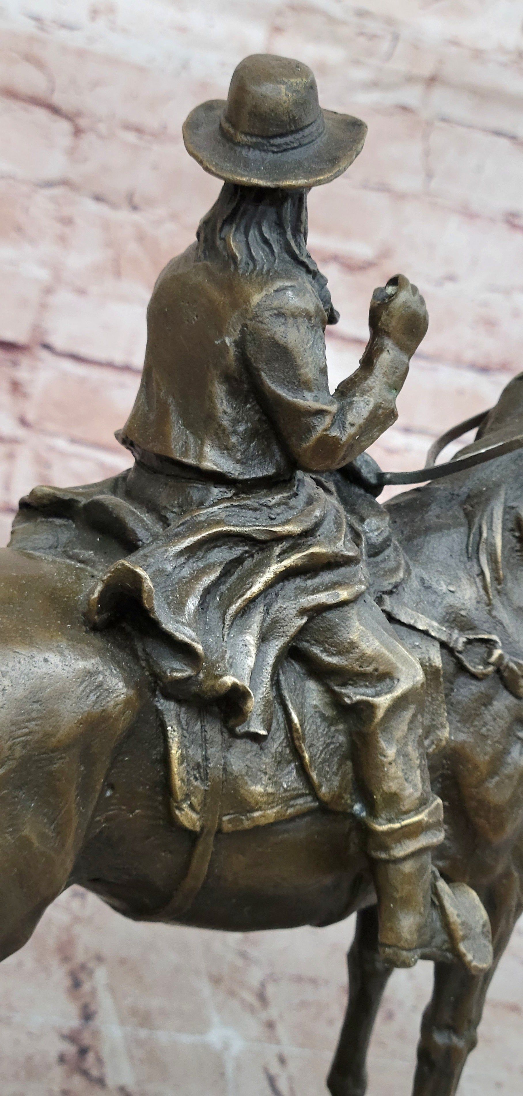 Bronze Cowboy Riding Horse Sculpture Western Equestrian Statue
