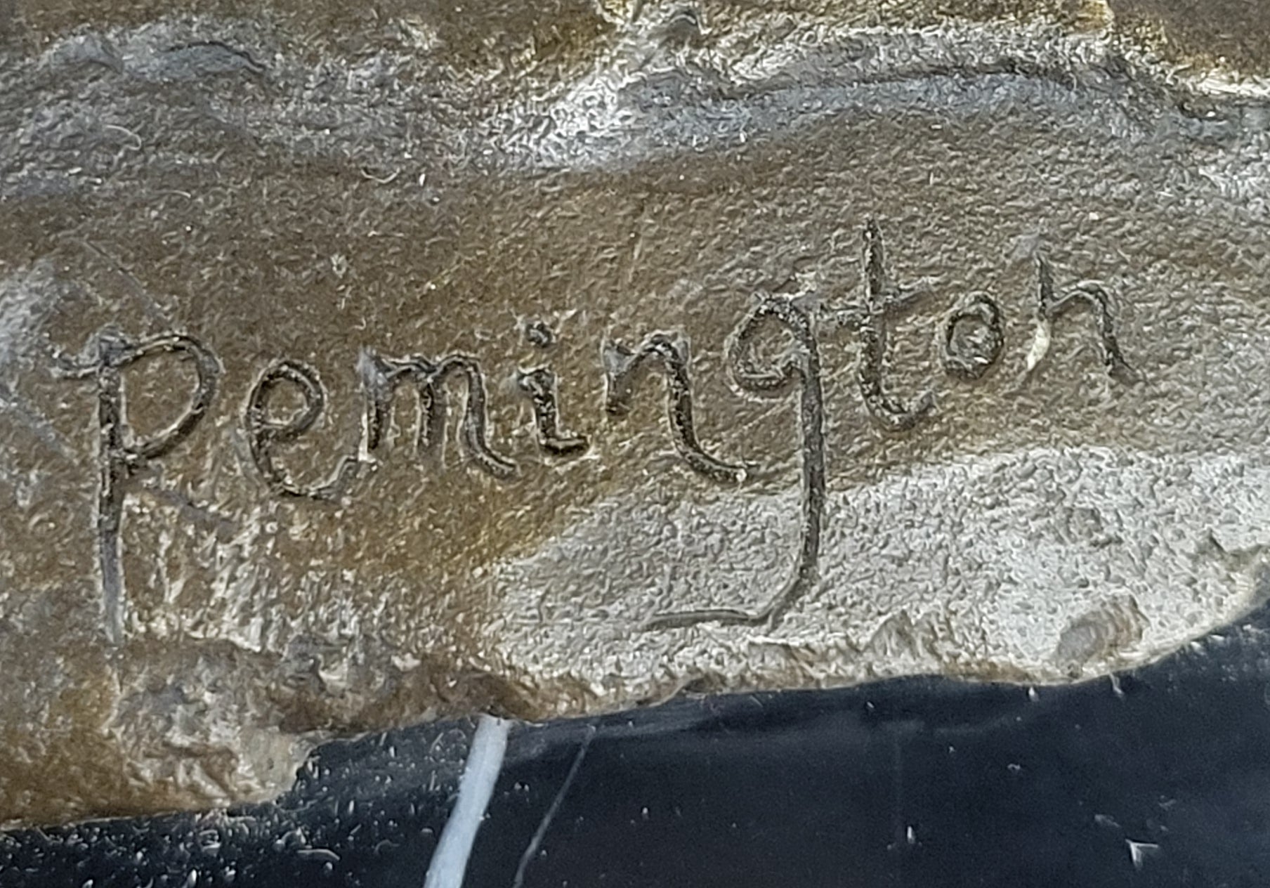 Mounted on a sturdy black marble base, this striking sculpture stands as a tribute to the enduring legacy of the American cowboy. Signed by the artist Remington, it exemplifies the meticulous craftsmanship and attention to detail that characterize his renowned body of work. With its rich brown patina finish, it serves as a timeless representation of the adventurous spirit of the Wild West.Bronze Dimensions with Marble Base: Height 12" X Width 12"