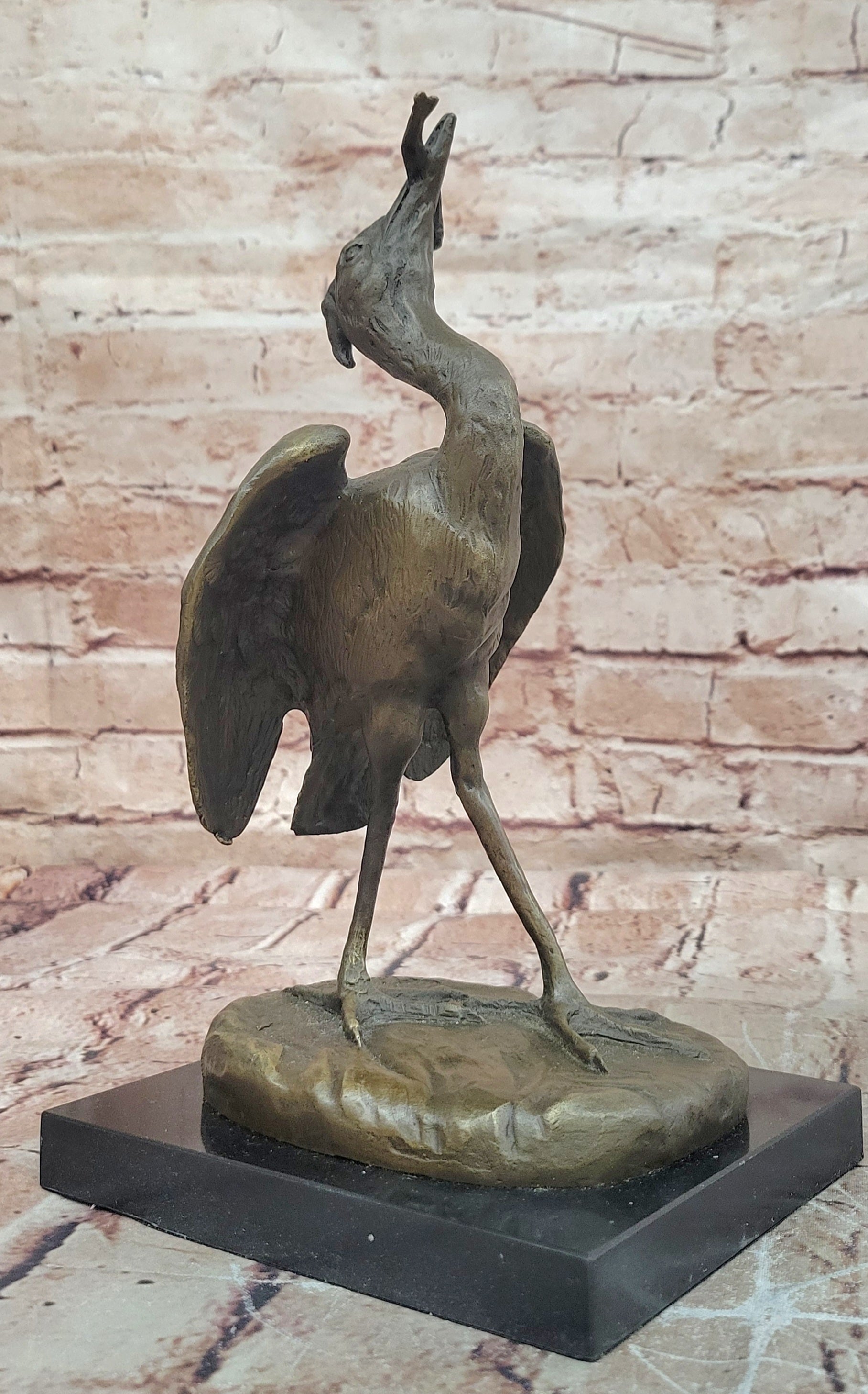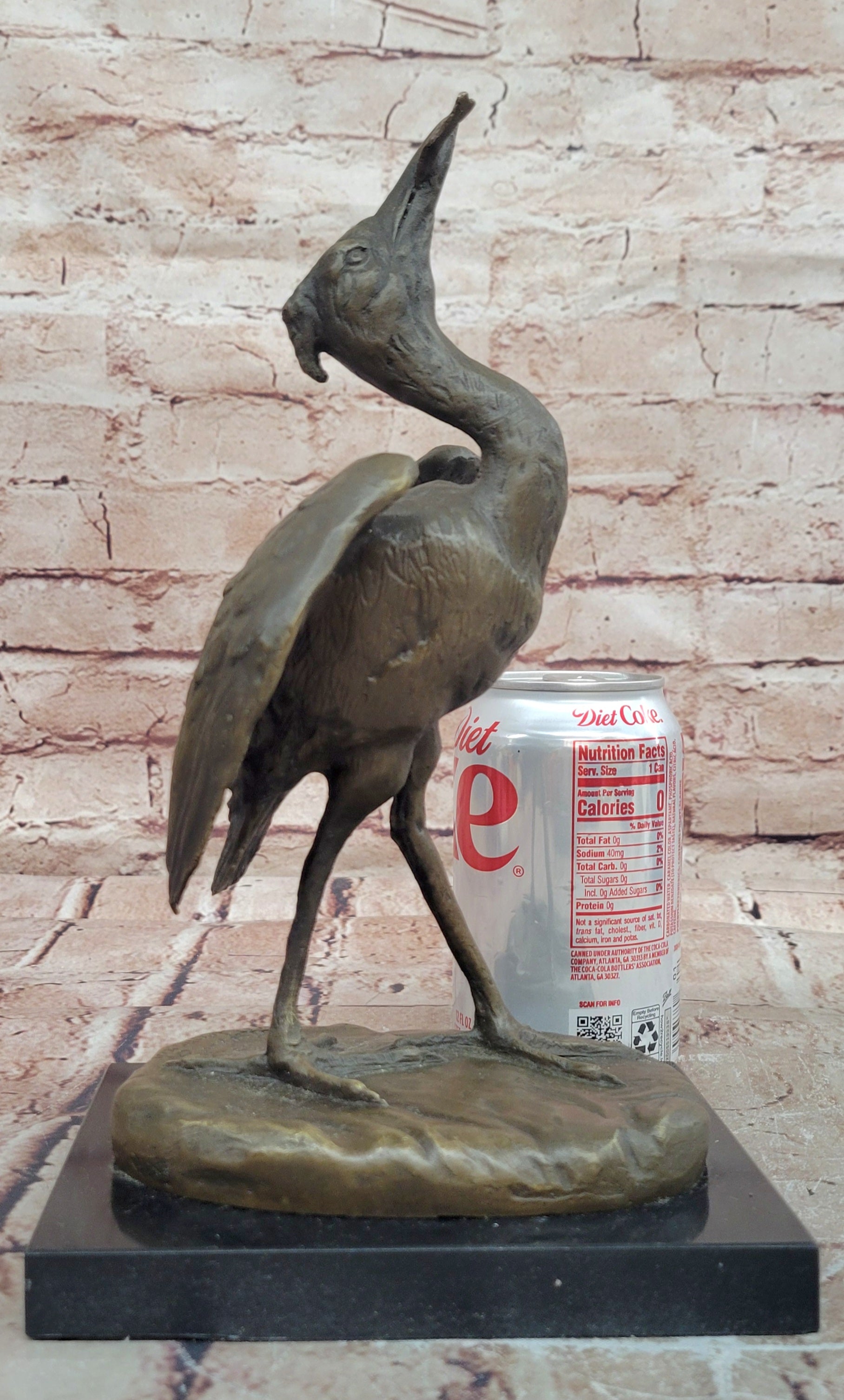 Hand made using the traditional lost wax casting method, this sculpture demonstrates fine craftsmanship and attention to detail. The rich brown patina enhances the texture and depth of the bronze, accentuating the feathers, posture, and expressive character of the stork. Each piece is individually finished, making it a unique work of art.