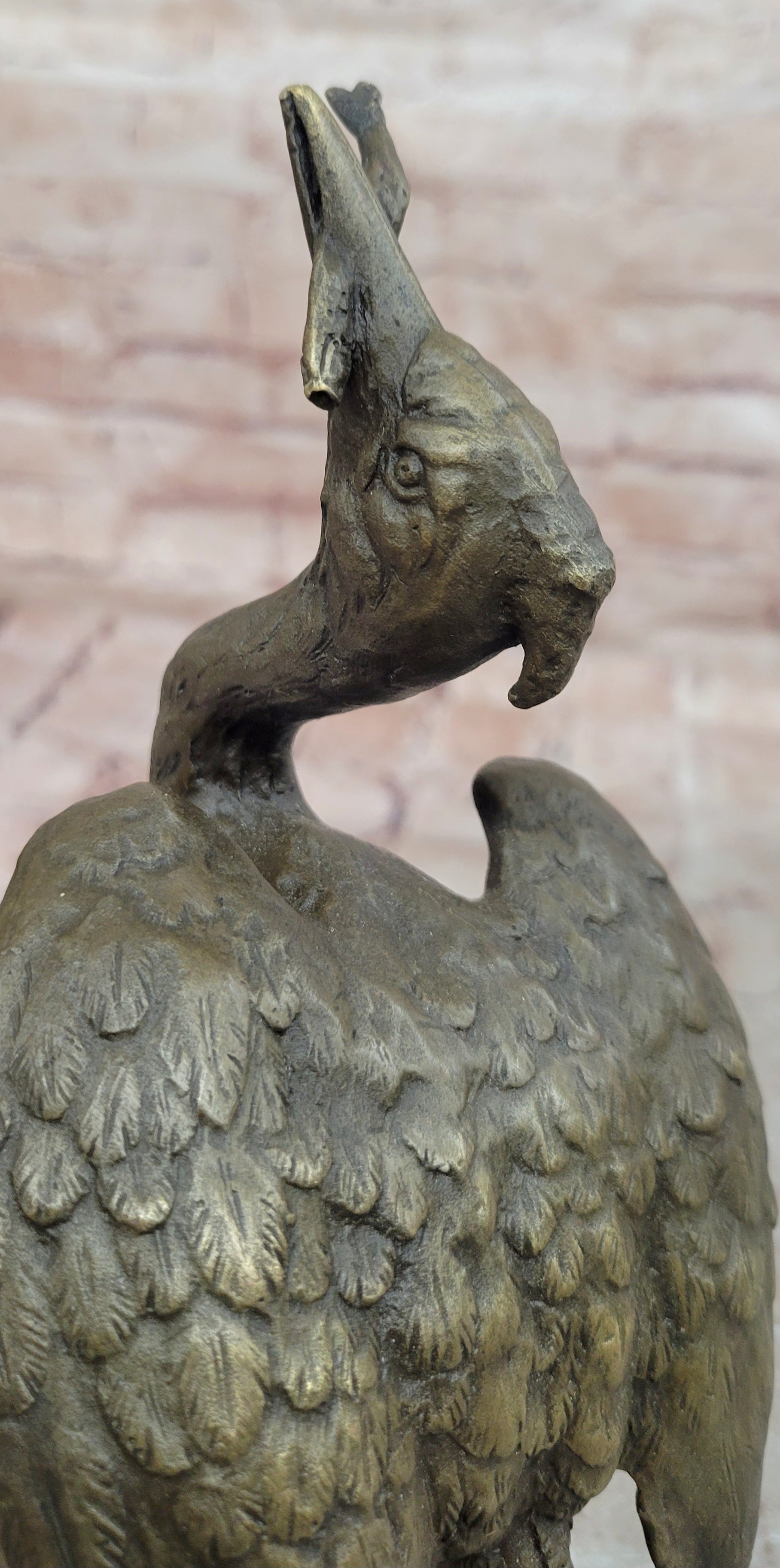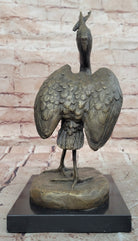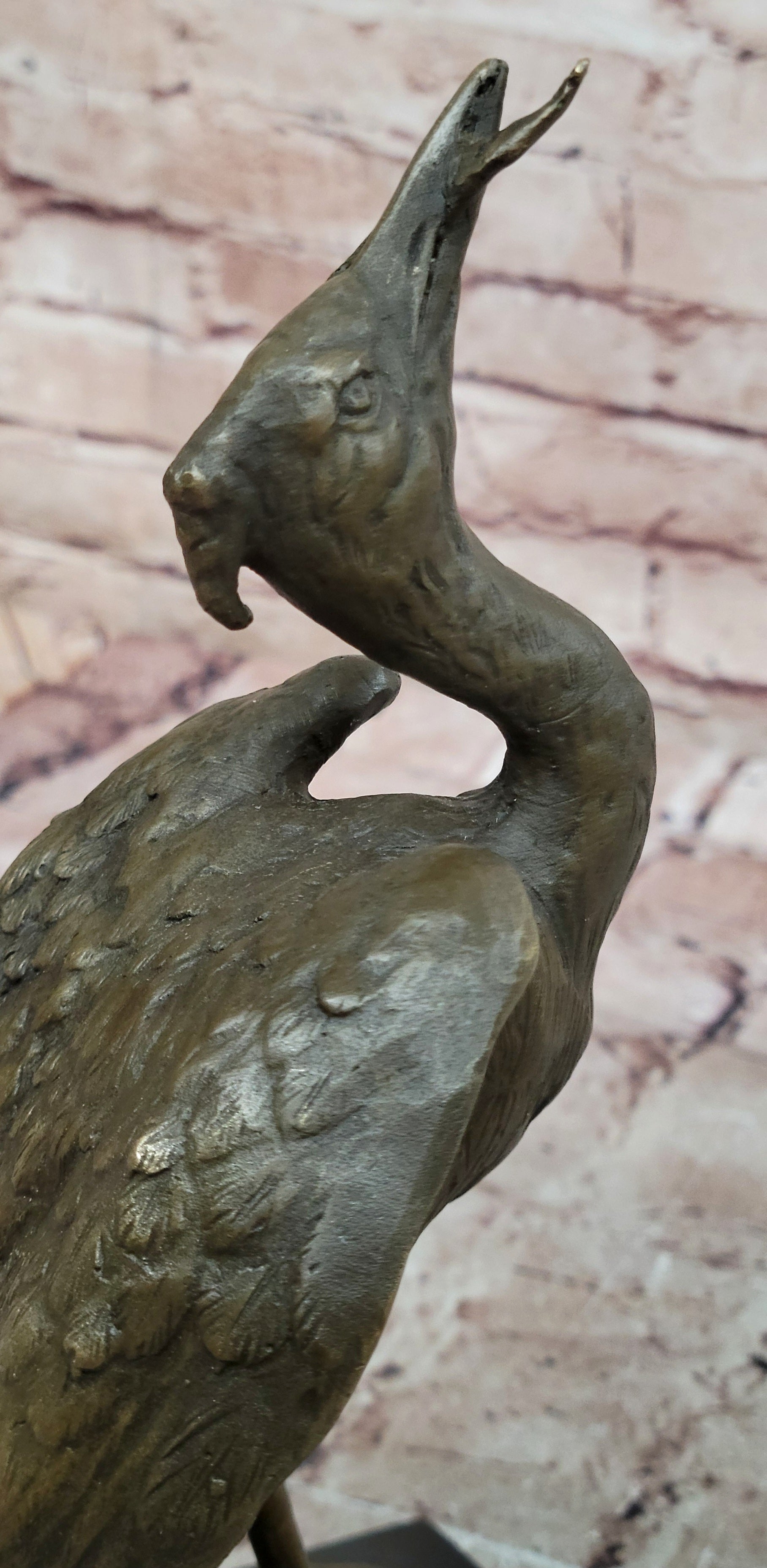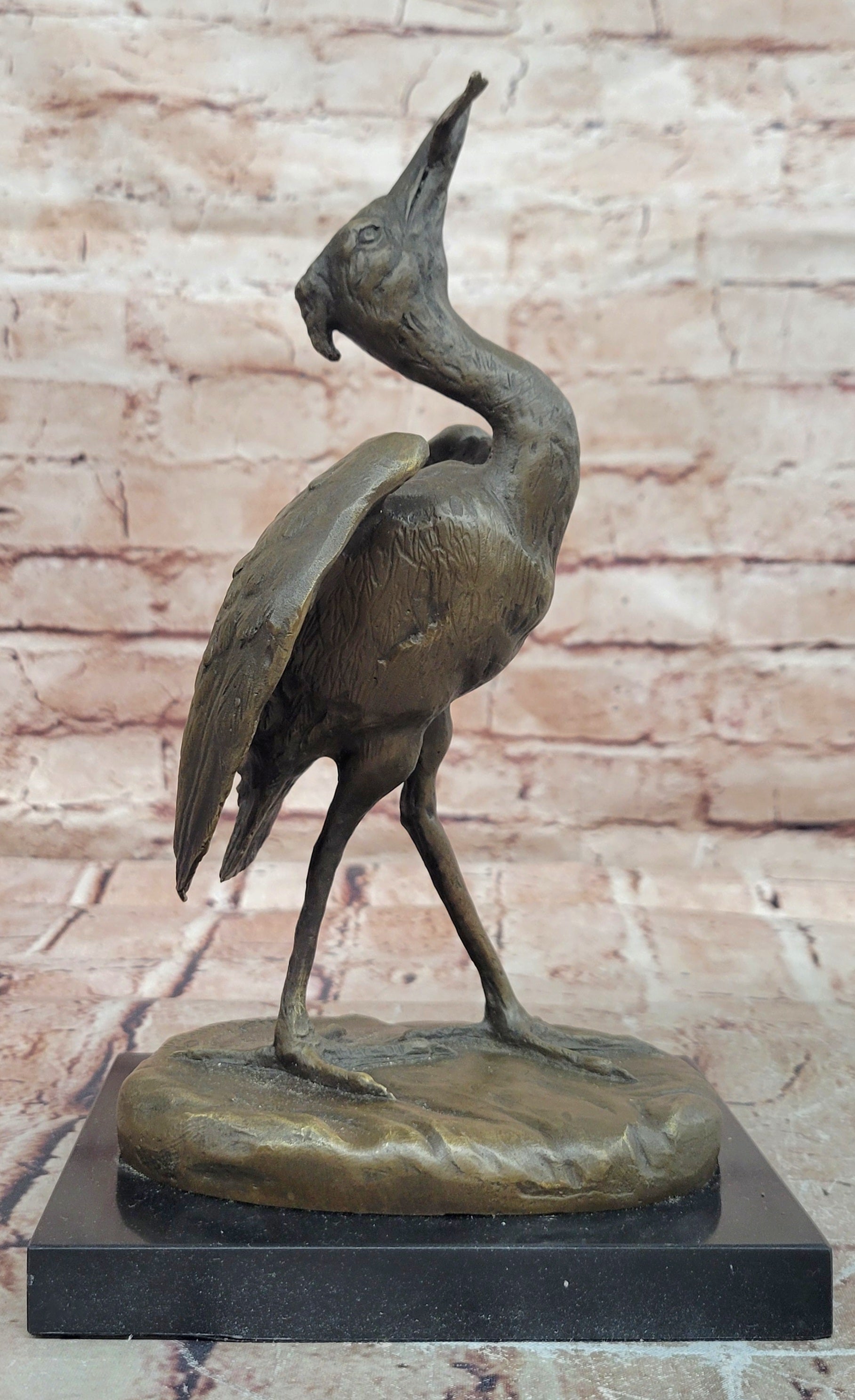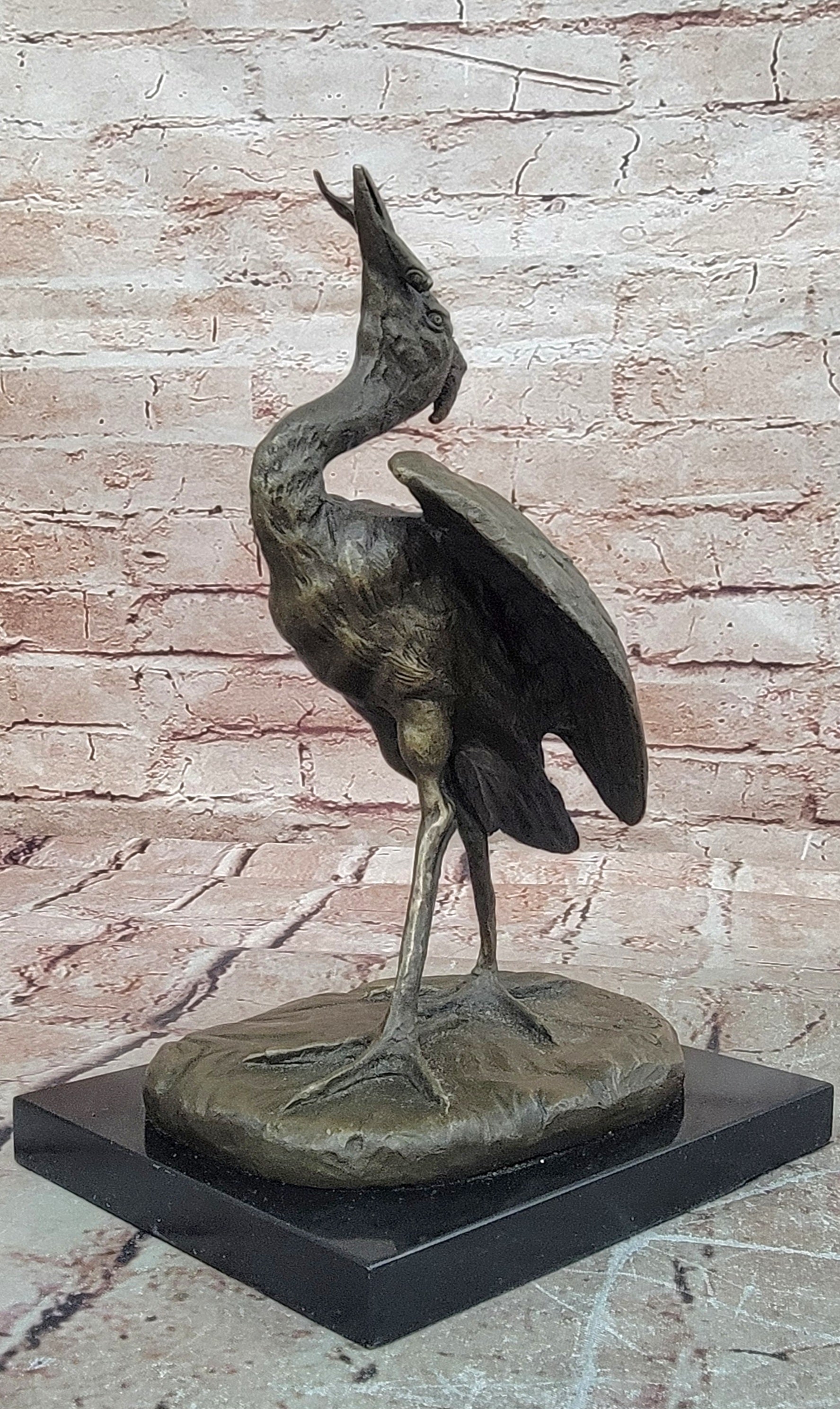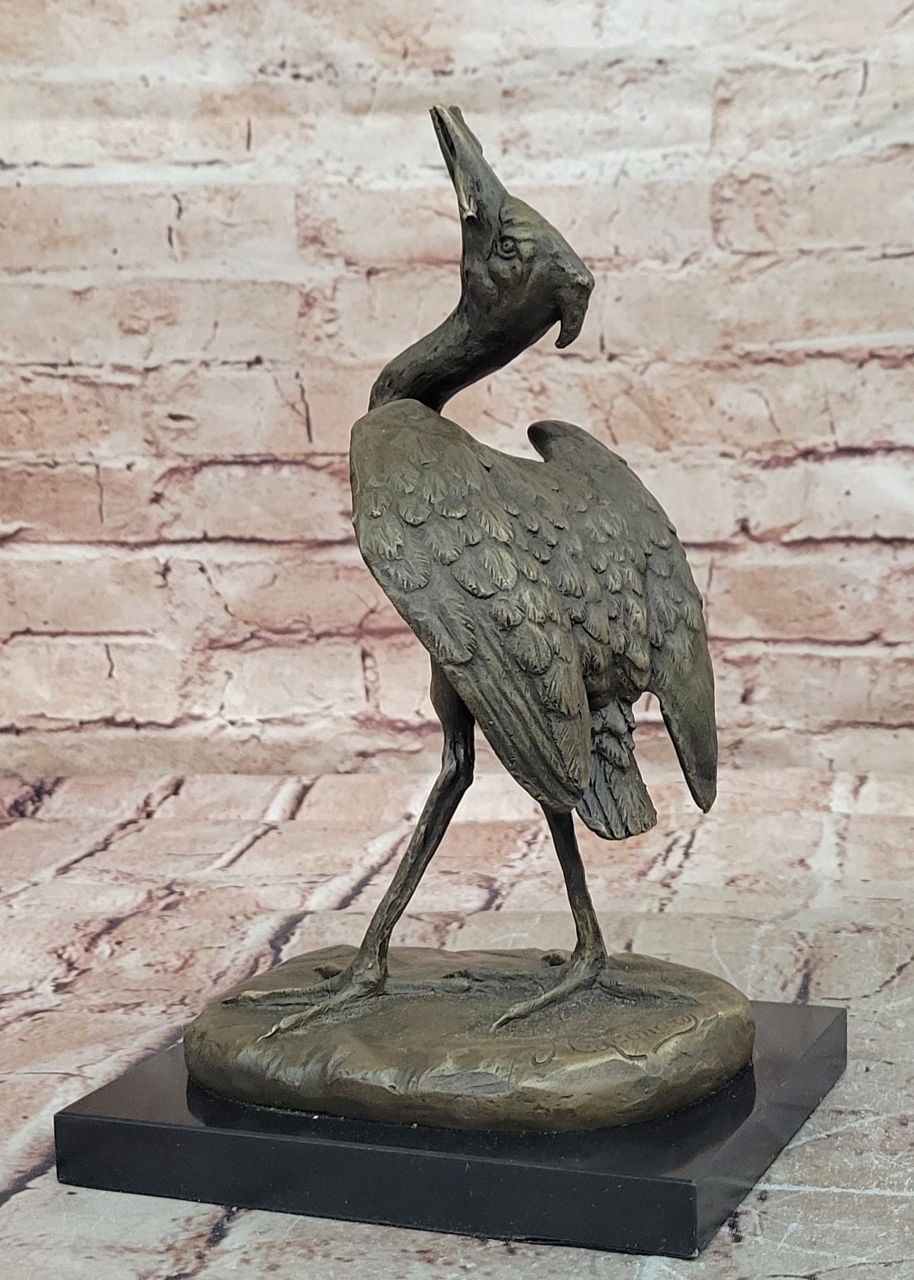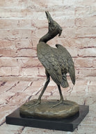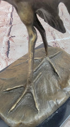 Bronze Crane Bird Sculpture with Upturned Head on Marble Base