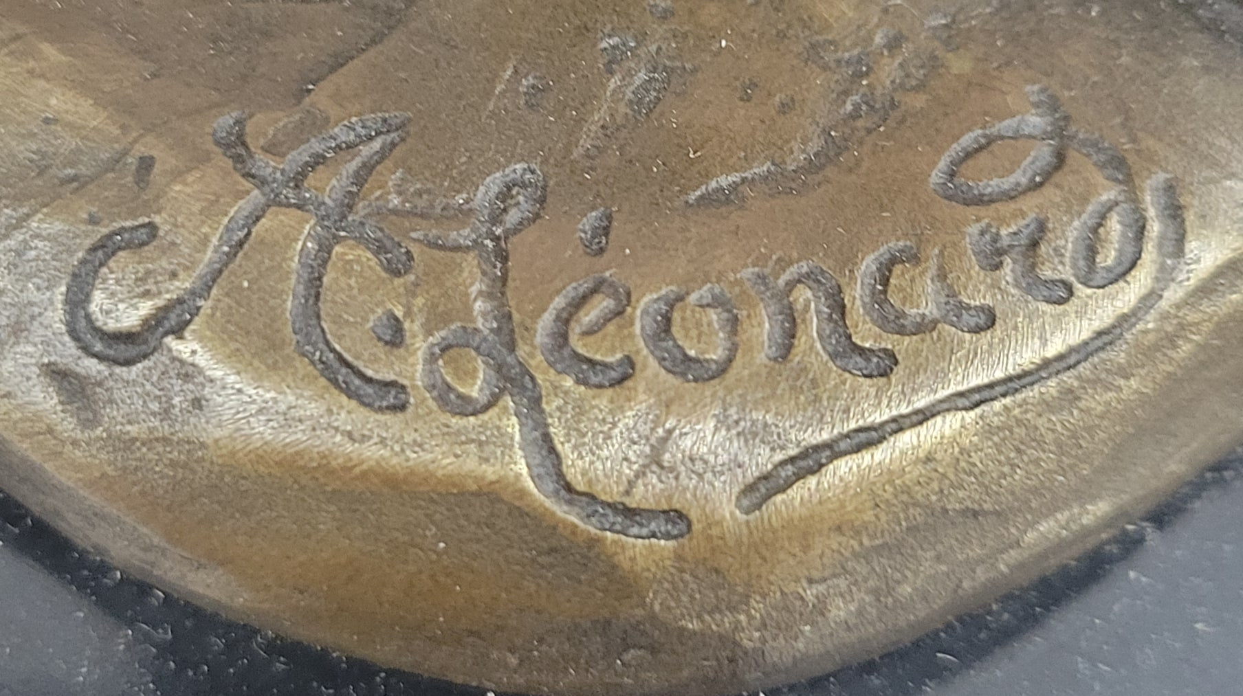 The sculpture is mounted on a polished black marble base, providing stability and a sophisticated contrast to the warm tones of the bronze. Signed by the artist, this bronze figurine is ideal for collectors of fine art, wildlife sculpture enthusiasts, or anyone seeking a timeless decorative accent for home or office décor.Bronze Dimensions with Marble Base: Height 10.5" X Width 6"