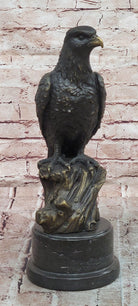 Bronze Eagle Sculpture Perched on Tree Stump with Detailed Feathers