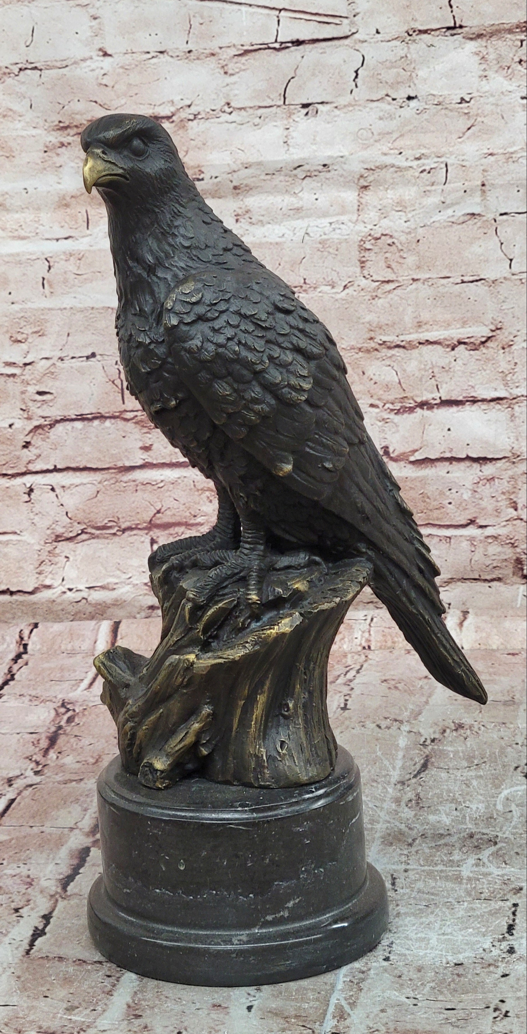 Hand made using the traditional lost-wax casting method, this sculpture is crafted from 100% genuine bronze and finished with a dark brown patina that enhances the depth and texture of the bird’s form. The careful attention to detail highlights the layered feathers, powerful musculature, and natural stance, reflecting exceptional craftsmanship and artistic skill. The sculpture is signed by artist Mario Nick, adding authenticity and collectible value.