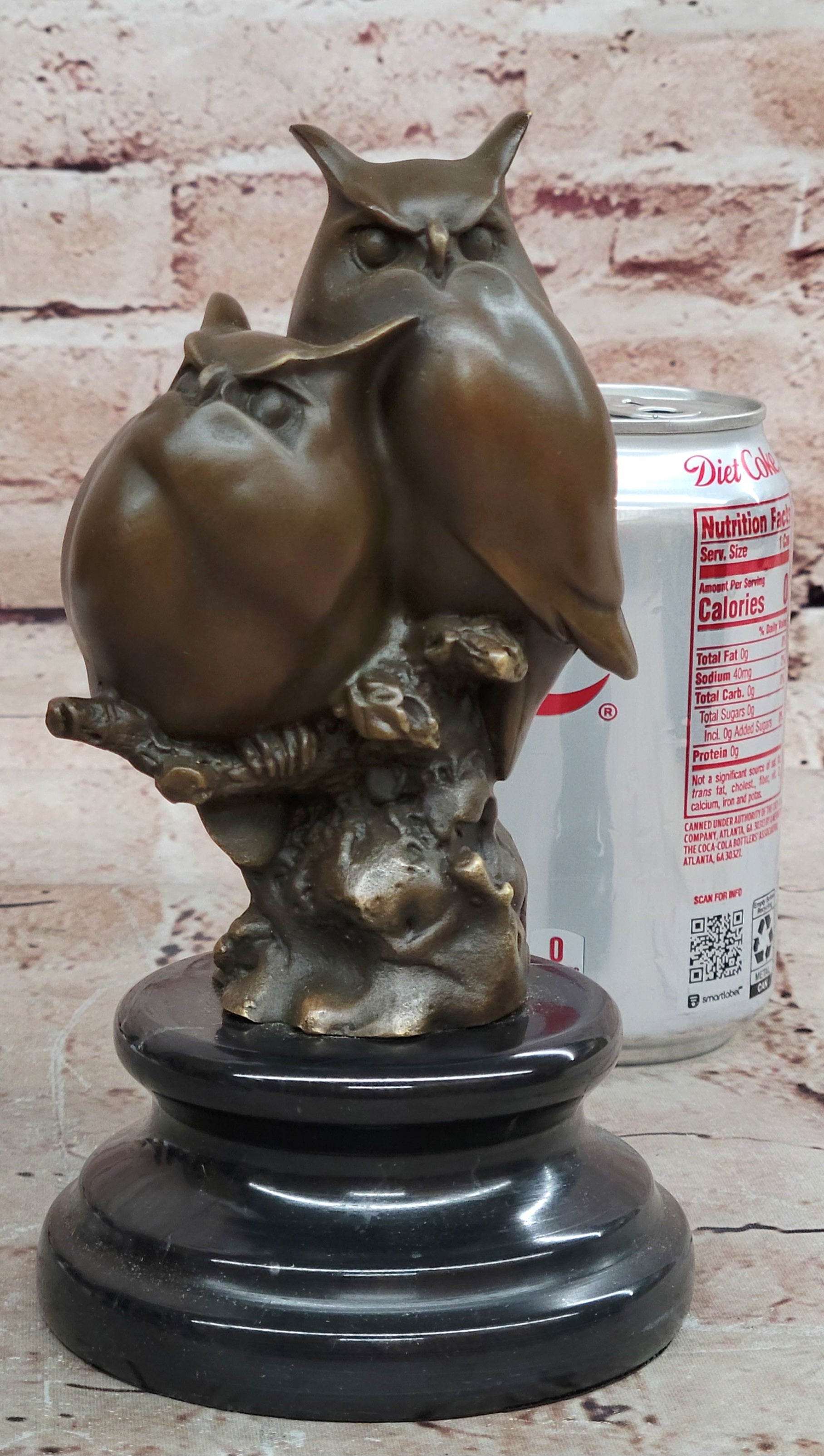 This signed original Milo bronze sculpture of two owls beautifully symbolizes wisdom, knowledge, and watchful intelligence. The paired owls are rendered with expressive detail and balanced composition, creating a striking figurine that conveys both harmony and quiet strength. Their attentive poses make this artwork a meaningful decorative accent and a timeless symbol of insight.