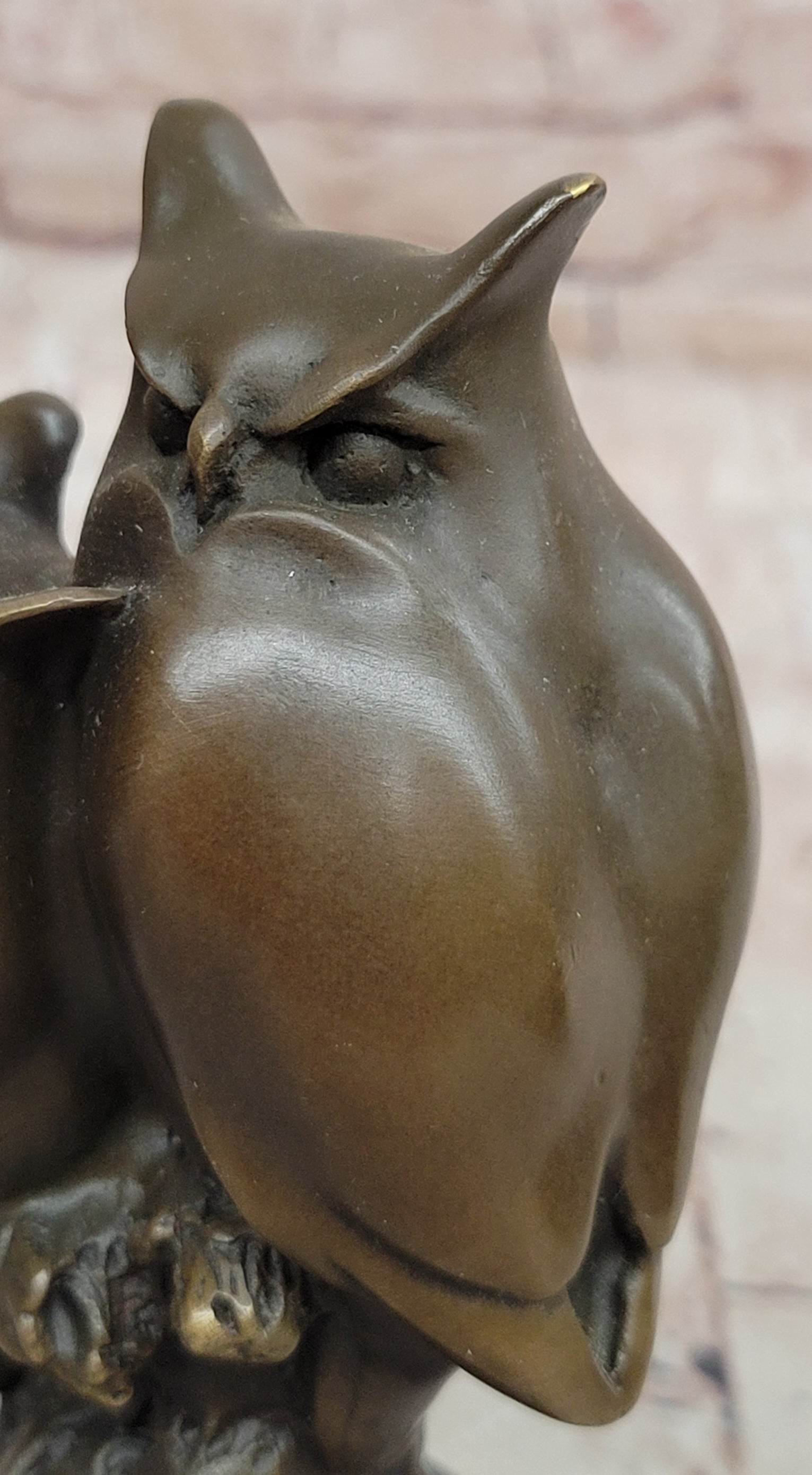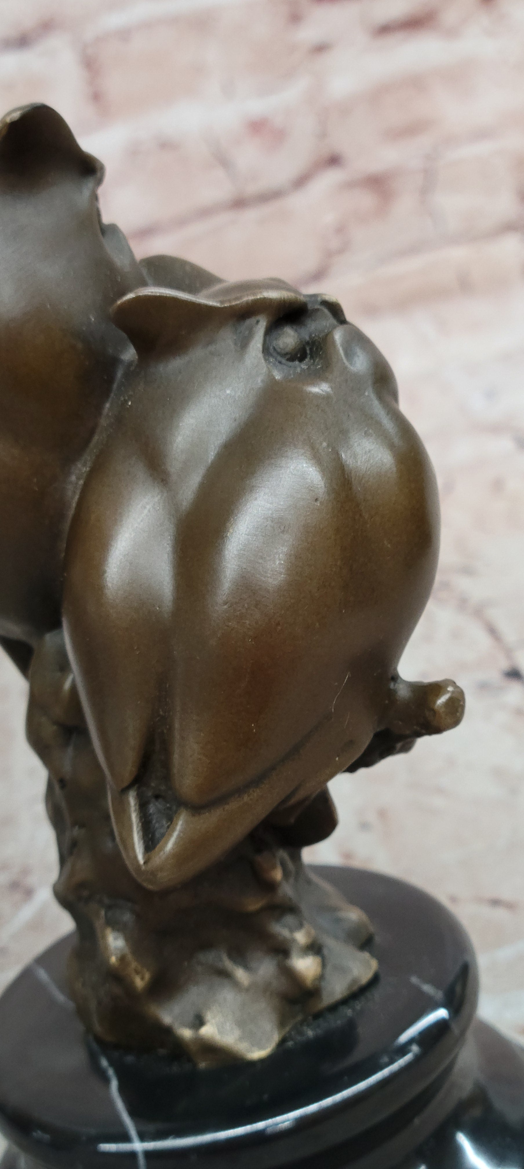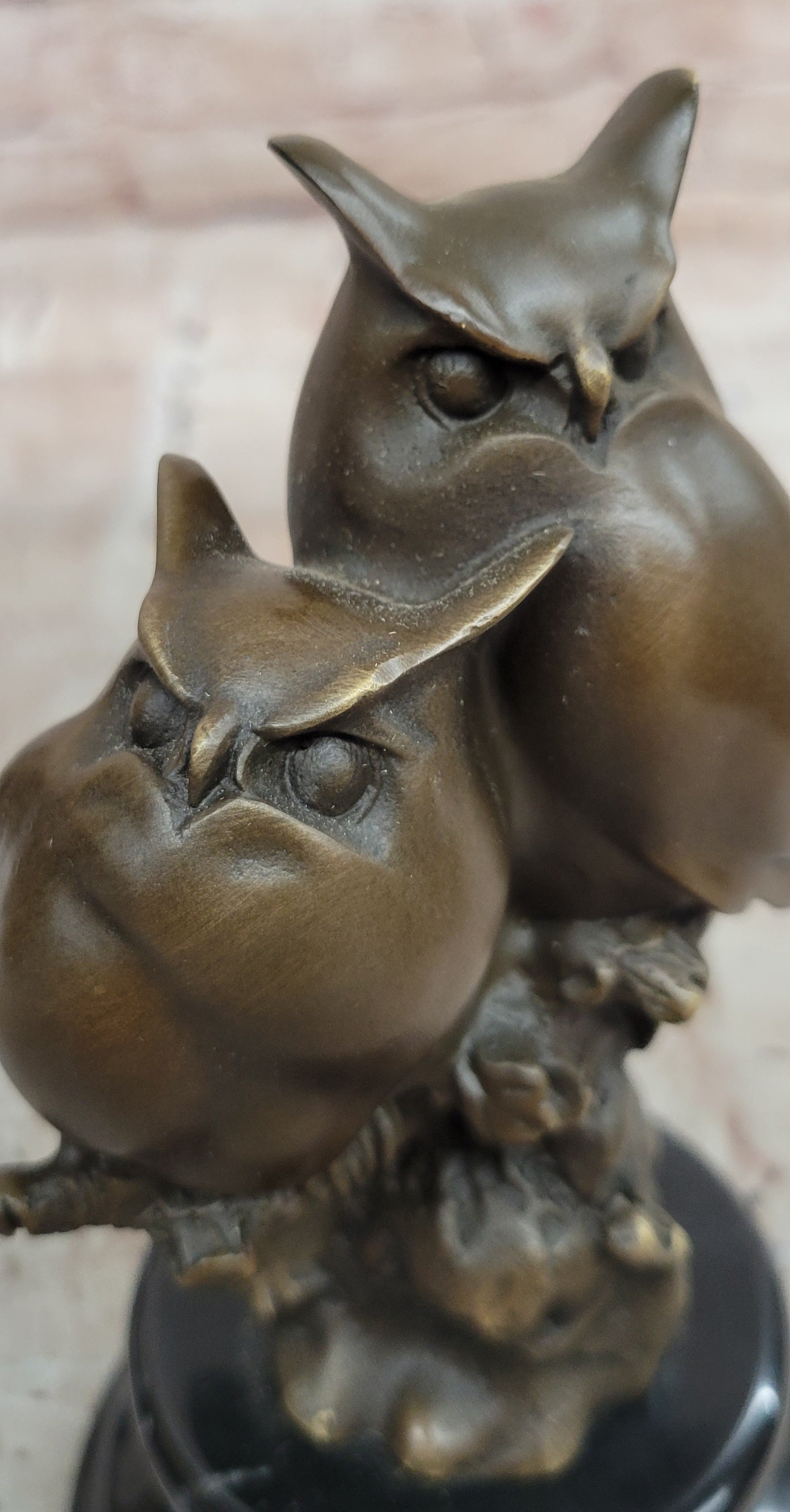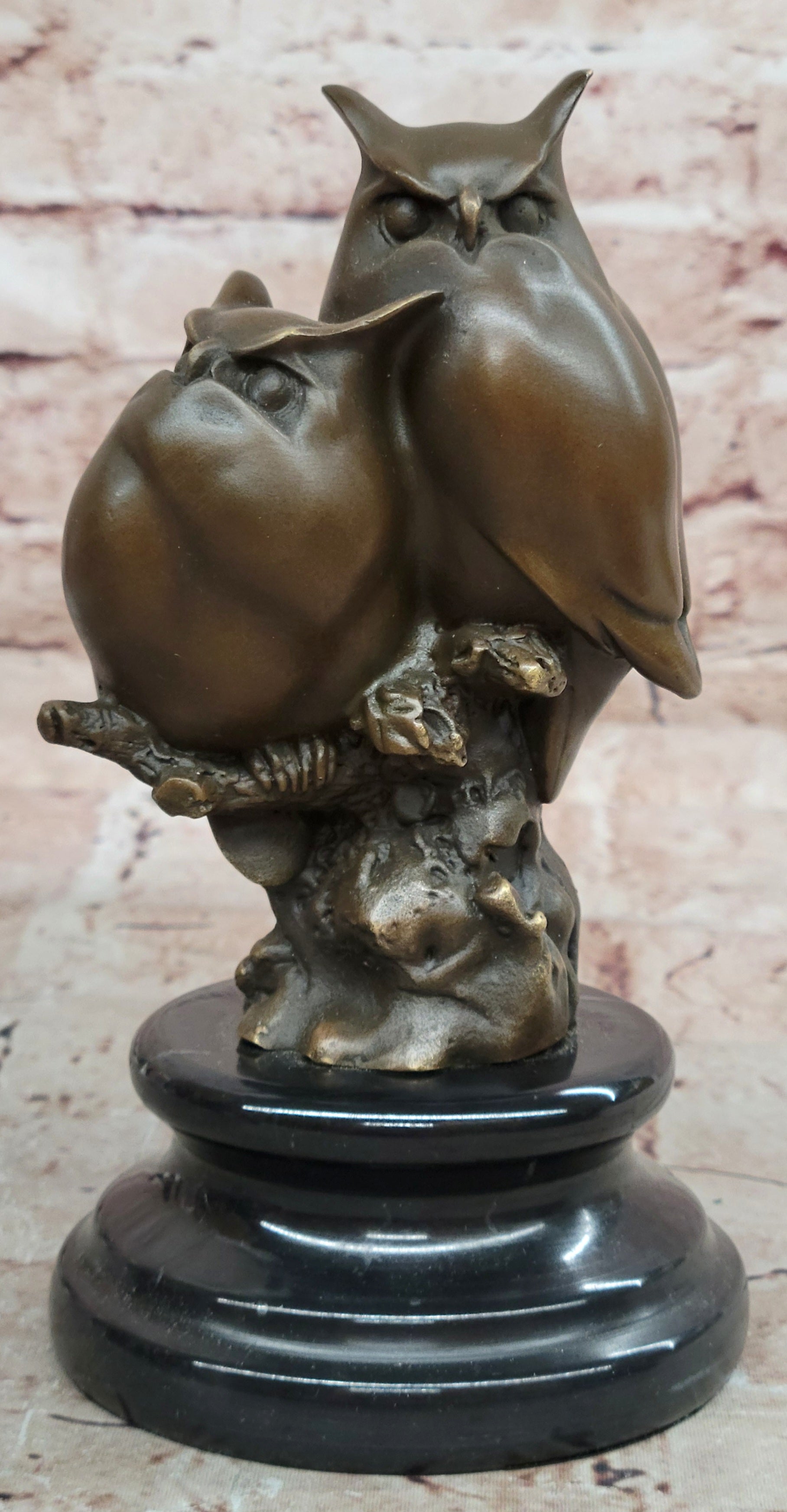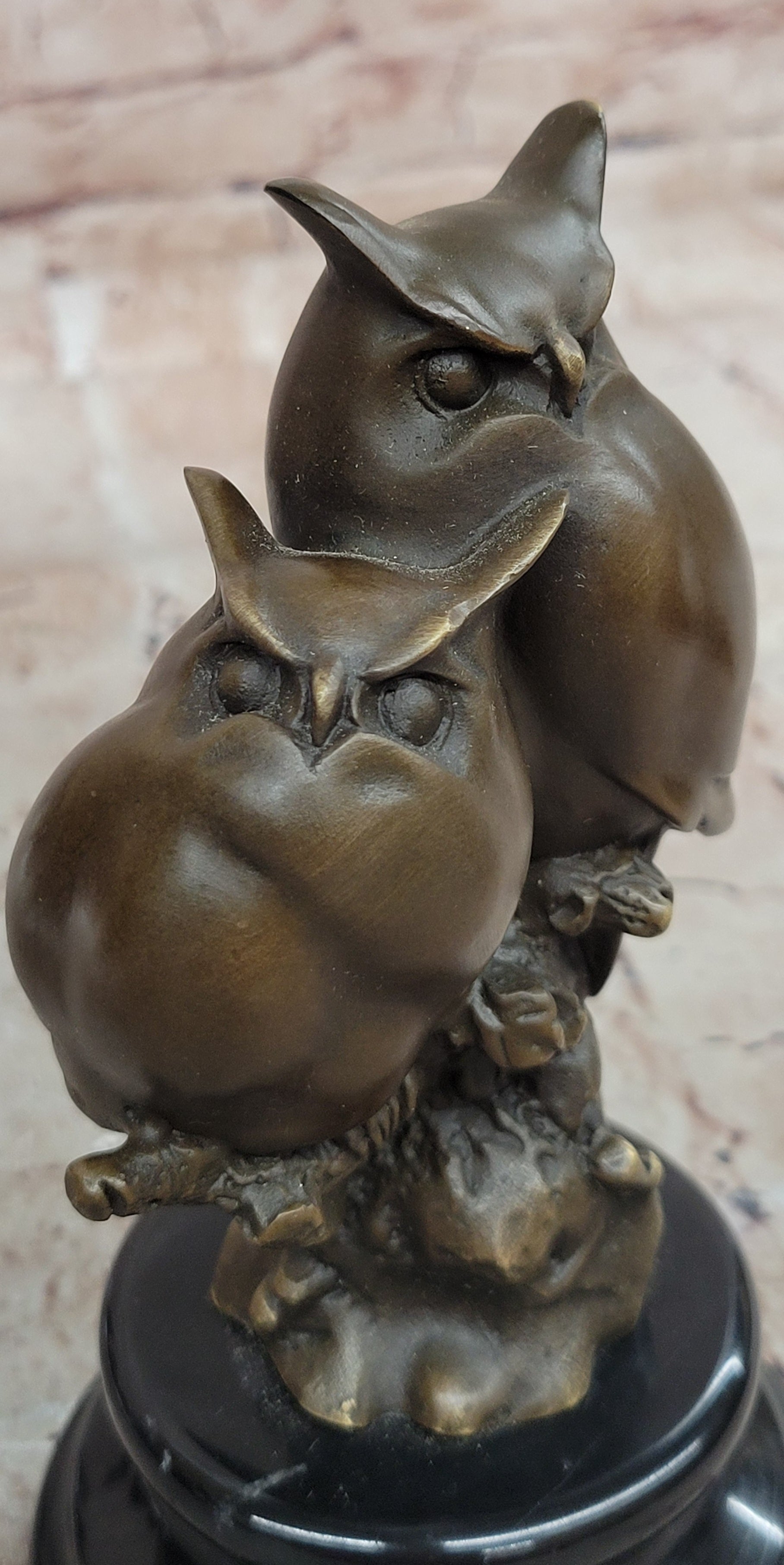 Bronze Pair of Owls Sculpture – Art Deco Bird Statue on Marble Base