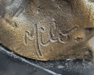 Signed by renowned Portuguese artist Miguel Lopez, also known as Milo, this sculpture is a collectible work of art ideal for home or office décor. Whether displayed on a desk, shelf, or mantel, it adds sophistication, symbolism, and enduring artistic value to any space.Bronze Dimensions with Marble Base: Height 7.5" X Width 4"