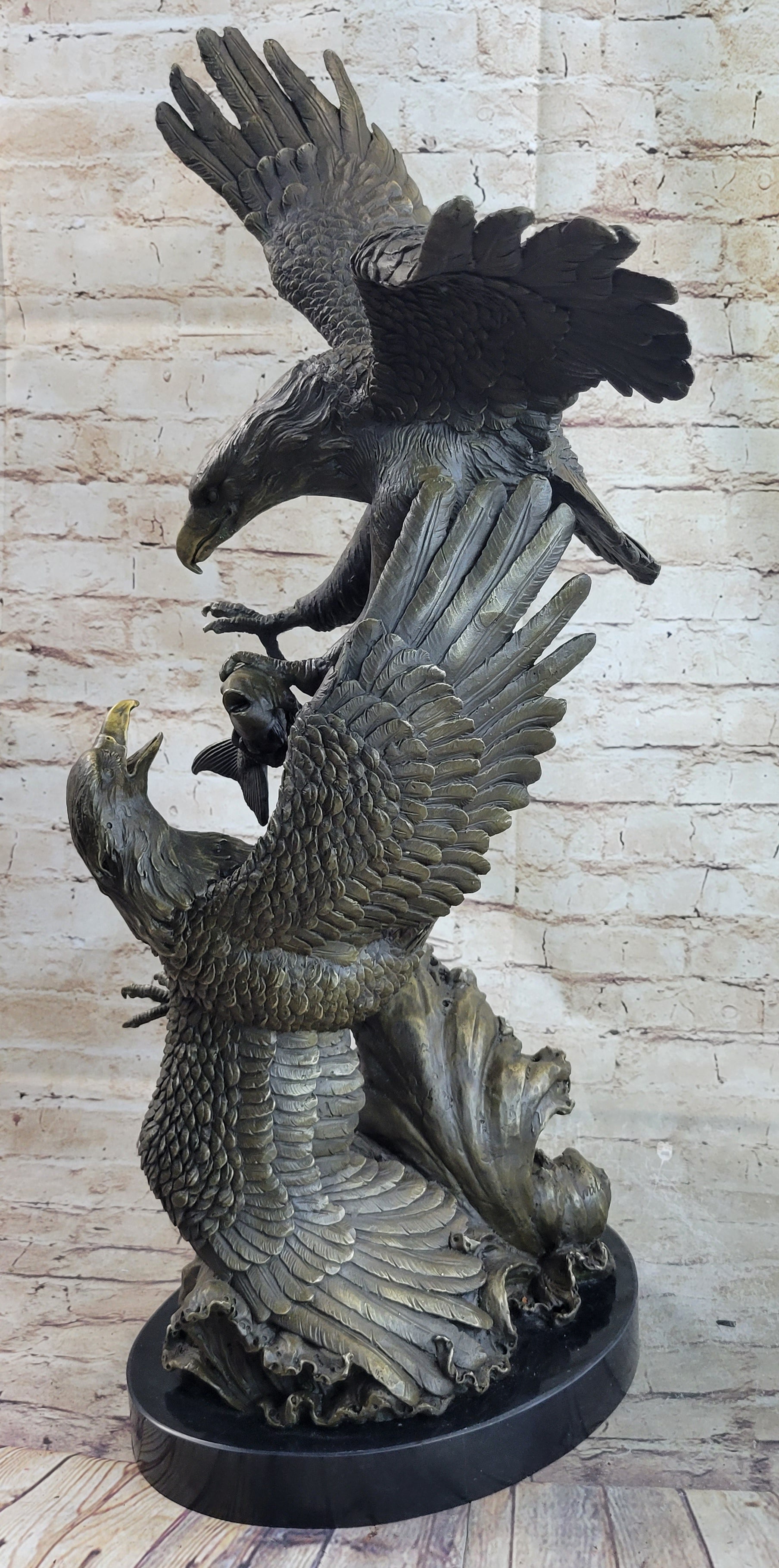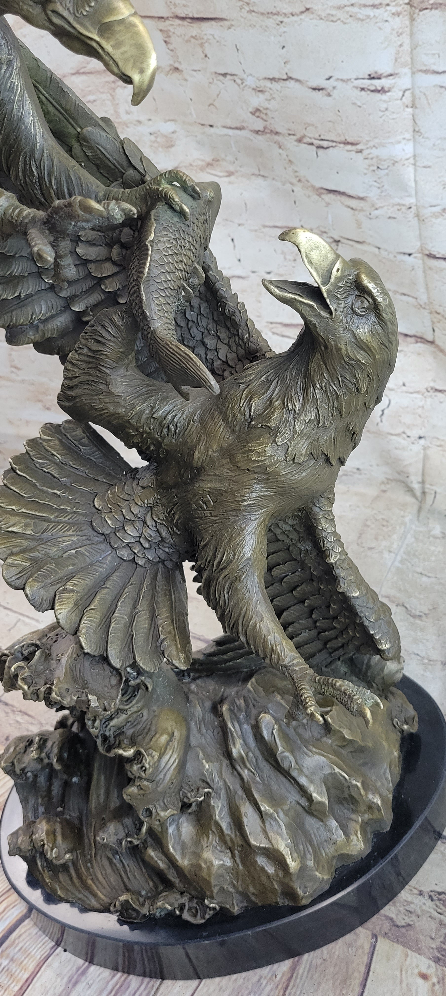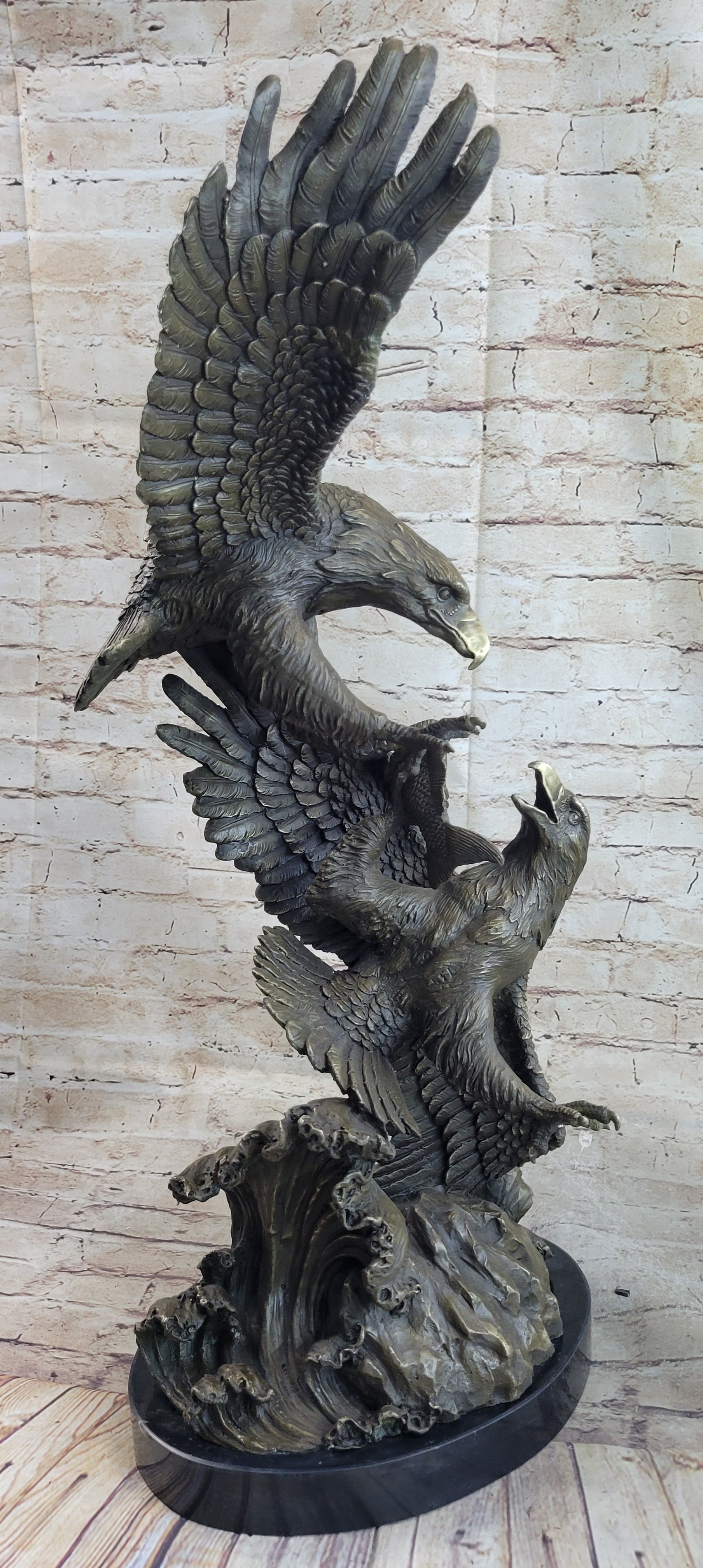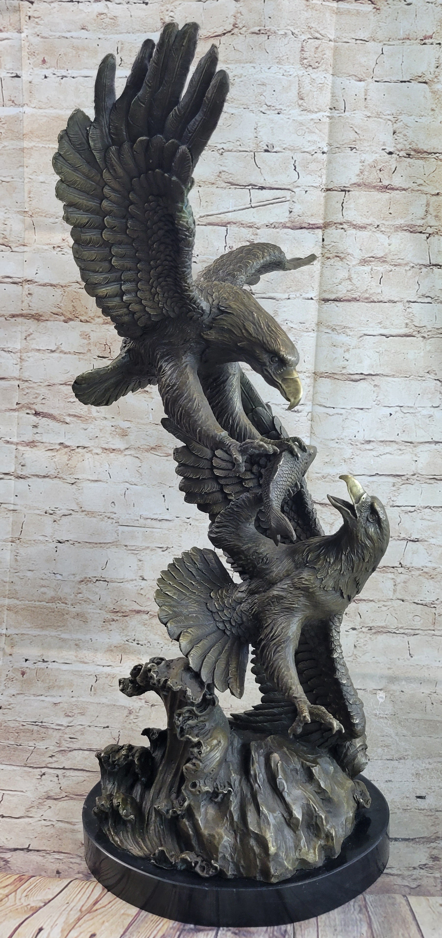 Fighting Eagles Birds Bronze Statue Sculpture Figure Signed Original Marble Base