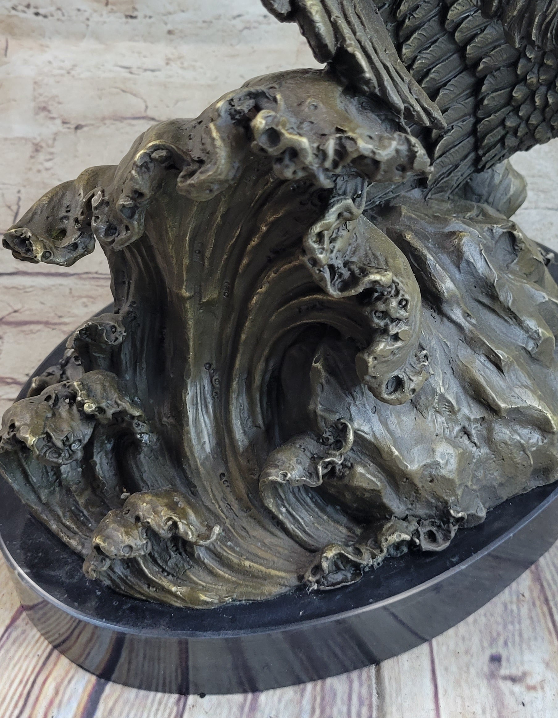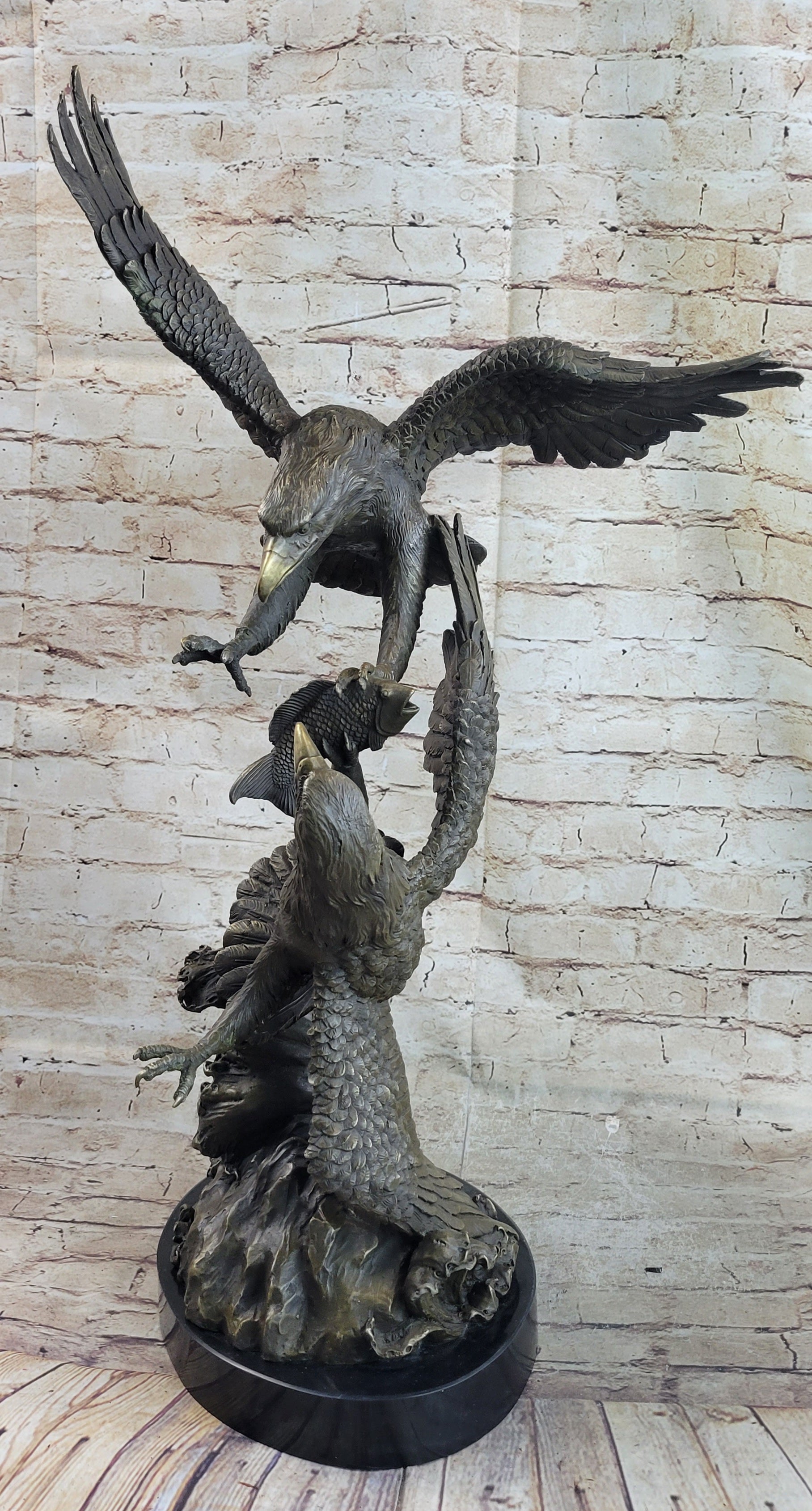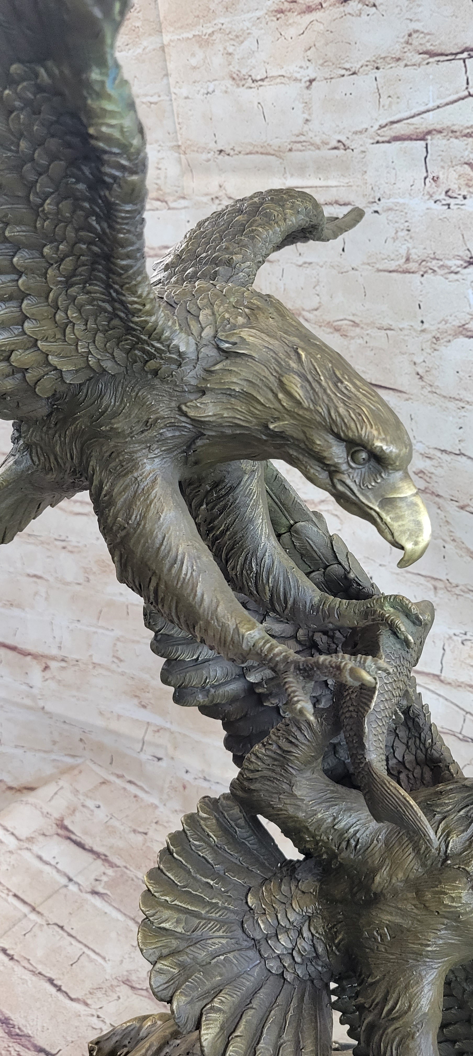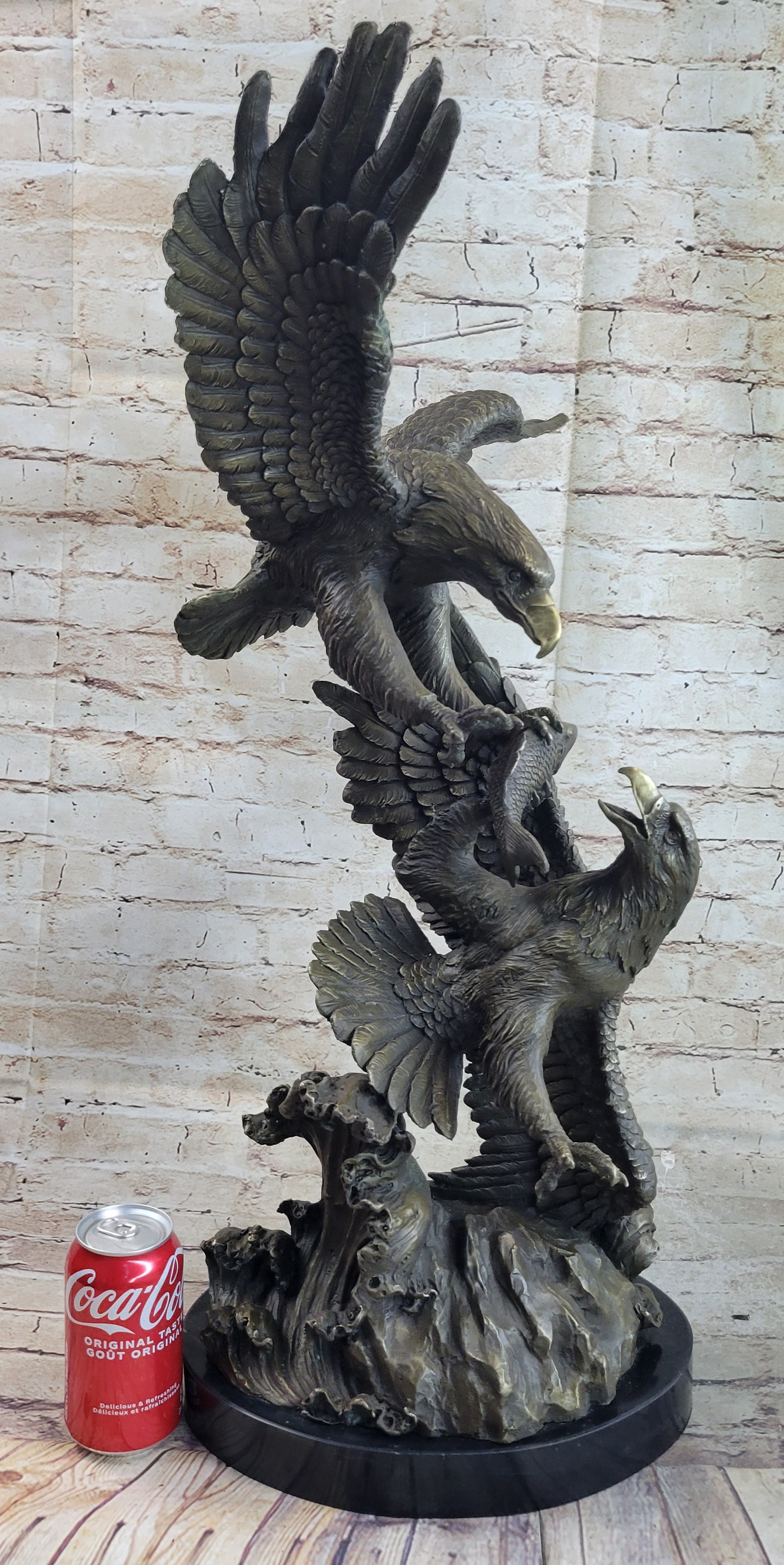 Fighting Eagles Birds Bronze Statue Sculpture Figure Signed Original Marble Base