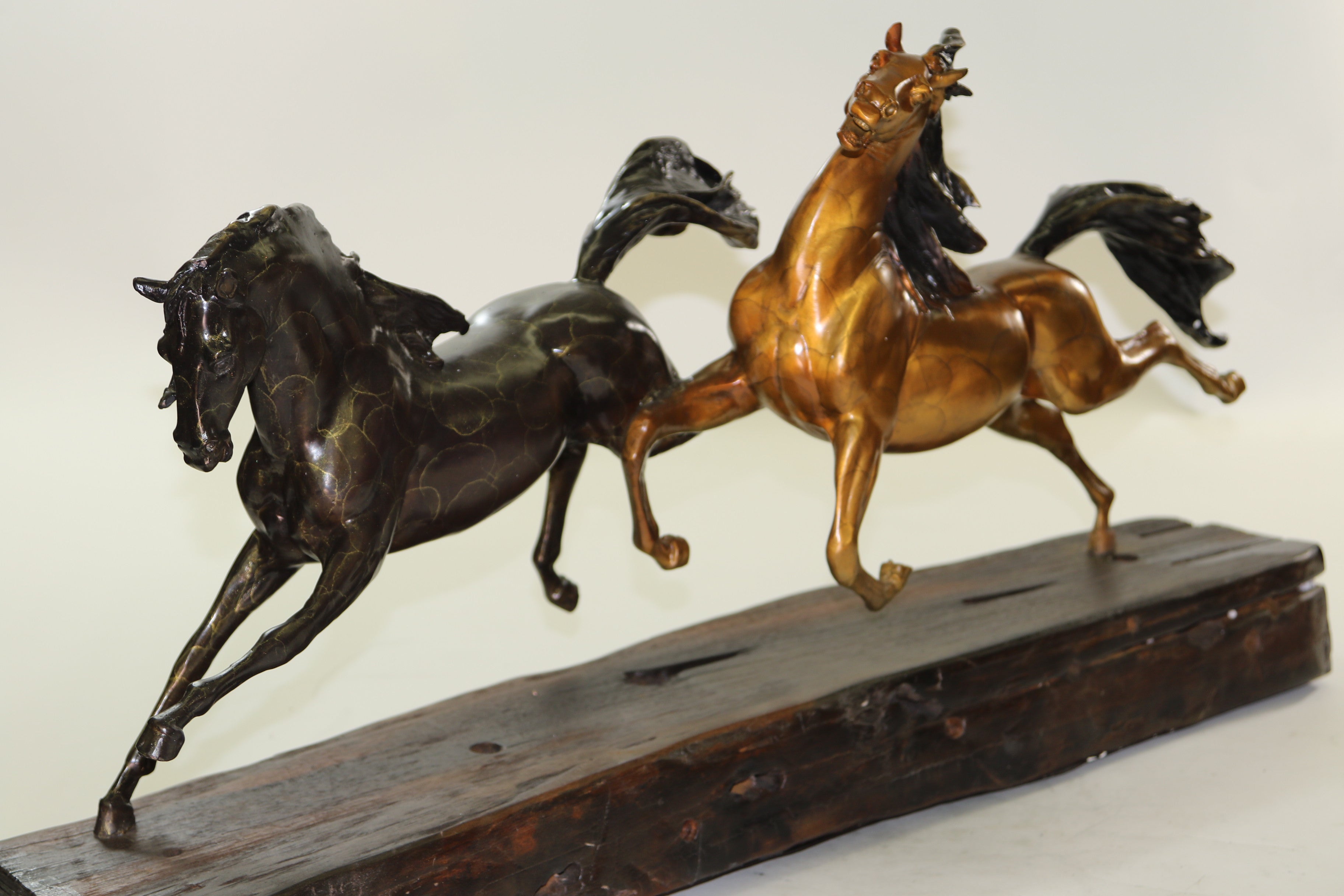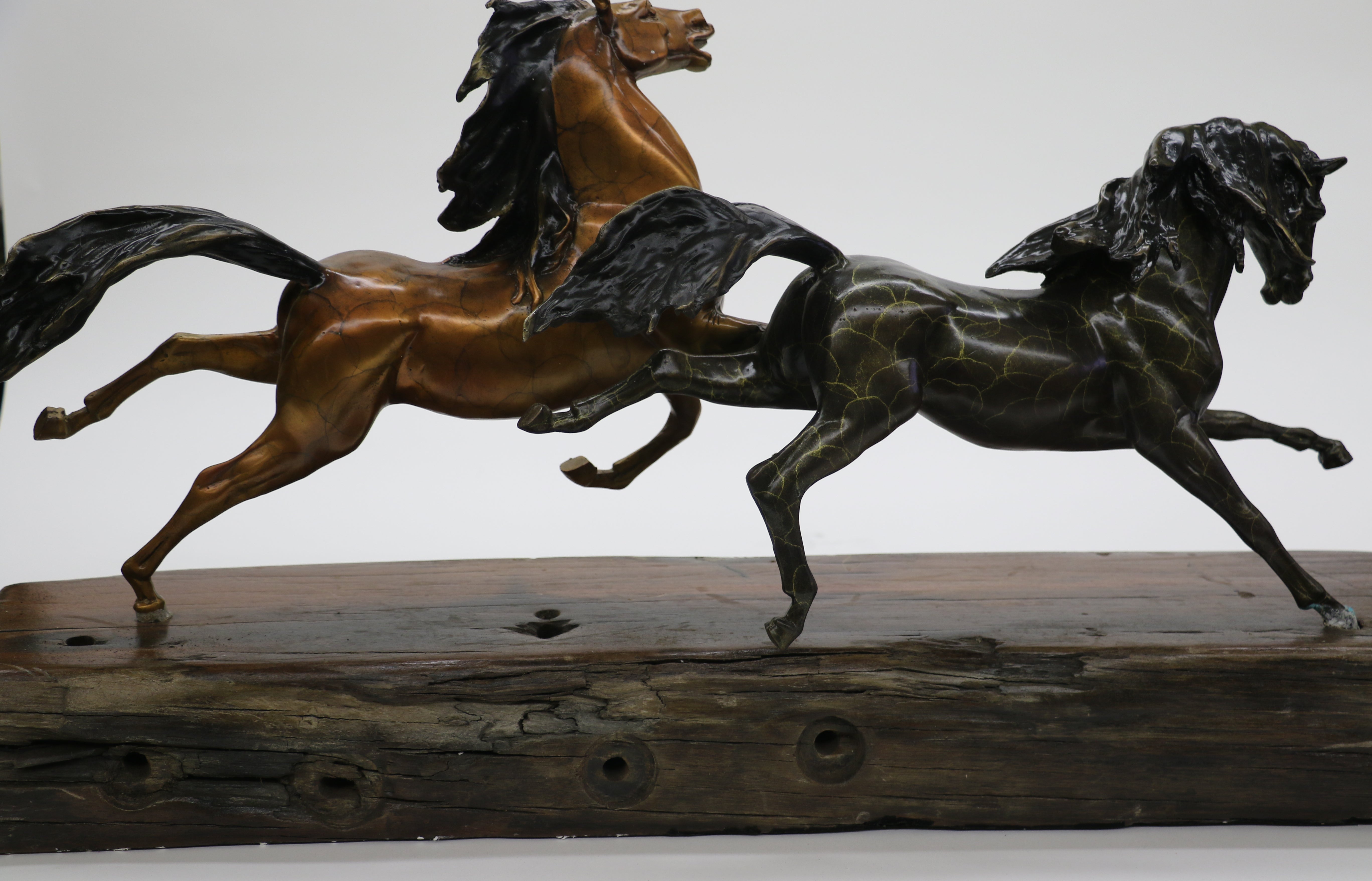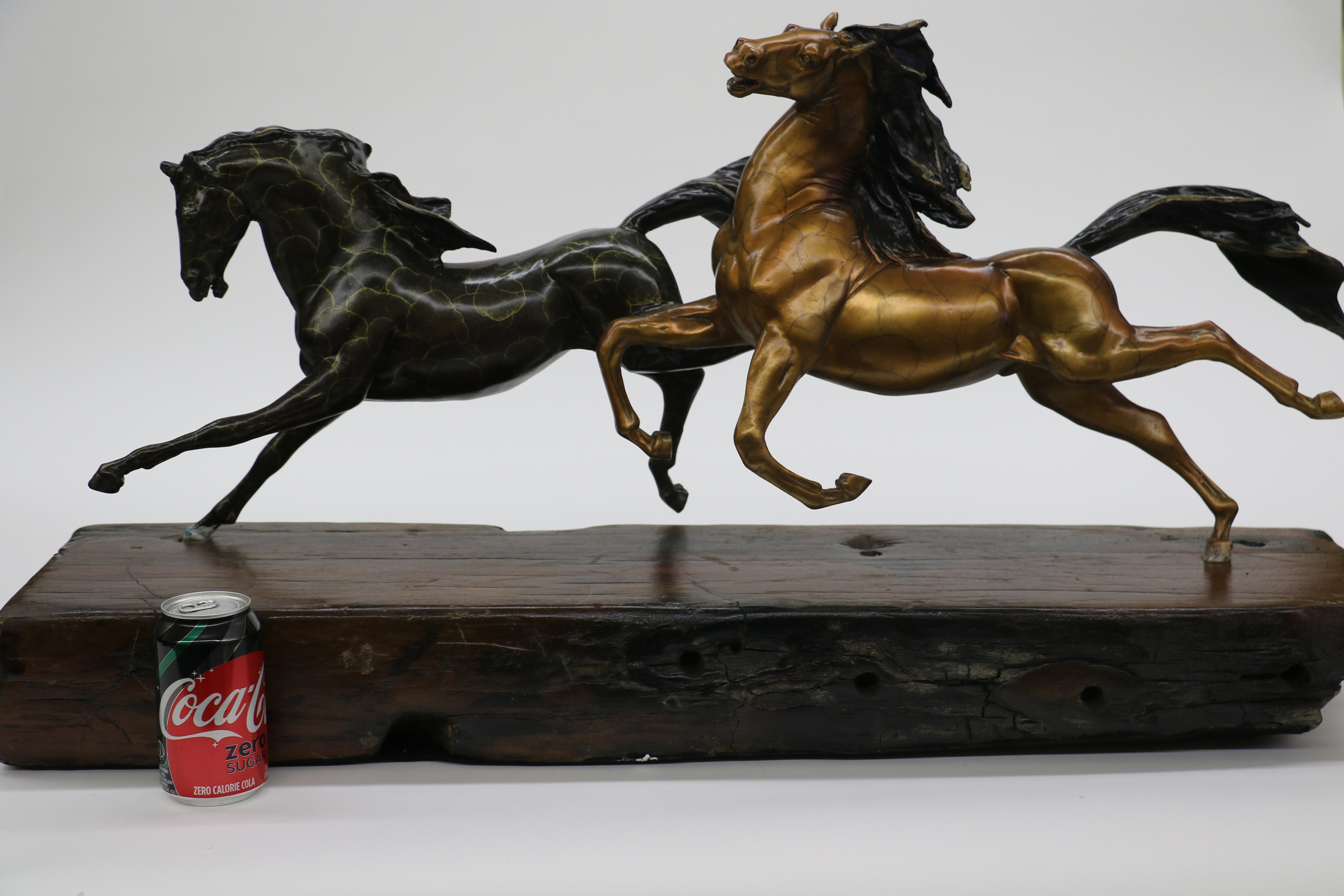 Limited Edition Two Galloping Horses Hand Painted Museum Quality Bronze Artwork