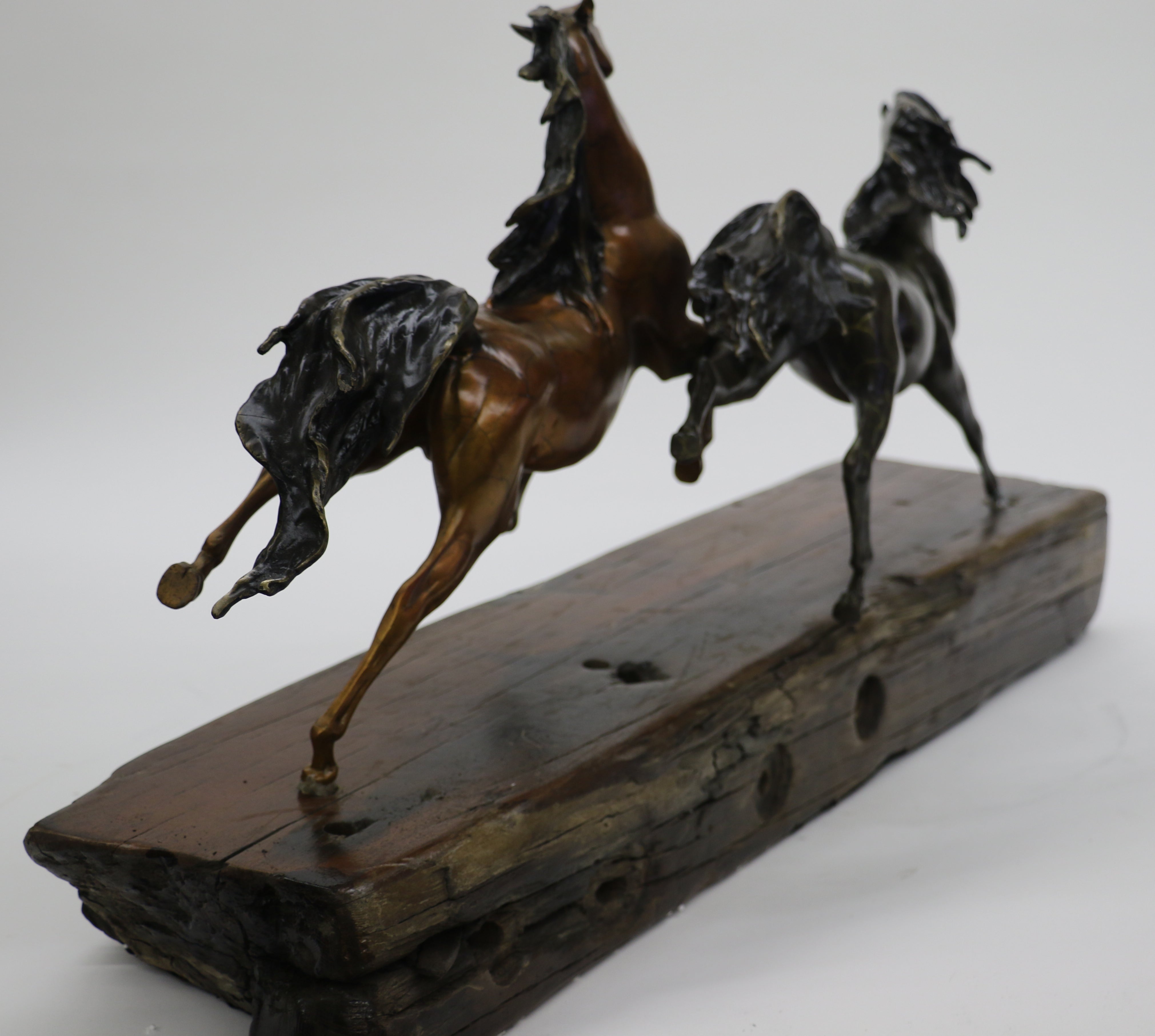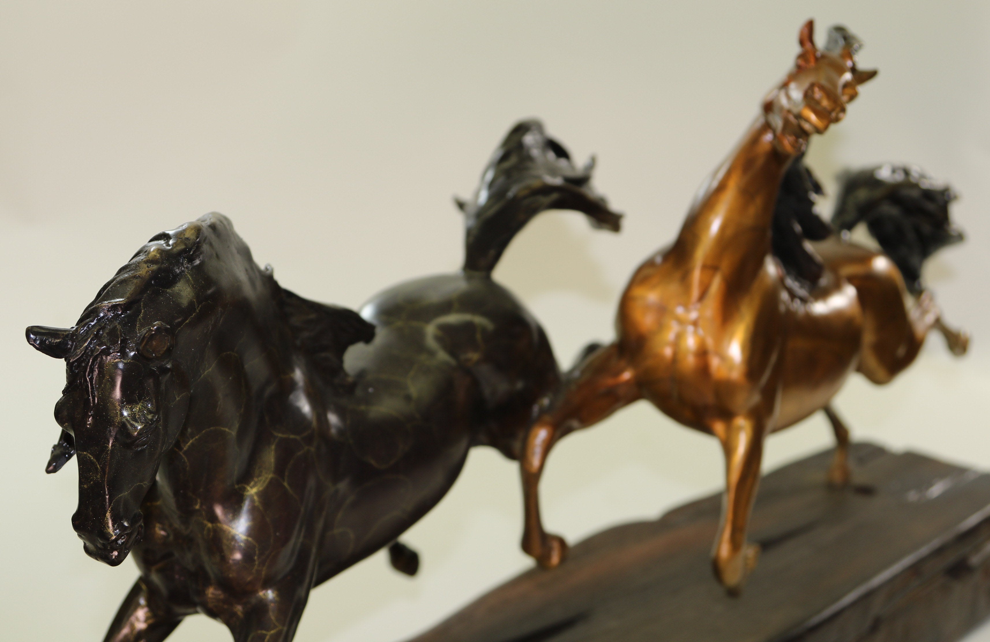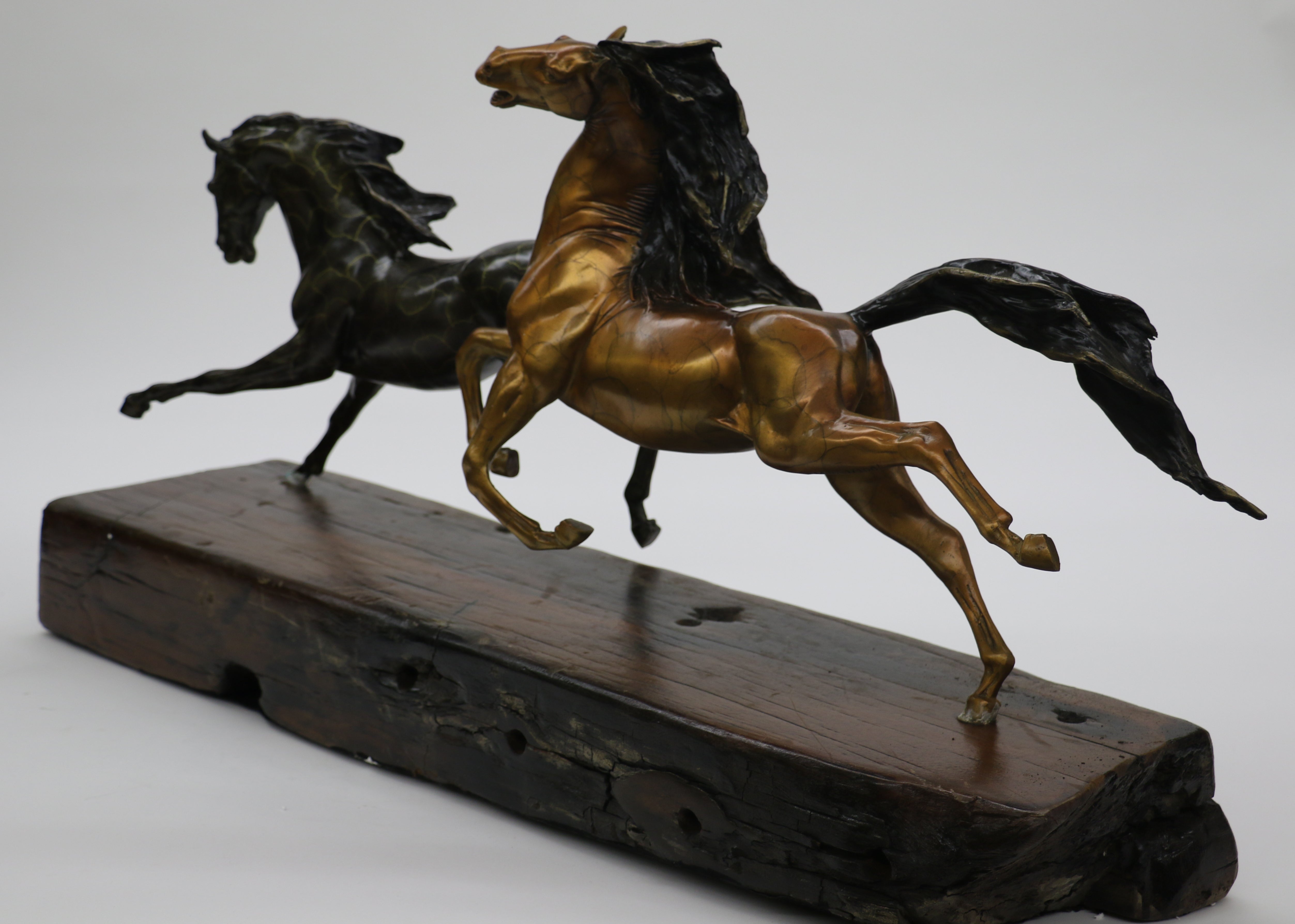 Limited Edition Two Galloping Horses Hand Painted Museum Quality Bronze Artwork