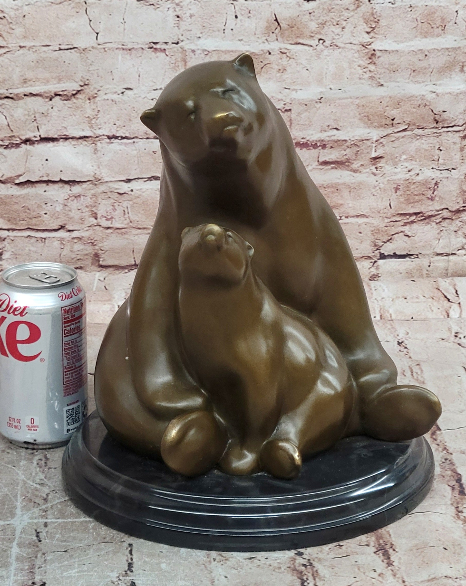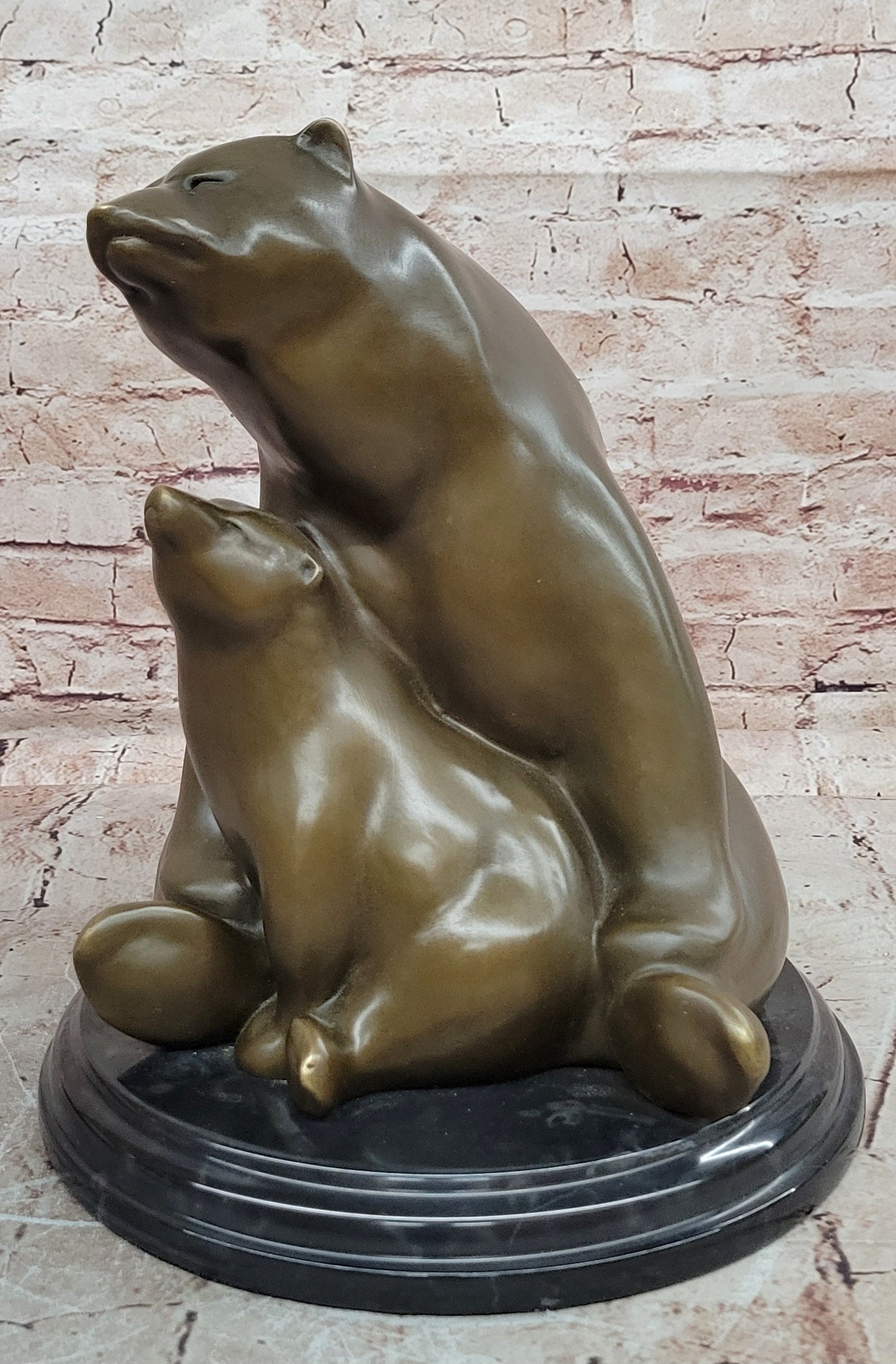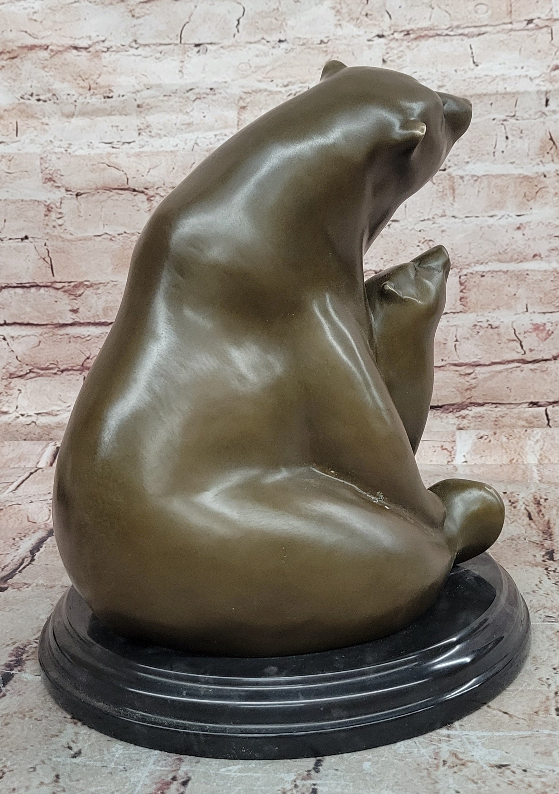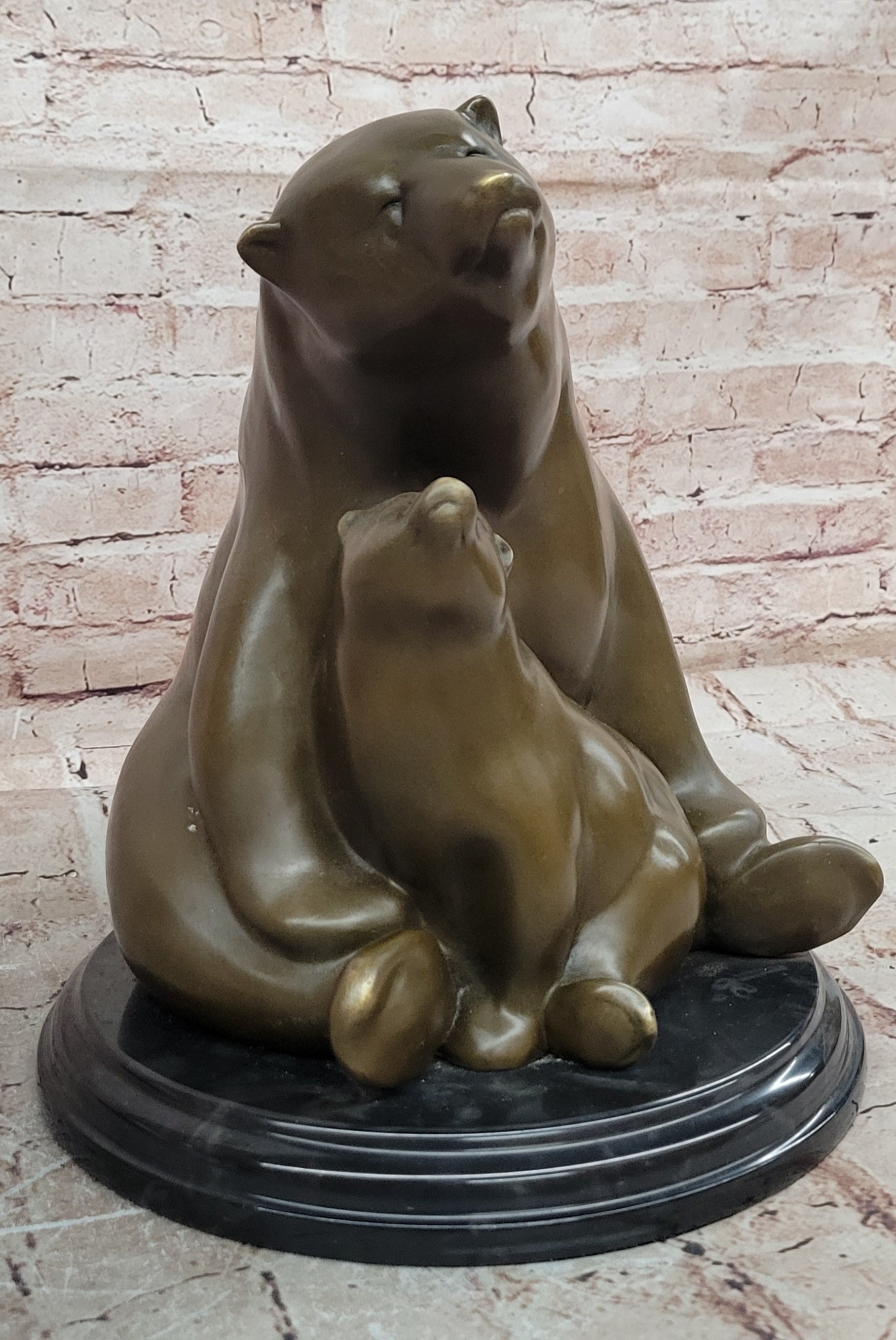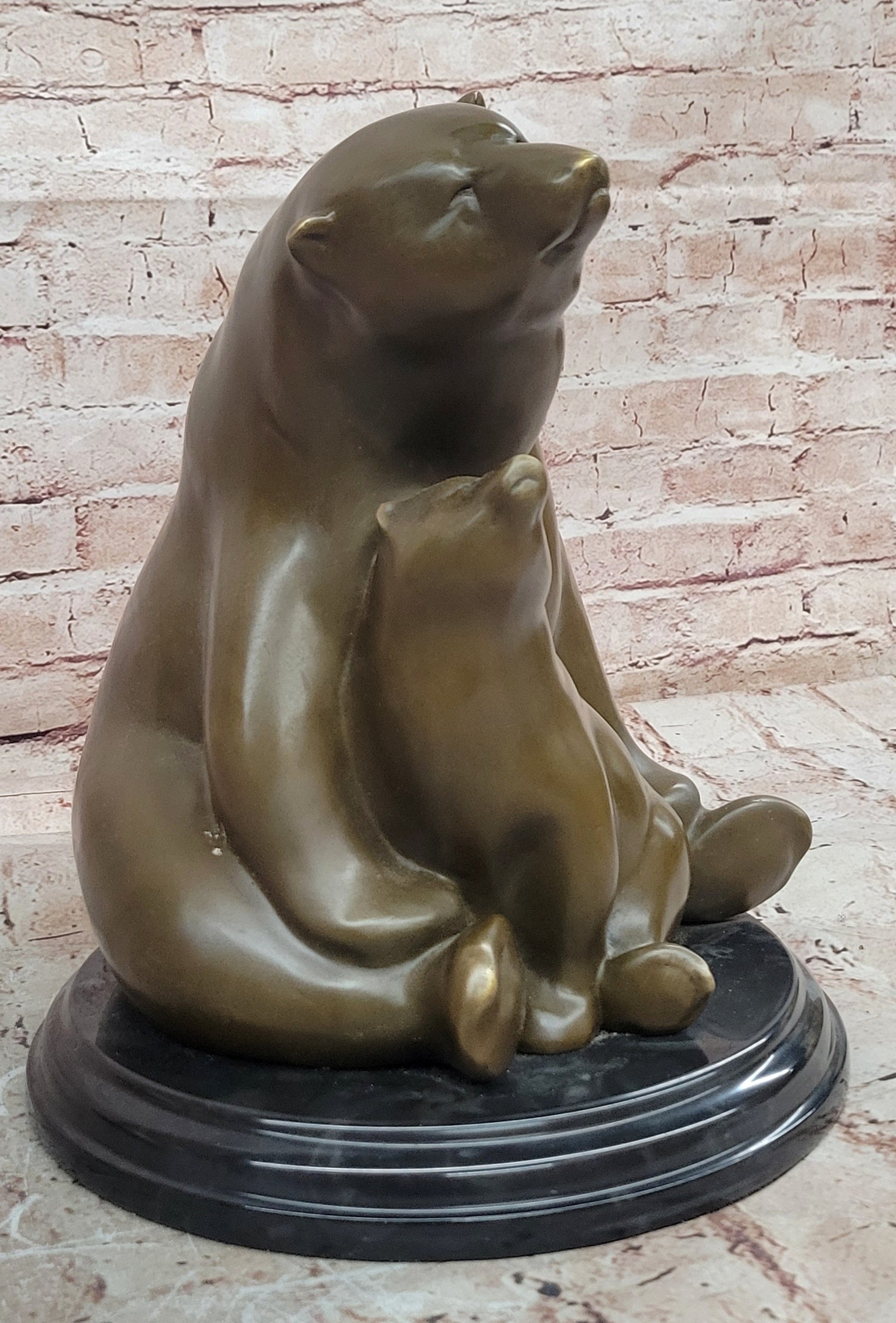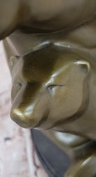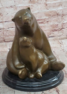 Mother Bear and Cub Bronze Sculpture on Marble Base