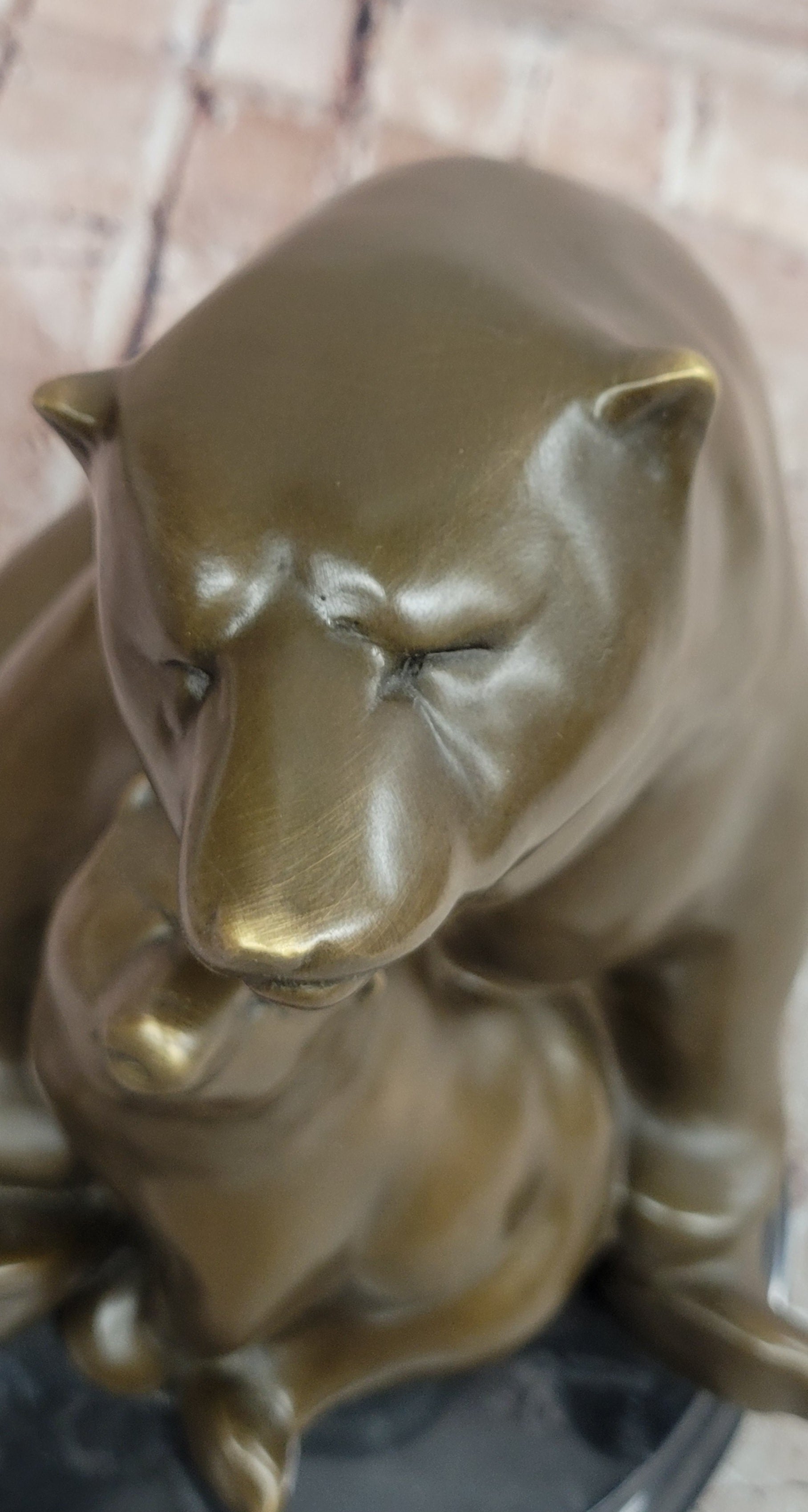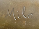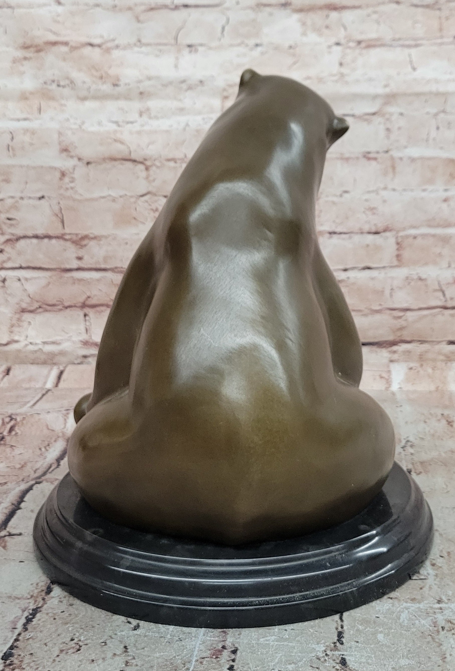 Mounted on a round black marble base, the sculpture is both stable and visually striking, providing an elegant contrast to the warm tones of the bronze. Signed Milo, this original artwork is perfect for collectors of modern animal sculptures, wildlife enthusiasts, or anyone seeking a unique decorative piece that combines contemporary design with masterful bronze craftsmanship.Bronze Dimensions with Marble Base: Height 12" X Width 10"