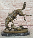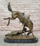 Signed Cowboy Horse Western Bronze Sculpture Statue Marble Base Figure Decor