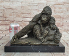 Statue Decor Cast Bronze Orangutans Animal Gorilla Mother W/ Baby Sculpture