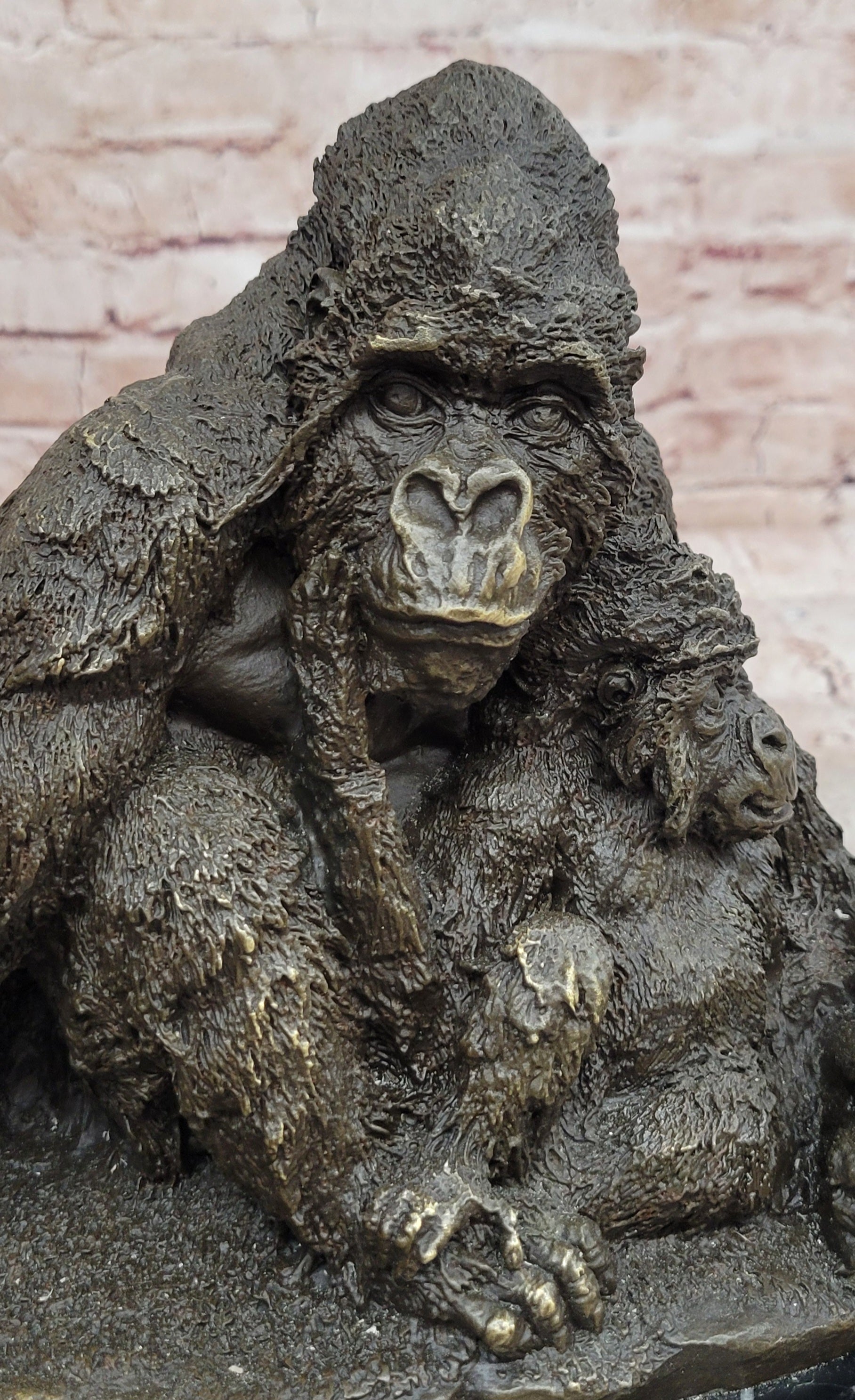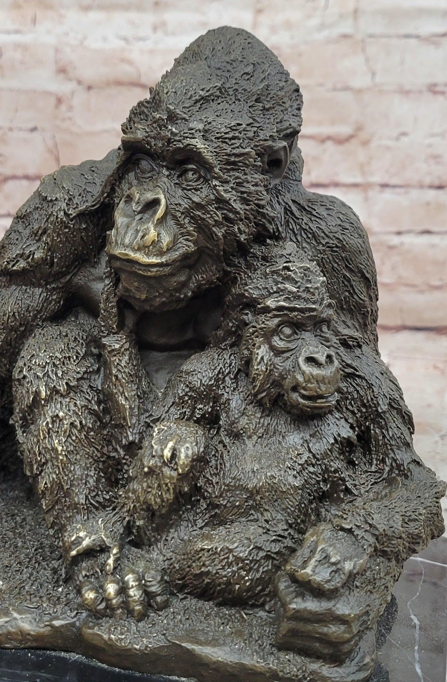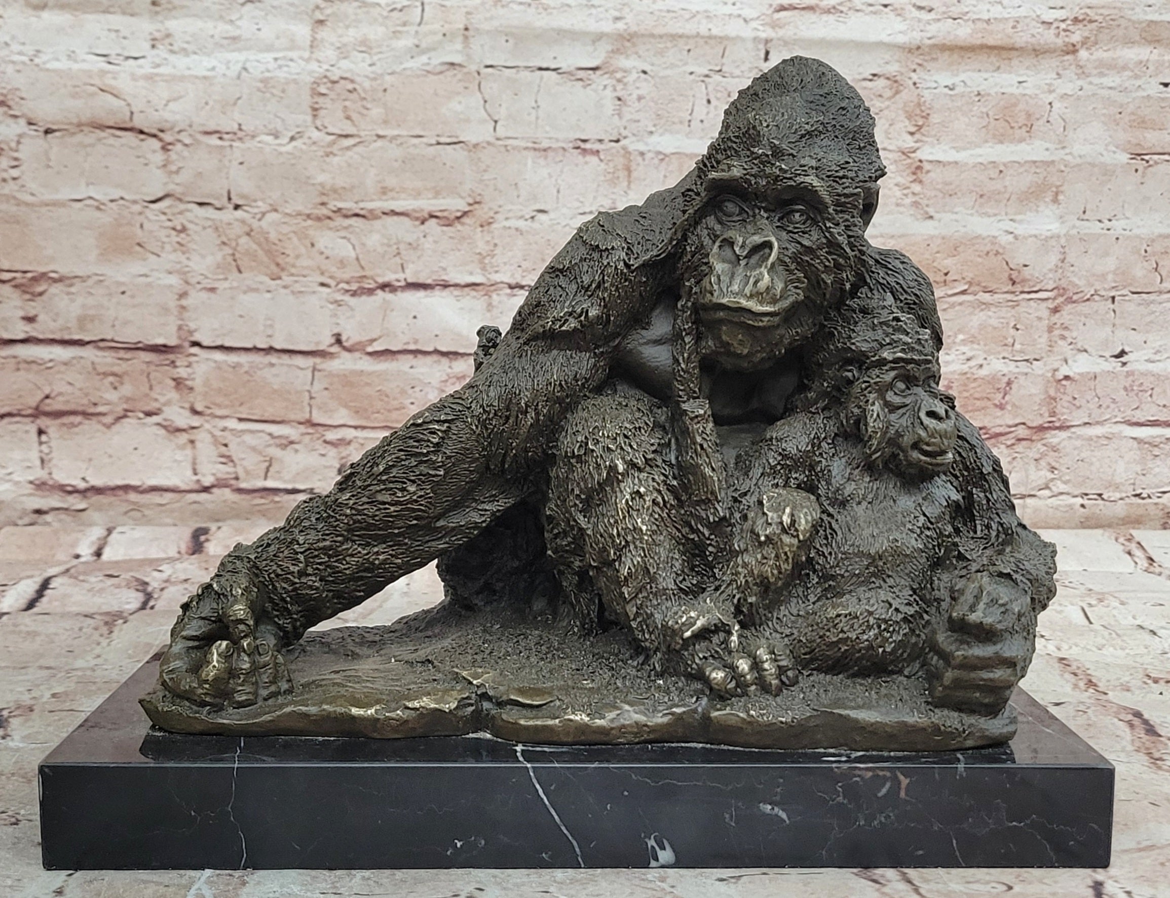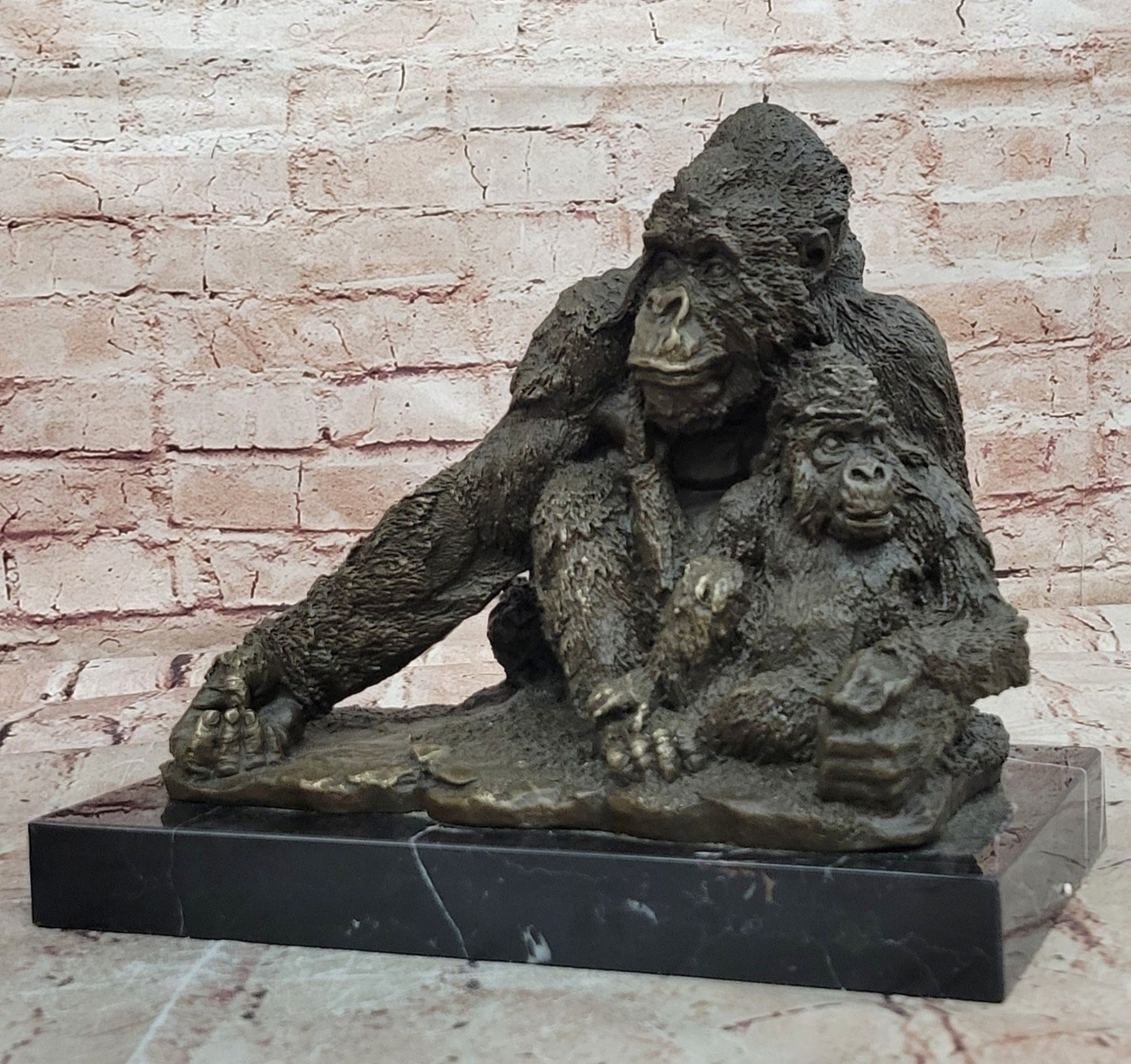 Hand made using the traditional lost wax method, this genuine bronze sculpture reflects outstanding craftsmanship and attention to detail. The dark brown patina enhances the texture of the figures, emphasizing the natural forms, facial expressions, and fur details. Mounted on a polished black marble base, the sculpture gains both stability and an elegant contrast that elevates its overall presentation.