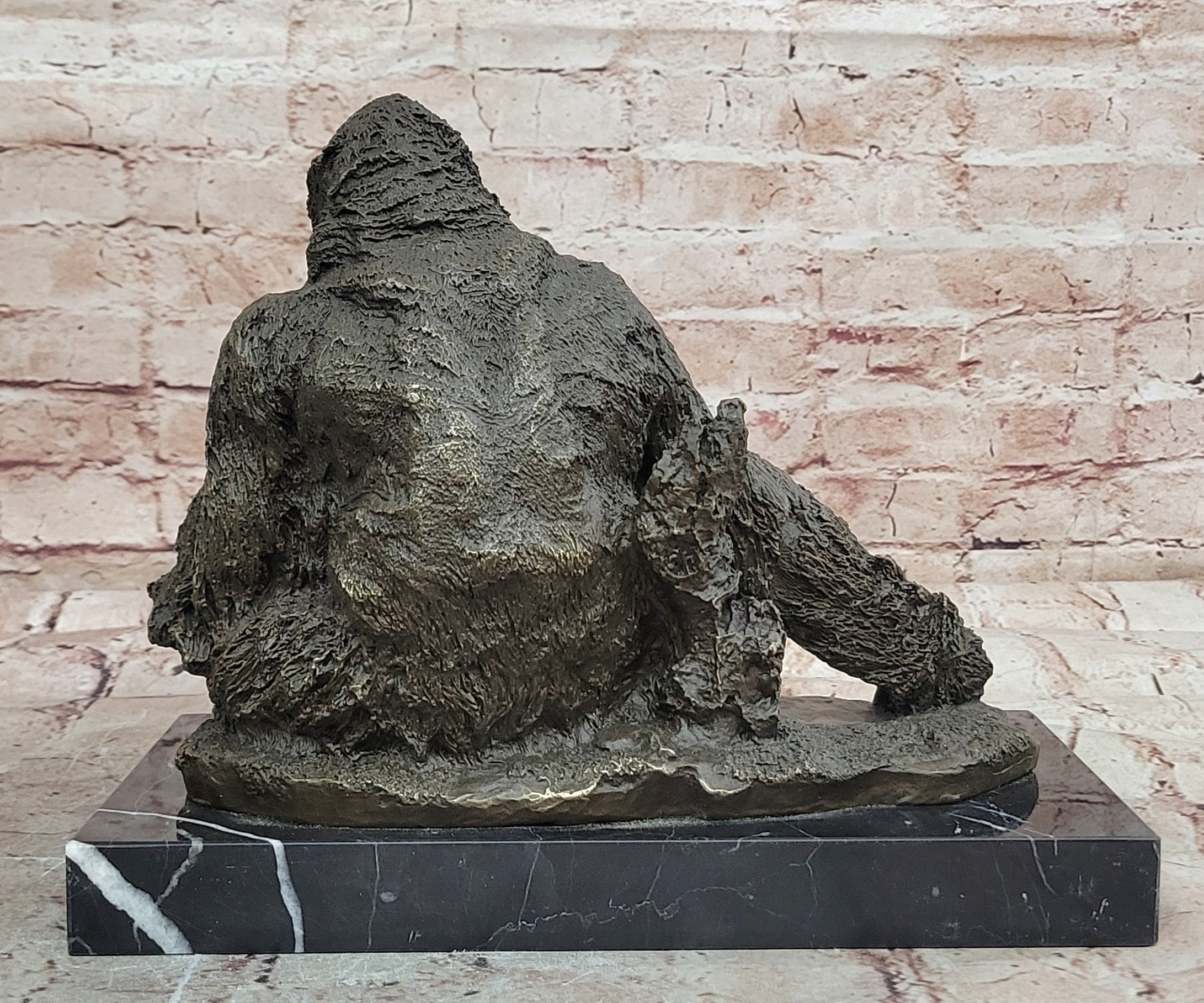 Signed by the renowned Portuguese artist Miguel Lopez, also known as Milo, this orangutan mother and baby sculpture is a collectible decorative artwork designed to endure for generations. Perfect for display in a home, office, or study, it also makes a thoughtful gift for wildlife enthusiasts, art collectors, or anyone who appreciates finely crafted bronze animal sculptures.Bronze Dimensions with Marble Base: Height 9.5" X Width 11.5"